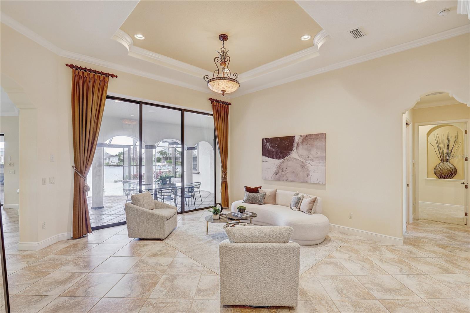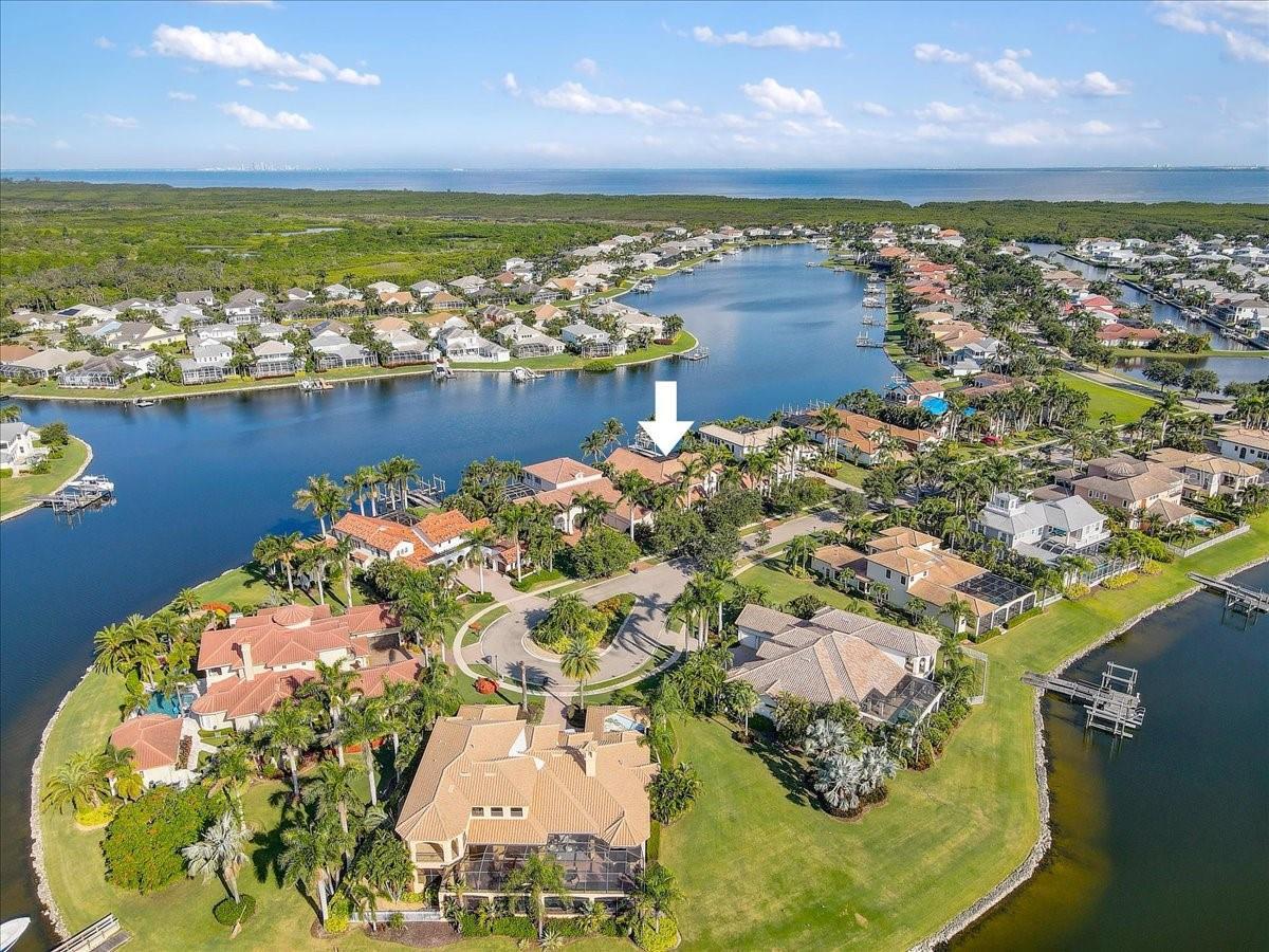 Enjoy Luxury Coastal living in a Spanish Mediterranean executive custom home. This home is for those who appreciate picture perfect water and pool views from multiple angles and rooms. The John Cannon design team created a mariner's dream with a private deep water dock on a western facing lot providing sunset water views. The regal interior features 4 bedrooms, a separate office/flex space plus 3 full and 2 half baths. The media room has a double-sided fireplace and access to the pool! Everyone will love the Audio/Video system that extends throughout the home. The Chef's Kitchen boasts a Wolf gas range with grill and griddle, Granite Countertops, Island with Bonus Sink, SubZero 632 Fridge, Fisher & Paykel dual drawer dishwasher, and a Custom Hidden Large Pantry. The primary wing features a large walk-in shower with garden tub and a record amount of closet space with TWO custom walk-in closets. The primary bedroom has a private sitting area with beautiful wood floors overlooking the pool area and feels private and quiet. This home has premium finishes with crown molding and tray ceilings along with tasteful built ins for style and storage, custom lighting and custom cabinetry. While the inside is spectacular, the outdoor pool area is a perfect place for relaxation with an outdoor kitchen featuring a Napoleon grill, Sink and an AC Pool Bath with convenient access to the rear of the property. The Infinity Pool has plenty of self-clean features, waterfall, temperature controls, heated spa, and plenty of room on the paver deck for entertainment and fun! Mirabay offers resort amenities, including a beautiful community pool/spa, lap pool, splash pad, three playgrounds, fishing, boat docks with deep saltwater access and clubhouse. There is also a fitness center, cafe with full service bar, pickleball, basketball, tennis courts and plenty of walking trails and so much more call for a tour today!