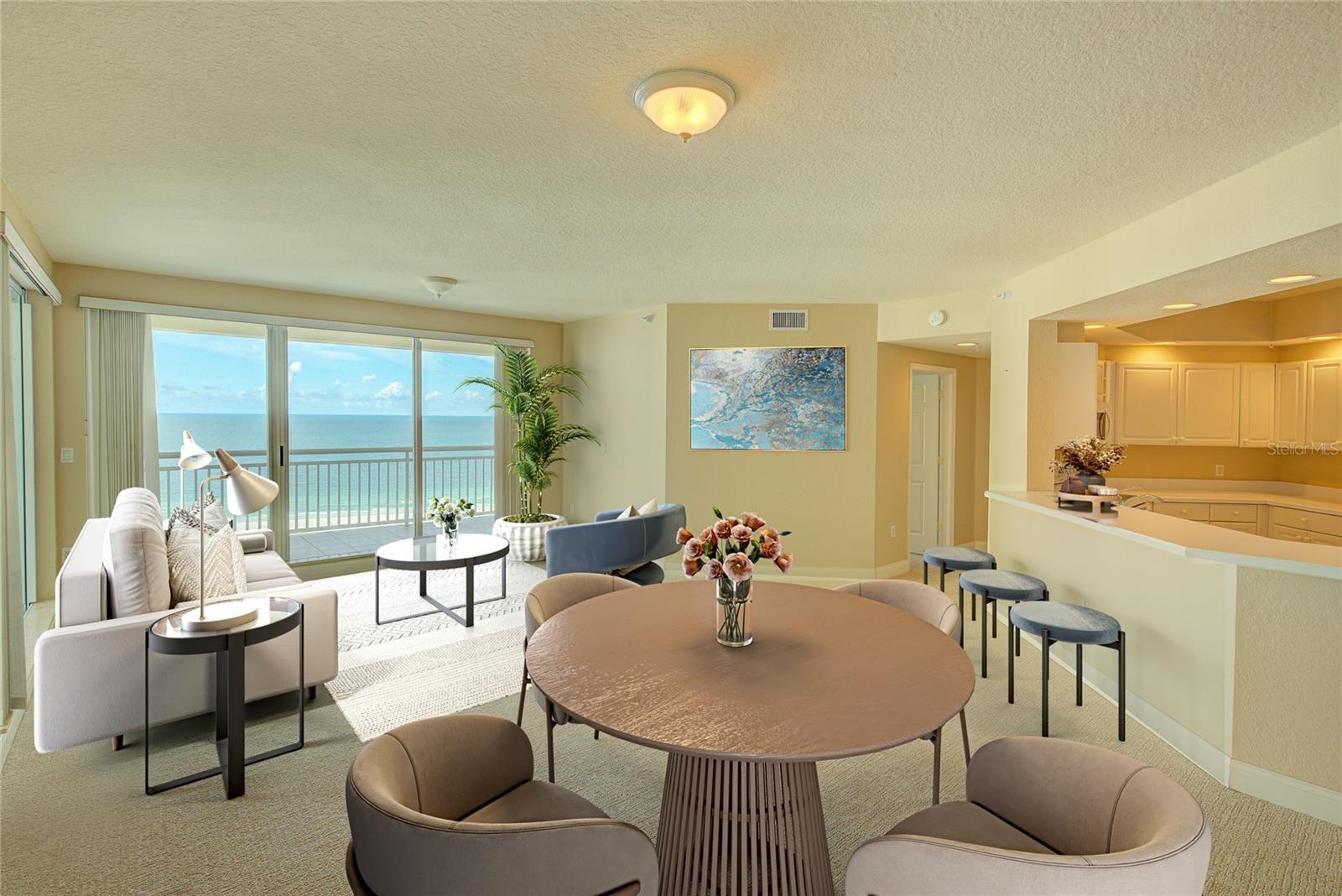 One or more photo(s) has been virtually staged. Perched on the 18th floor of the prestigious Watermark Tower, this rare Alcazar floor plan captures breathtaking panoramas—Gulf sunsets, sparkling winter sun, and the serene expanse of Clearwater Harbor. From the moment you enter, floor-to-ceiling vistas invite the sea and sky into every room. Both bedrooms, along with the open-concept living, dining, and kitchen spaces, showcase dramatic Gulf views. Each generously sized bedroom features direct terrace access, allowing you to step outside and savor the coastal breeze morning or night. Large closets, well-appointed baths, and abundant storage create a home that blends elegance with livability. A soft, neutral palette provides the perfect backdrop for the ever-changing colors of the horizon. Life at The Grande is the epitome of resort-style living: multiple tennis courts, state-of-the-art fitness centers, inviting social lounges, billiards, two Gulf-front pools, heated spas, and barbecue pavilions—all within a beautifully landscaped, 24-hour guard-gated compound. Phenomenal concierge service ensures every need is met with ease. This is more than a residence—it’s a front-row seat to Sand Key’s most spectacular views and lifestyle. Schedule your private showing and experience The Grande for yourself.