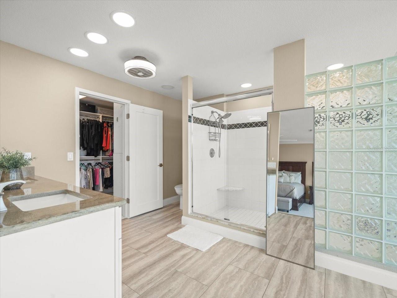 - Built-in Features, Ceiling Fans(s), Crown Molding, High Ceilings, L Dining, Open Floorplan, Primary Bedroom Main Floor, Solid Surface Counters, Split Bedroom, Stone Counters, Thermostat, Walk-In Closet(s), Window Treatments
