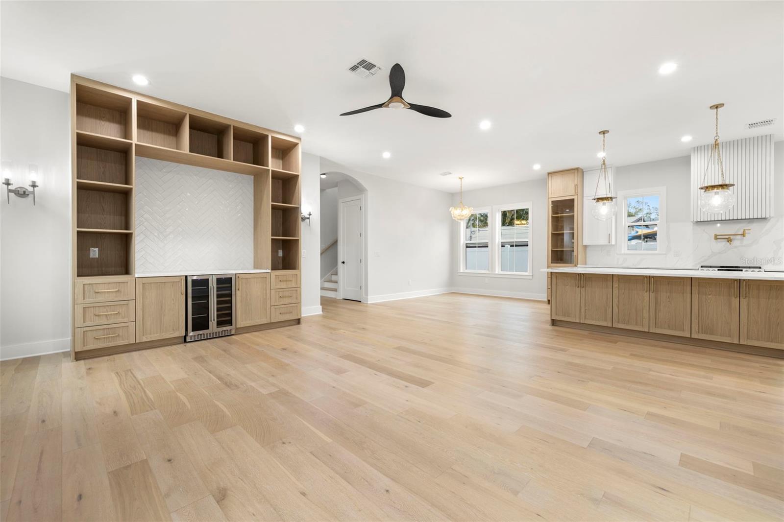 - Ceiling Fans(s), Crown Molding, Eat-in Kitchen, High Ceilings, Kitchen/Family Room Combo, PrimaryBedroom Upstairs, Wet Bar