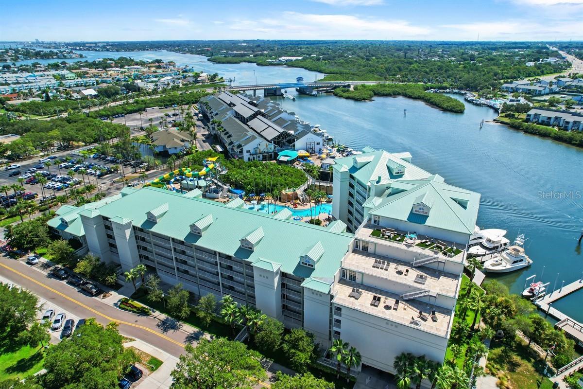 NOW SELLING ENDLESS SUMMER! Harbourside Penthouse and Terrace! This recently updated 2 bedroom, 2 bathroom Corner Residence includes its own 1,200 SF private terrace with the most spectacular views of the Intracoastal and the Gulf of Mexico. Enjoy Sunrise, Sunset, and every minute in between! The Penthouse Residence sleeps up to 8 guests with a King Bed in the Primary Suite, 2 Queen Beds in the Guest Suite and a Queen Sleeper Sofa in the Great Room. A well-appointed Kitchen and Private Laundry make this feel like a home away from home! Guests are provided 4 daily passes to Splash Harbor, the onsite Water Park. 6 additional passes can be purchased at a 50% discounted rate. Located directly on the Intracoastal Waterway with a crosswalk to the Public Beach Access at Indian Rocks Beach, this stellar location offers a multitude of shopping and dining options within just a few blocks. The Waterpark has a lazy river, waterslides, splash pad and pool – something for everyone! Enjoy live music in the evenings, movies and sports projected Poolside. Shop, sip and snack at the on-site Tiki Bar, Concession and Gift Shop. Harbourside Docks are available for our guests traveling by boat. Boat and bicycle rentals are also available nearby. The Miniature Golf Course and Game Room are available at the adjacent Holiday Inn – fees apply. One garage parking space is included for residents or guests (additional parking is available at a daily rate). Leave your car in the garage and let the Trolley take you to the many attractions and venues up and down the crystal blue coastline. This property is a great personal getaway or a lucrative investment property!