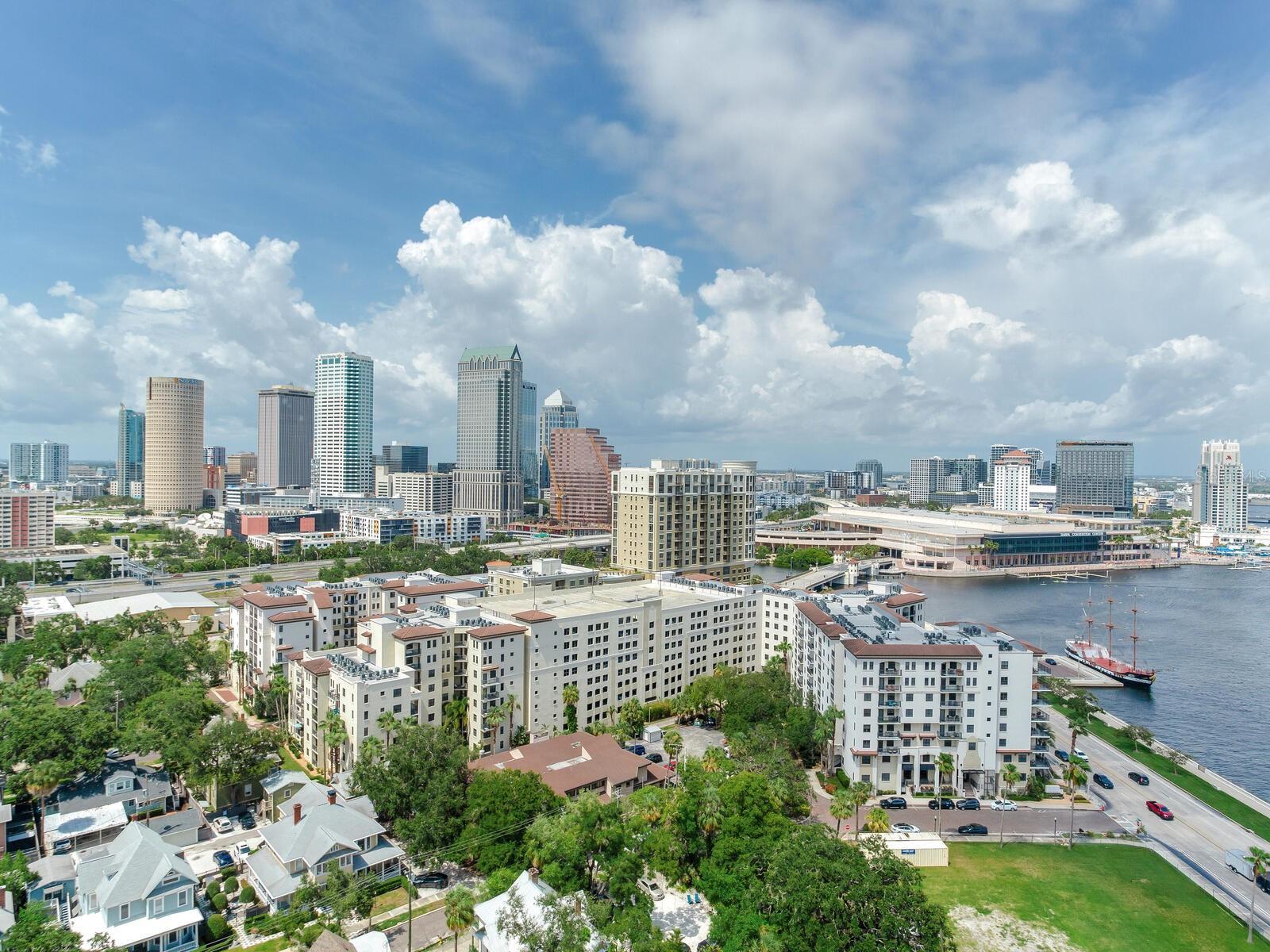 This is an amazing building for the price. The amenities are as nice as some buildings that house multi-million dollar units and they include conference room, recreation room, game area, package room, two gyms, garage and deck parking, outdoor cooking, pool, jacuzzi, pool baths and a true dog park. The library and two-story entry lobby rival any building on Bayshore. There are four elevators, loading docks and the unit includes two parking spaces , one storage unit and one cellar wine cabinet with an original brass key. This is the top floor facing the river, Riverwalk, Water Street, McKay bay, downtown, Harbour Island, The Port, and Garrison Channel to open bay. It's a well planned separate 2 bedroom, 2 bathroom with the living/dining open to the kitchen and balcony. Conveniently located just across from Tampa General Hospital, and a brisk walk to Downtown or Hyde Park makes for the perfect location. Just minutes from Tampa International Airport, International Plaza, Gulf beaches, as well as easy access to the I-4 corridor for all of the theme parks in Orlando.