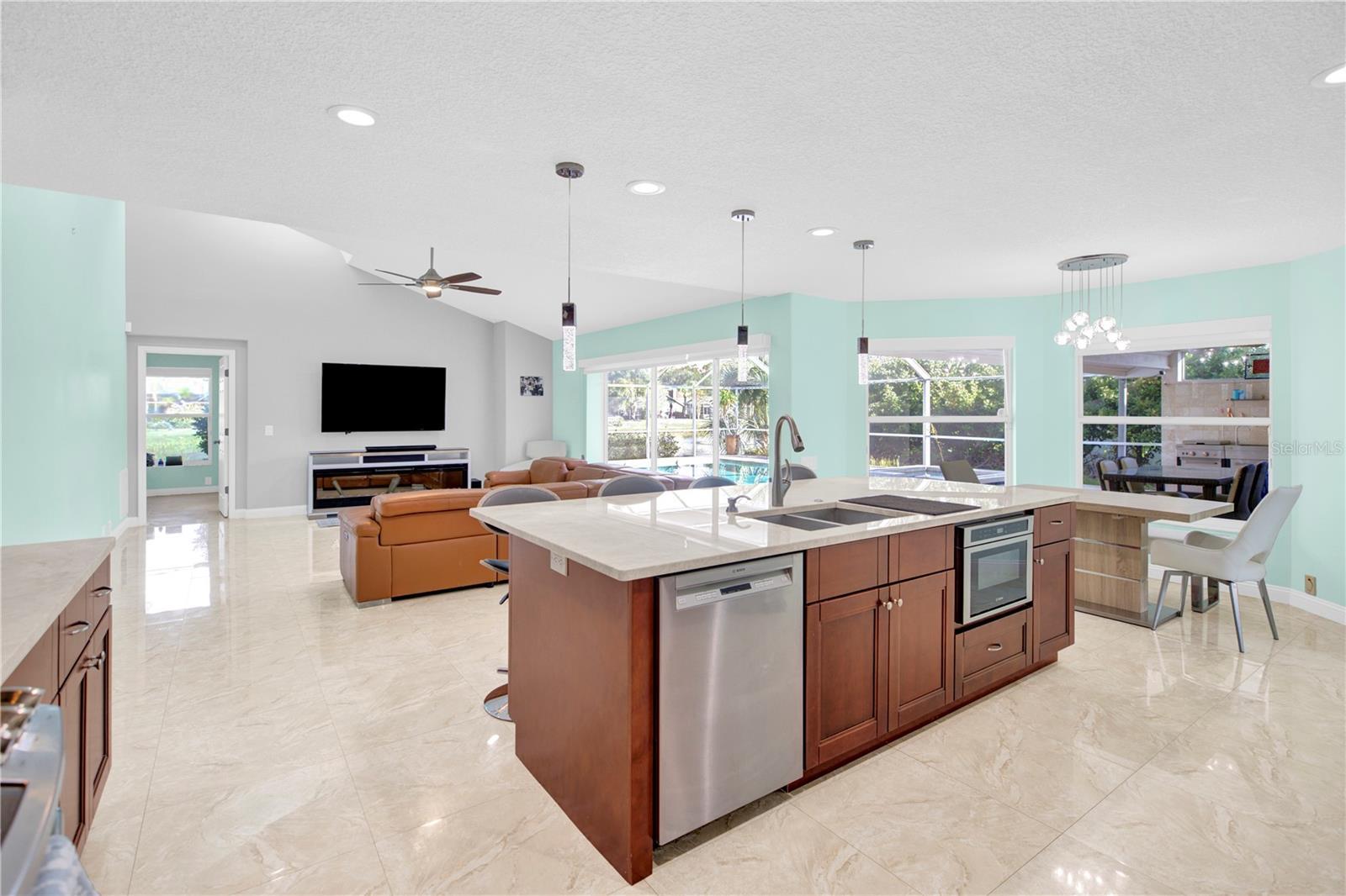 **PRICE IMPROVEMENT**SELLER'S ARE VERY MOTIVATED! Nestled in the highly sought-after Lansbrook subdivision, this beautifully updated home provides a luxurious living experience. With its four spacious bedrooms, three bathrooms, and almost 3,000 square feet of living space, this home is ideal for a growing family. Upon entry, you’ll be greeted by an abundance of natural light, high ceilings, and a formal living room/dining room combo with sliding glass doors offering easy access to the pool area. The seamless flow of this home will bring you to the spacious, elegantly designed kitchen with granite countertops, stainless steel appliances, and a extra large island with high top seating that's ideal for entertaining. The family room is adjacent to the kitchen, which has large pocket sliding doors that lead to the pool area. Boasting a split floor plan, you’ll find three guest bedrooms and two guest bathrooms off of the family room, with the spacious primary bedroom situated on the opposite side, providing the perfect blend of privacy & quiet. This personal sanctuary features sliding glass doors that lead out into the pool area, offering a seamless connection to the outdoor space. A large walk-in closet, ensuite bathroom with a separate shower and bathtub as well as a double sink vanity. When you step outside, you’ll find a fully enclosed tropical oasis...showcasing a large pool deck with a custom outdoor kitchen equipped with a wet bar and sink, a stunning crystal clear pool with a separate spa. Conveniently situated on a preserved pond lot provides the added bonus of no rear neighbors. Some of the many upgrades include a NEW ROOF installed this year, a resurfaced pool in 2020, painted garage floors in 2022, HVAC 2021. Lansbrook offers a variety of amenities for the residents including a picturesque lakefront park, a boat ramp providing access to Lake Tarpon, a fishing pier, a walking path, and the Commons Park. This park offers basketball courts, a full-size soccer field, and a playground. The community is also home to top-rated schools, making it conveniently located near shopping, restaurants, the YMCA, the county library, and John Chestnut Park. Don't wait, schedule your private showing today, you'll be so happy you did!