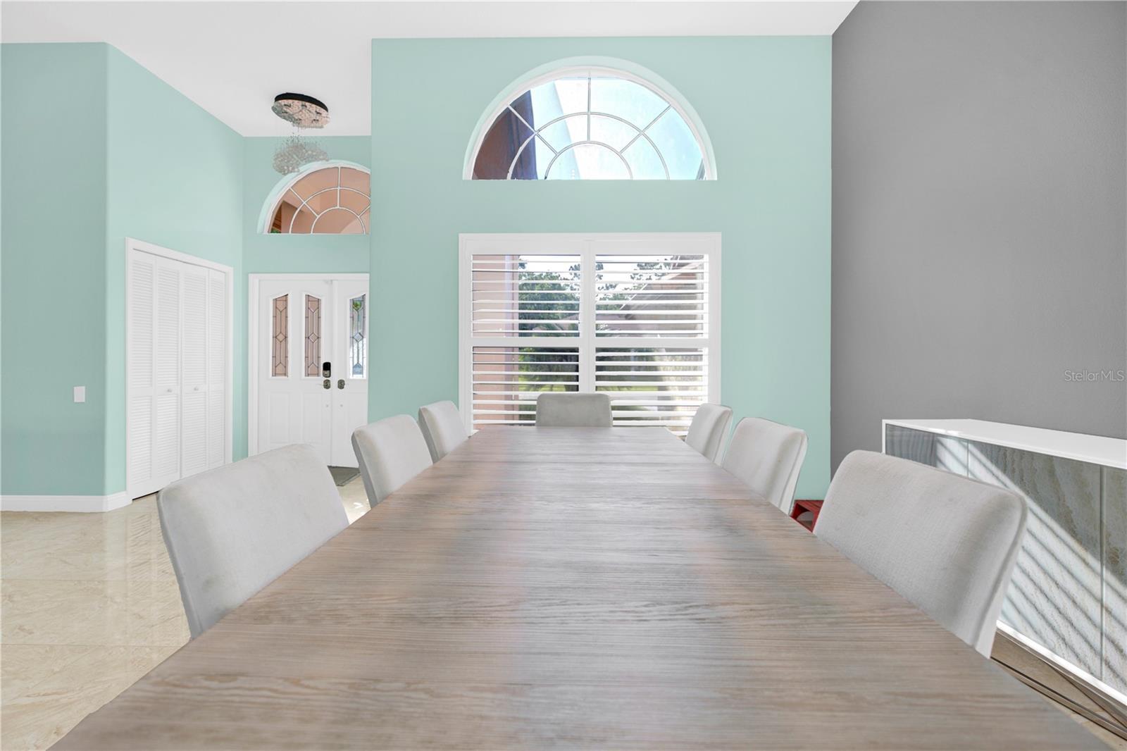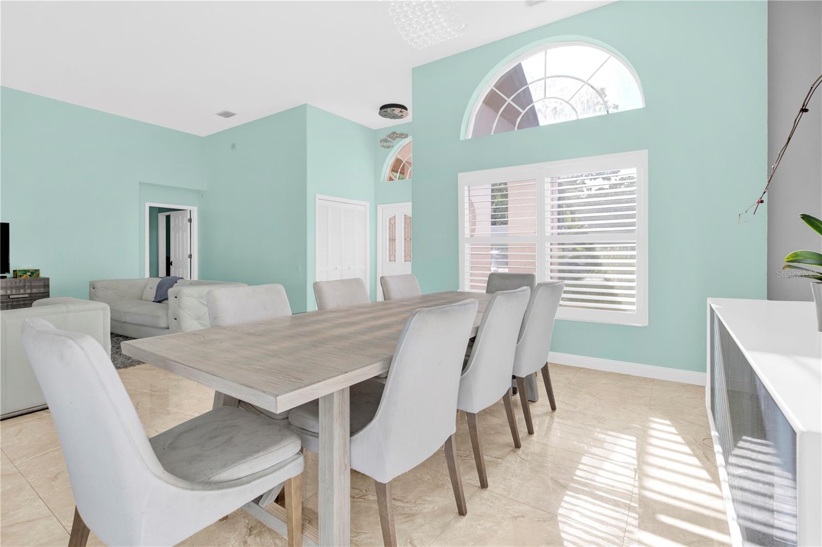 - Ceiling Fans(s), Central Vaccum, High Ceilings, Kitchen/Family Room Combo, Living Room/Dining Room Combo, Open Floorplan, Primary Bedroom Main Floor, Solid Surface Counters, Solid Wood Cabinets, Split Bedroom, Thermostat, Walk-In Closet(s), Window Treatments