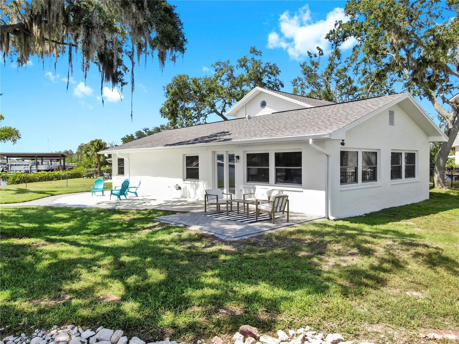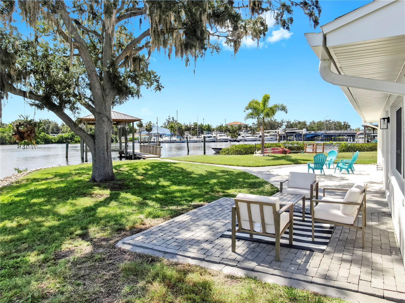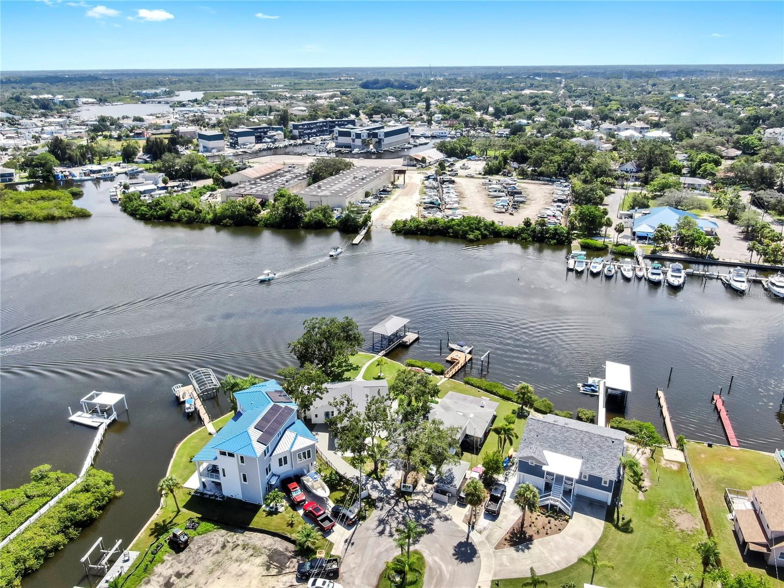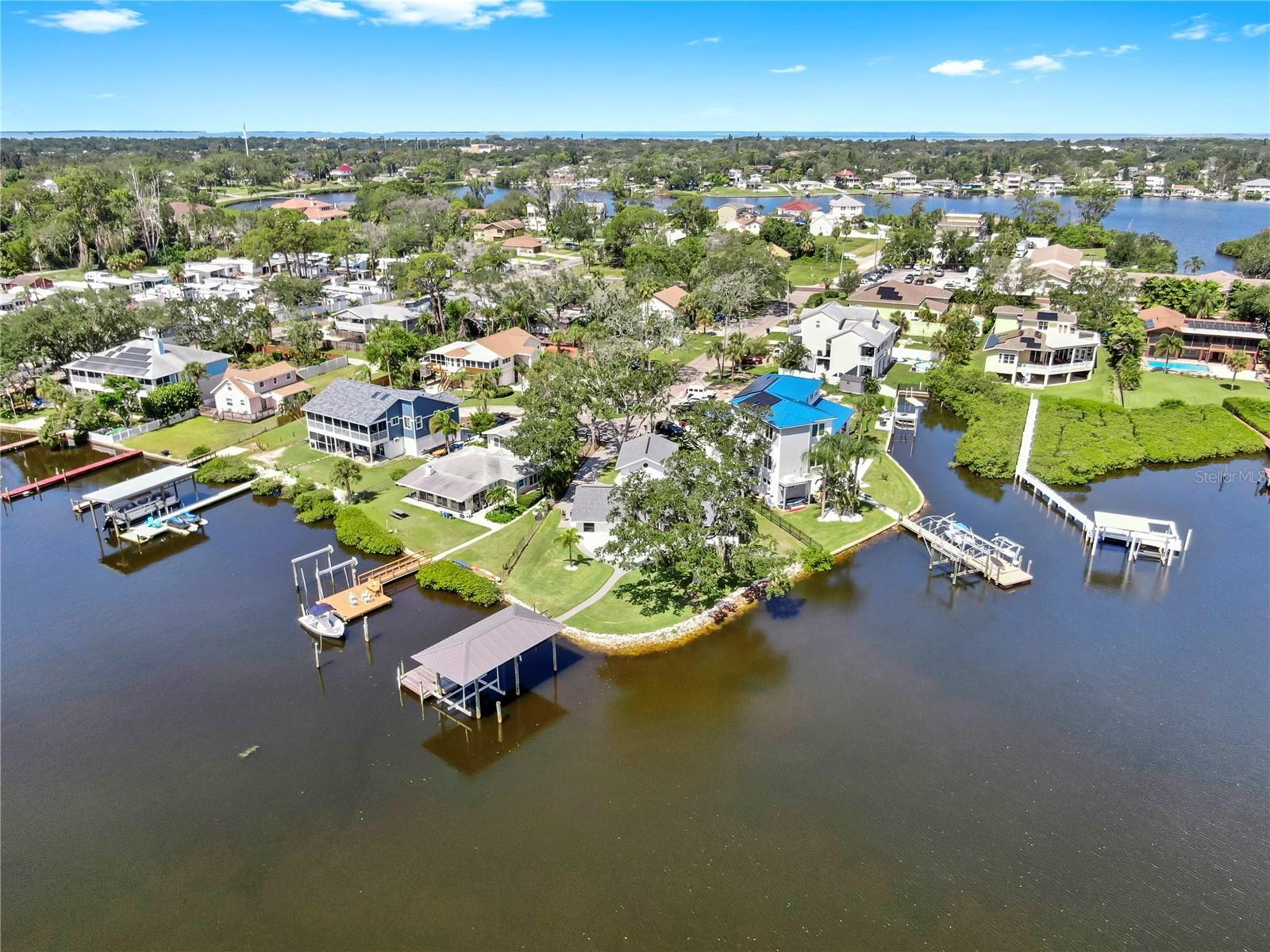 Welcome to coastal living at its finest! Located on a quiet cul-de-sac across from the Tarpon Yacht Club, this fully renovated 3-bedroom, 3-bath waterfront home offers 130 feet of deep water frontage with no tide restrictions on Tarpon Bayou with direct access to the Anclote River and Gulf, perfect for boating enthusiasts. The deep water canal stays navigable, even at low tide, a rare find! The covered dock with electric, 20,000 lb boat lift, and seawall with riprap make this a true boater’s paradise. Step inside to discover modern elegance and thoughtful upgrades throughout. Enjoy new wood and tile flooring, recessed lighting, impact windows, and custom storage solutions including a built-in wine rack, dining room cabinetry and custom closet organizers. The kitchen shines with new LG appliances, washer/dryer, new cabinetry, high-end fixtures, and a craft refrigerator with craft ice. The spacious primary suite features his and her walk-in closets, a dual vanity bath, and luxe Delta fixtures. All three bathrooms have been renovated to include timeless, modern finishes. Upstairs, separate mini-split A/C systems provide personalized comfort. Recent updates include a new roof, HVAC and ductwork, tankless water heater, and upgraded electrical (all 2025). Enjoy a spacious interior utility room with a stainless steel sink, ideal for prepping boating or fishing gear, plus an exterior storage room for rods, tackle, and tools. Outside, unwind on the paver patio overlooking the water, surrounded by lush, freshly landscaped grounds and a gated circular driveway for added privacy. Located minutes from charming downtown Tarpon Springs, the historic Sponge Docks, Spring Bayou, Craig Park and Fred Howard Park, this home offers both privacy and proximity to shopping, dining, and the Gulf. Schedule your showing today!