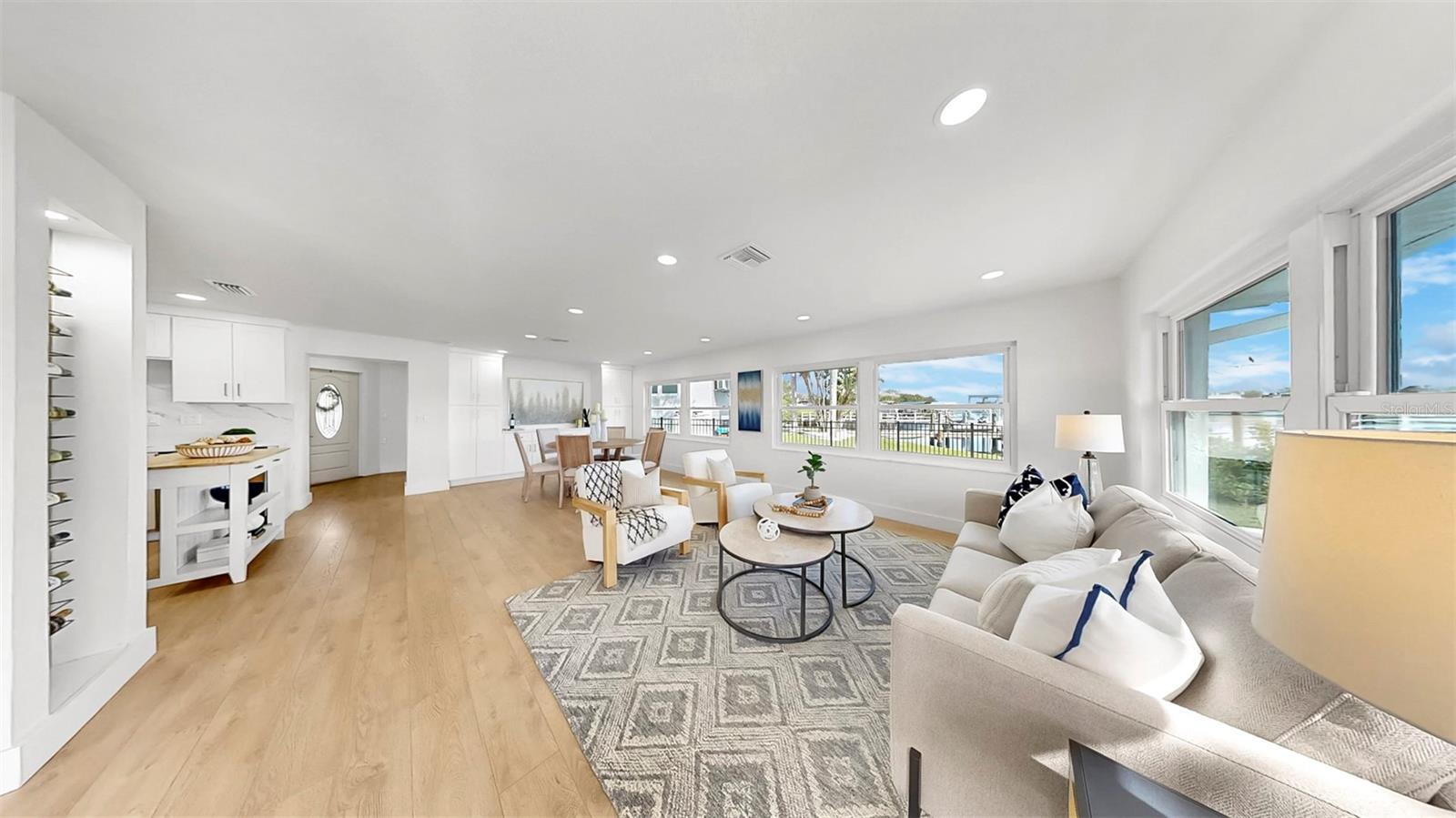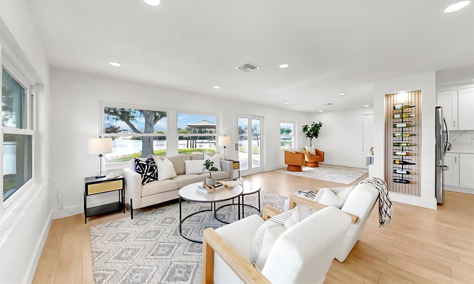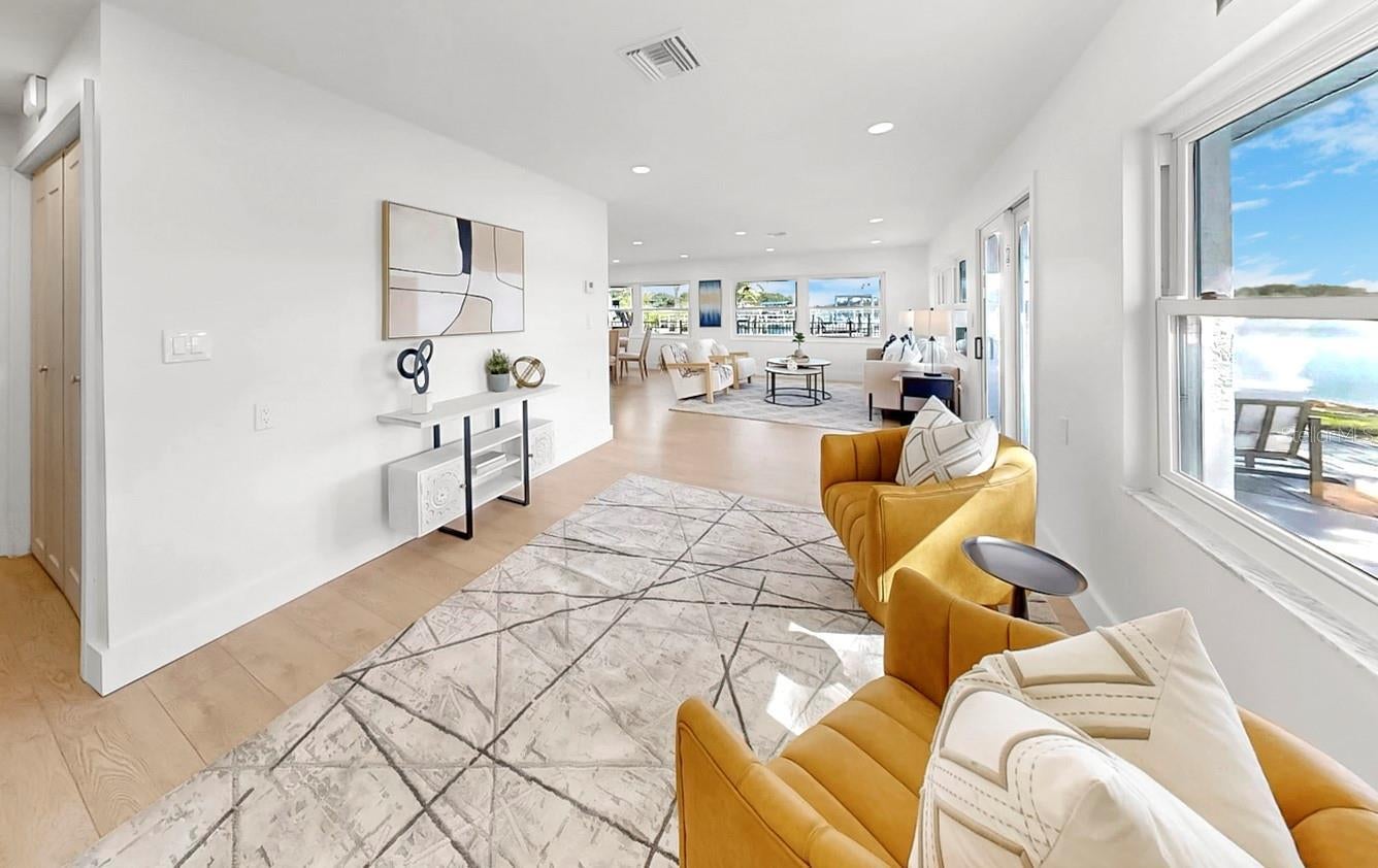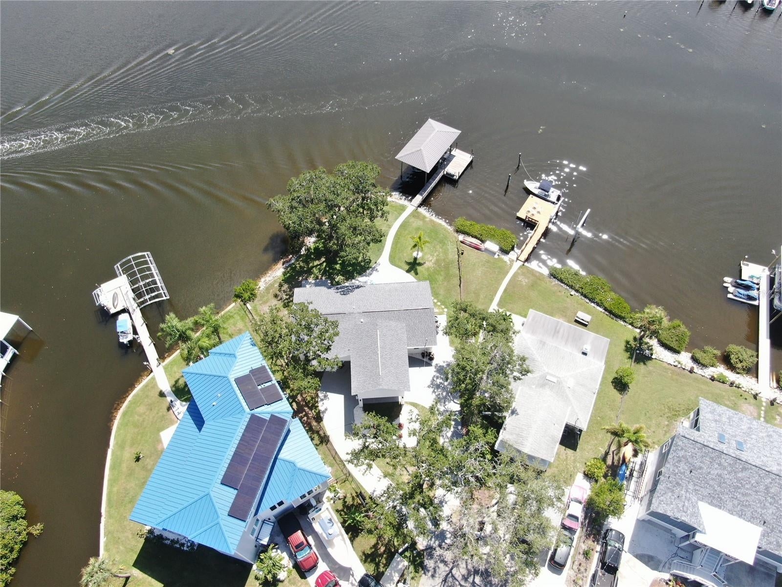 Welcome to coastal living at its finest! Located on a quiet cul-de-sac across from the Tarpon Yacht Club, this fully renovated 3-bedroom, 3-bath waterfront home offers 130 feet of deep water frontage with no tide restrictions on Tarpon Bayou with direct access to the Anclote River and Gulf, perfect for boating enthusiasts. The deep water canal stays navigable, even at low tide, a rare find! The covered dock with electric, 20,000 lb boat lift, and seawall with riprap make this a true boater’s paradise. Step inside to discover modern elegance and thoughtful upgrades throughout. Enjoy new wood and tile flooring, recessed lighting, impact windows, and custom storage solutions including a built-in wine rack, dining room cabinetry and custom closet organizers. The kitchen shines with new LG appliances, washer/dryer, new cabinetry, high-end fixtures, and a craft refrigerator with craft ice. The spacious primary suite features his and her walk-in closets, a dual vanity bath, and luxe Delta fixtures. All three bathrooms have been renovated to include timeless, modern finishes. Upstairs, separate mini-split A/C systems provide personalized comfort. Recent updates include a new roof, HVAC and ductwork, tankless water heater, and upgraded electrical (all 2025). Enjoy a spacious interior utility room with a stainless steel sink, ideal for prepping boating or fishing gear, plus an exterior storage room for rods, tackle, and tools. Outside, unwind on the paver patio overlooking the water, surrounded by lush, freshly landscaped grounds and a gated circular driveway for added privacy. Located minutes from charming downtown Tarpon Springs, the historic Sponge Docks, Spring Bayou, Craig Park and Fred Howard Park, this home offers both privacy and proximity to shopping, dining, and the Gulf. Schedule your showing today!