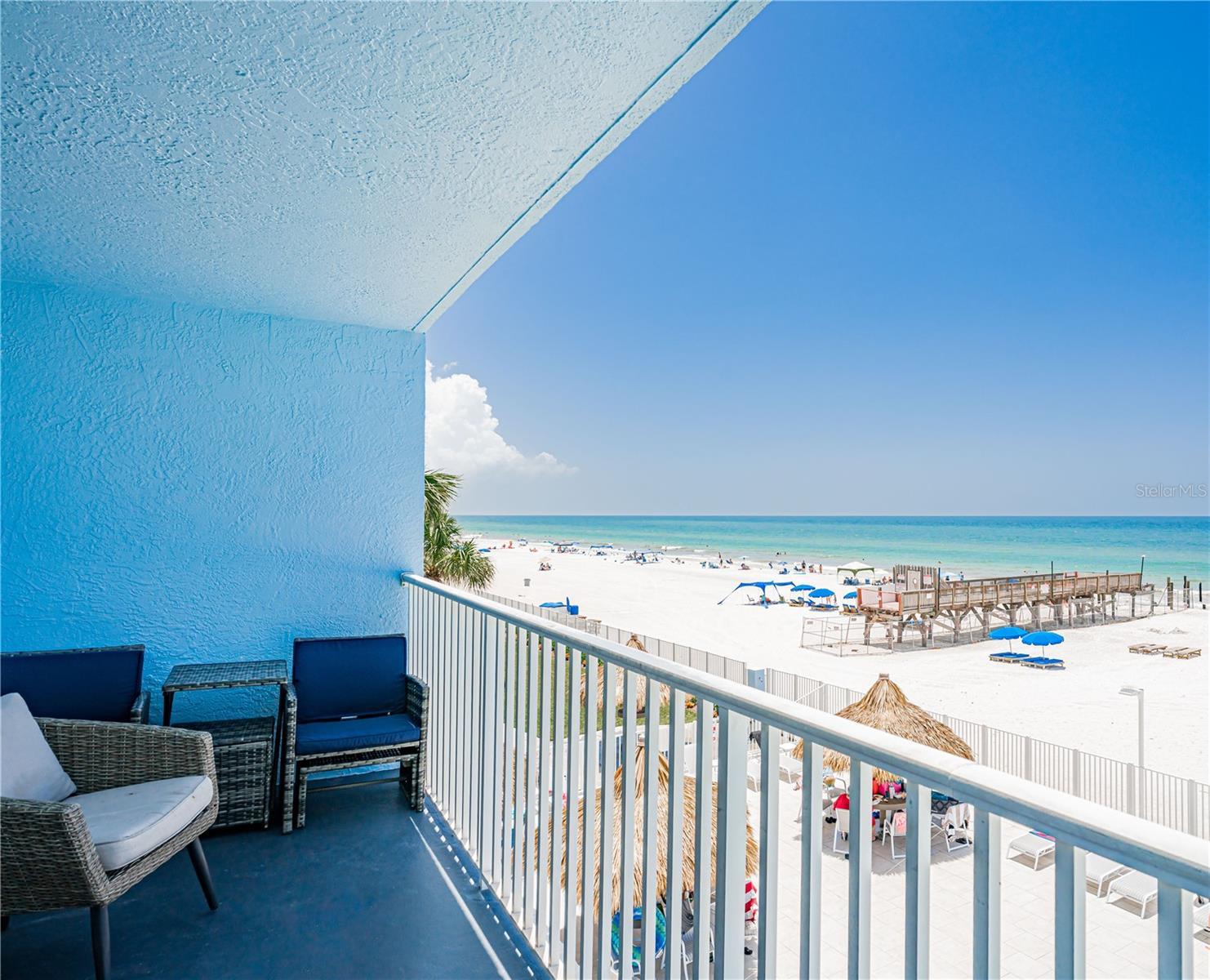 Come enjoy the beach life in this spacious 2 bedroom - 2 bath condo perfectly located over the pool with expansive views from the living area and the Gulf Front Balcony that overlook our gentle Gulf Waters & sugar sand beach that goes on for miles. This is one of the most sought-after vacation rental properties. The gracious living area is tastefully decorated with new sectional that has room for the whole family! Beautifully updated kitchen with lots of cabinetry and granite counters. Updated bathrooms, Main bathroom has a walk-in shower. Large bedrooms with walk-in closets and laundry closet with newer full size side by side washer/dryer all add to its appeal. Property boasts a geo-thermal heated, salt water pool and jacuzzi with all new pavers, fencing, furniture and thatched covered tiki huts and garden area with 4 barbecue grills. Great rental income in popular weekly rental beach resort with experienced, on-site rental management...rental history available upon request. Don't miss this opportunity to own one of the best buys on the Beach!!!! Sand Dollar is conveniently located, minutes away from St. Pete and Clearwater Beaches, great restaurants, shopping, golfing, attractions and sports events. Buyers to verify all measurements and restrictions. Pictures coming Saturday 7/19/25