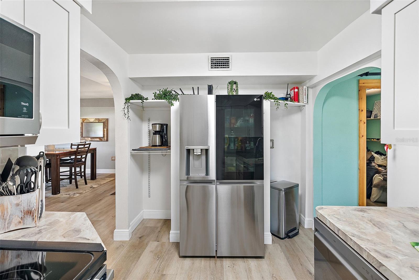 Discover this expanded 3-bedroom, 2-bath home in the heart of Jungle Terrace—just a block from Walter Fuller Park and minutes to boat launches, the Pinellas Trail, and beaches. The sellers have loved this home and location for 33 YRS, continuously adding value, including a second story! With over 3,000 SF total, this home combines modern updates with rustic charm, including a 2020 metal roof, 2024 kitchen remodel, vinyl plank flooring on the main level, and newer carpet upstairs. The entire home is one large open concept that creates a welcoming atmosphere. The kitchen blends charm with smart design and is ideal for entertaining. Curved doorways, subway tile backsplash, white shaker cabinets, stainless-steel farmhouse sink with sprayer faucet, and a pass-through bar into the game room make it both functional and a focal point of the home. Storage stands out with: • Dual corner two-tier rotating pantry shelves • Slide-out seasoning drawer next to the stove • A full pantry room. Top-tier appliances include: • LG InstaView™ side-by-side refrigerator with water/ice dispenser and knock-to-view panel • GE glass cooktop • LG stainless microwave with touch-screen options • LG stainless dishwasher with interior stainless tub • Project Source 3/4 disposer Upstairs offers a spacious primary retreat with unique cutouts connecting to the living space below. The layout fits a full bedroom set, chaise lounge, or an in-room nursery, with a walk-in closet and ensuite bath. The primary bath has a Jacuzzi tub, walk-in shower, dual sinks, and linen closet. The second bedroom is also oversized, and a third room is bedroom-sized but lacks a closet. A cozy loft nook works great as a playroom or chill reading space. If the home itself doesn’t offer enough storage space, there are two drop down attic stairs in the bedrooms. There is a theater-style family room PLUS a game room that feature knotty pine wood trim and beams, a multi-game table, and sliders that open to the screened lanai. Designed for comfort, there are remote-controlled ceiling fans with lights in all the right places and dual A/C systems for upstairs and downstairs. The first-floor laundry room has slate gray GE Profile top loader washer and dryer with a built-in folding countertop, hanging rod, and storage cabinets. Added touches include recessed lighting, stair casing built-ins, under-stair storage, and custom stair railings with wooden newel posts and slim black metal spindles—blending warmth with a modern edge. They even thought about the pets during the remodel: a catwalk connects the loft to the primary bedroom. The outdoor space is phenomenal. A covered front porch offers rocking chair room for neighborhood watching or escape to your own tropical oasis with a freestanding plunge pool/spa, lush landscaping, and a 2023 wood privacy fence with dual gated entries—ideal for storing an RV, boat, or jet skis. The location doesn’t get much better than this. You can walk to the park up the street that has a fishing lake, trails, sports fields, dog park, tennis, pickleball, and lap swimming pool with diving board and slides. Close to restaurants, groceries, and shopping that includes the Tyrone Mall. There’s no HOA or deed restrictions; you can even have chickens if you would like. Don’t miss this opportunity to own in the historic Jungle Terrace neighborhood. Check out the virtual tour, property upgrade sheet, and when you're ready to own your own retreat, schedule an in-person showing.