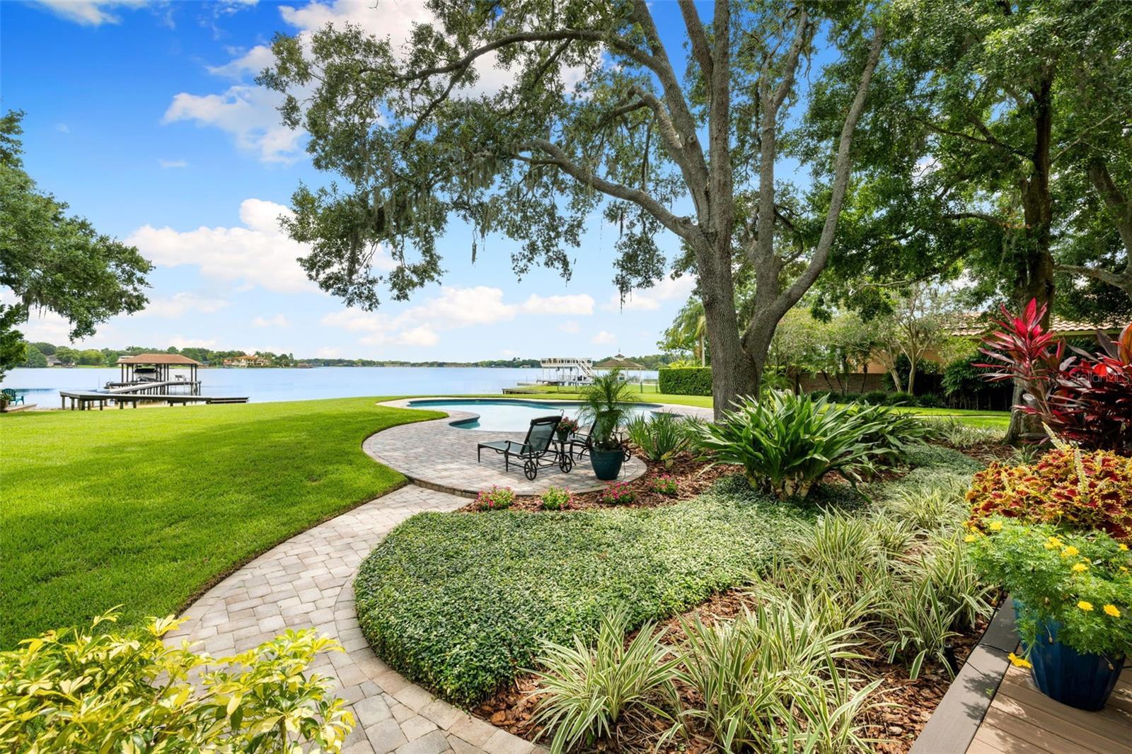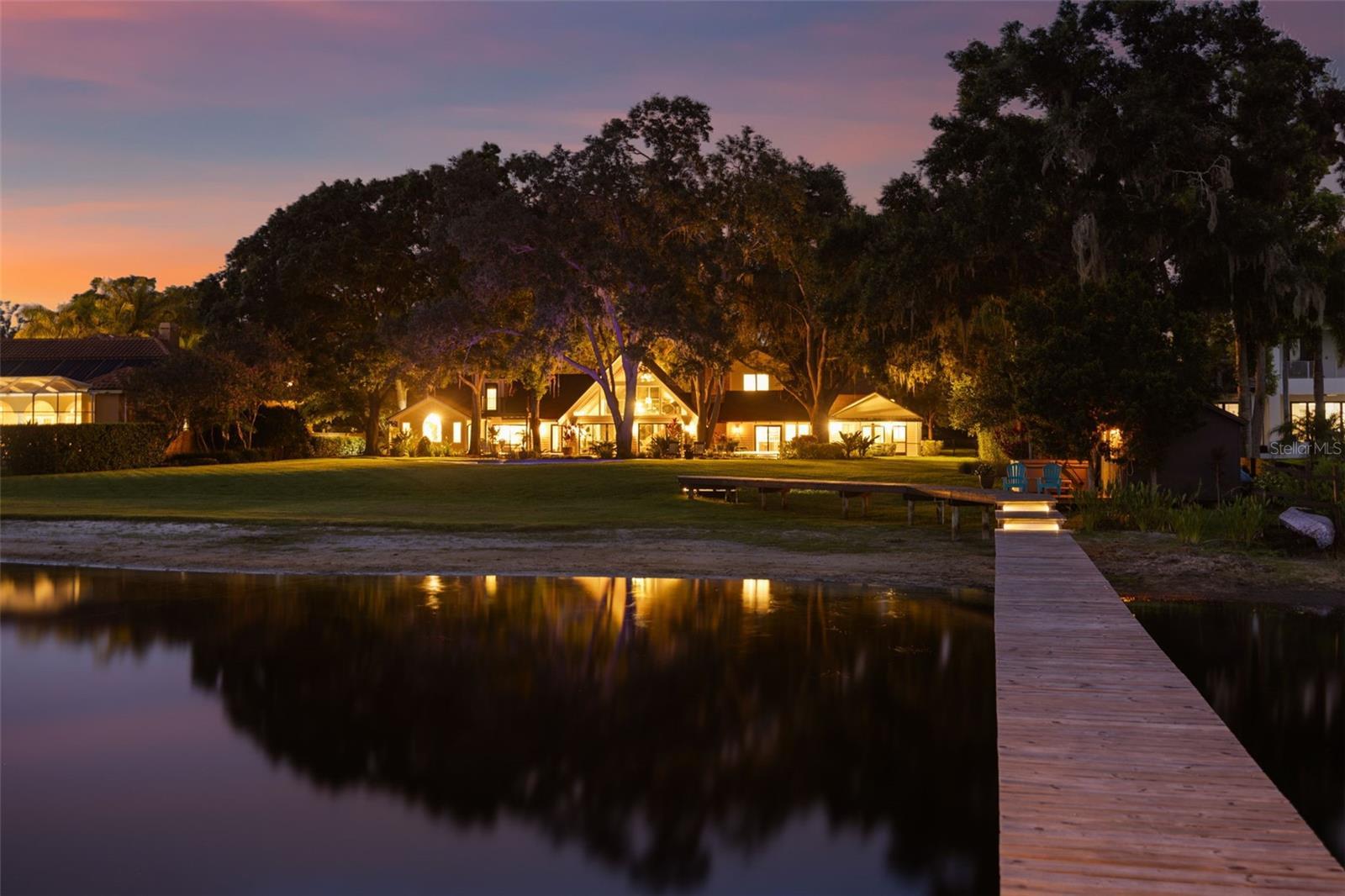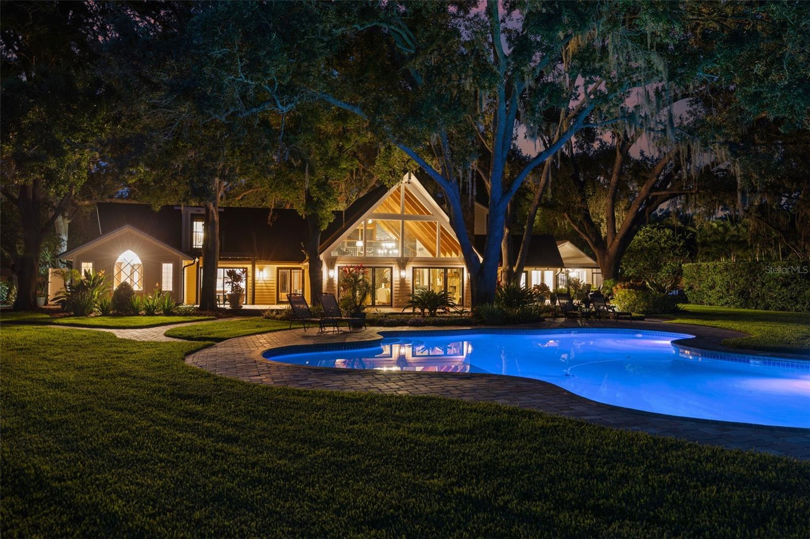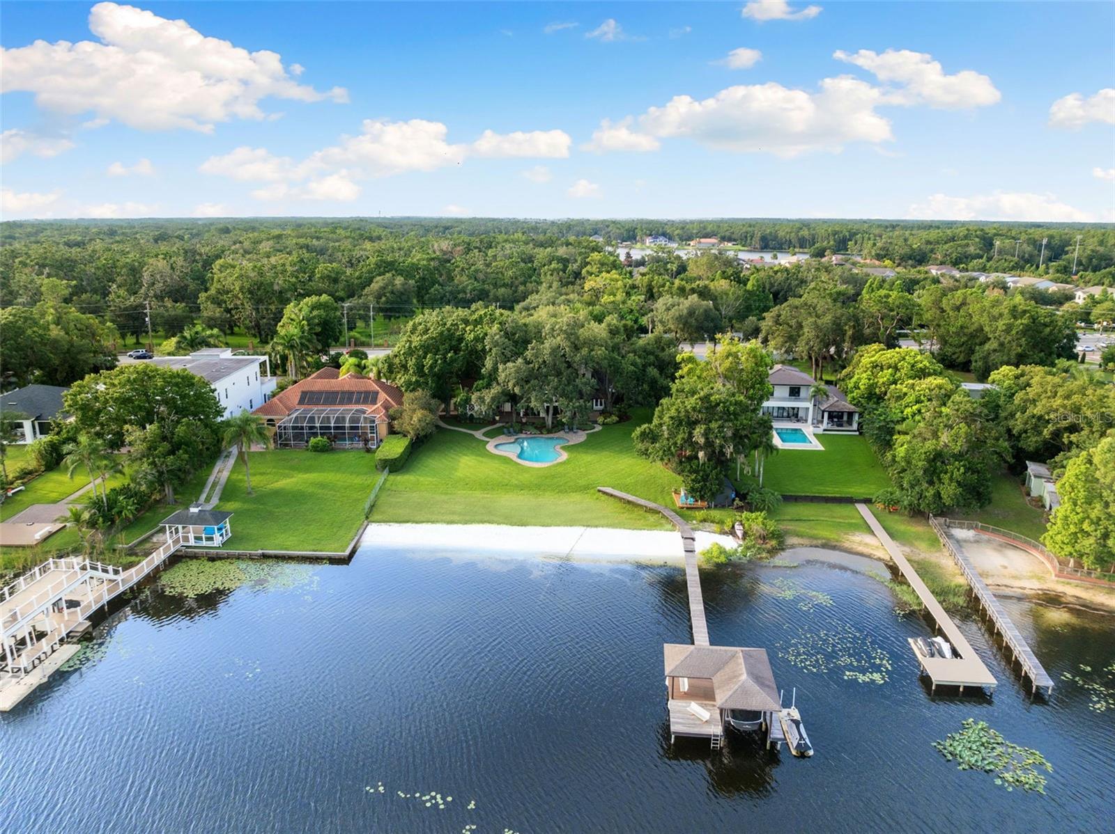 Under contract-accepting backup offers. Welcome to 1808 W Bearss Avenue — a once-in-a-lifetime opportunity to own one of the most architecturally distinctive and private lakefront estates in Tampa. With 6 bedrooms, 5.5 bathrooms, and 6,209 sq. ft. of custom-designed living space, this curated residence is set on 1.56 acres with 150 feet of shoreline along the exclusive Lake Magdalene, a 252-acre private ski lake. Only a handful of homes on this lake have the rare combination of architectural scale, acreage, and direct water access, making this an exceedingly uncommon offering in the Tampa luxury market. Inspired by the iconic Southern California designs of Harry Gesner, the A-frame architecture features soaring windows, warm wood tones, and artful finishes throughout. Each room has been thoughtfully curated to flow seamlessly into the next, with hand-selected lighting, textures, and finishes that give the home the feel of a living, breathing art installation. The result is a serene, organic, resort-like experience both inside and out. A brick wall and gated entrance open to a circular driveway, pulling you toward the main home and a 4-car garage connected via porte cochere. The 1,510 Sq. Ft garage offers three individual car bays, with the center bay designed taller for a sprinter van or larger vehicle. In 2022, the second floor was transformed into a fully equipped guest apartment featuring a separate entrance, living room with fireplace, wet bar, mini fridge, and full bathroom—ideal for guests or a mother-in-law suite. Inside the main home, the lake commands attention from the moment you enter. Floor-to-ceiling windows flood the family room with natural light and panoramic water views. A spiral staircase leads to a second-story loft overlooking both the lake and front yard, complete with its own half bath—perfect as an office, creative studio, or lounge. The primary suite is a retreat with lake views, walk-in closet, and spa-inspired ensuite bath with a soaking tub facing the water. Upstairs, two guest rooms feature elevated lofts, one offering its own lakeview perch. The chef’s kitchen boasts Viking appliances (double oven, fridge, gas stove with pot filler), granite counters, double dishwashers, a farmhouse sink, and hidden walk-in pantry, all flowing into an expansive layout ideal for entertaining. Just off the kitchen, the formal living room offers an inviting retreat beneath exposed wood beams and vaulted ceilings. Rich hardwood floors and layered lighting create a cozy-yet-elevated ambiance. The dry bar and wine fridge make this space ideal for entertaining. Step outside and you’re transported to your own private lakeside sanctuary. The resort-style backyard unfolds with a sparkling open-air pool, Azek premium deck, and uninterrupted, panoramic views of Lake Magdalene. Swim beneath the oaks, sunbathe with wide-open water as your backdrop, or stroll directly from your private beach into the lake—no seawalls, no obstructions, just pure shoreline access. Immaculate tropical landscaping and vibrant gardens create a sense of natural privacy, while a covered boat dock with lift and sunset-view hot tub deck provide the ultimate in waterfront luxury. Additional features include a media room with new carpet, formal dining with organic leaf wallpaper, an outdoor shower, fenced dog run, and a 200-gallon propane tank. All just minutes from Carrollwood Day School, Whole Foods, fine dining, and Dale Mabry—offering seclusion, design, and convenience in one unforgettable package.