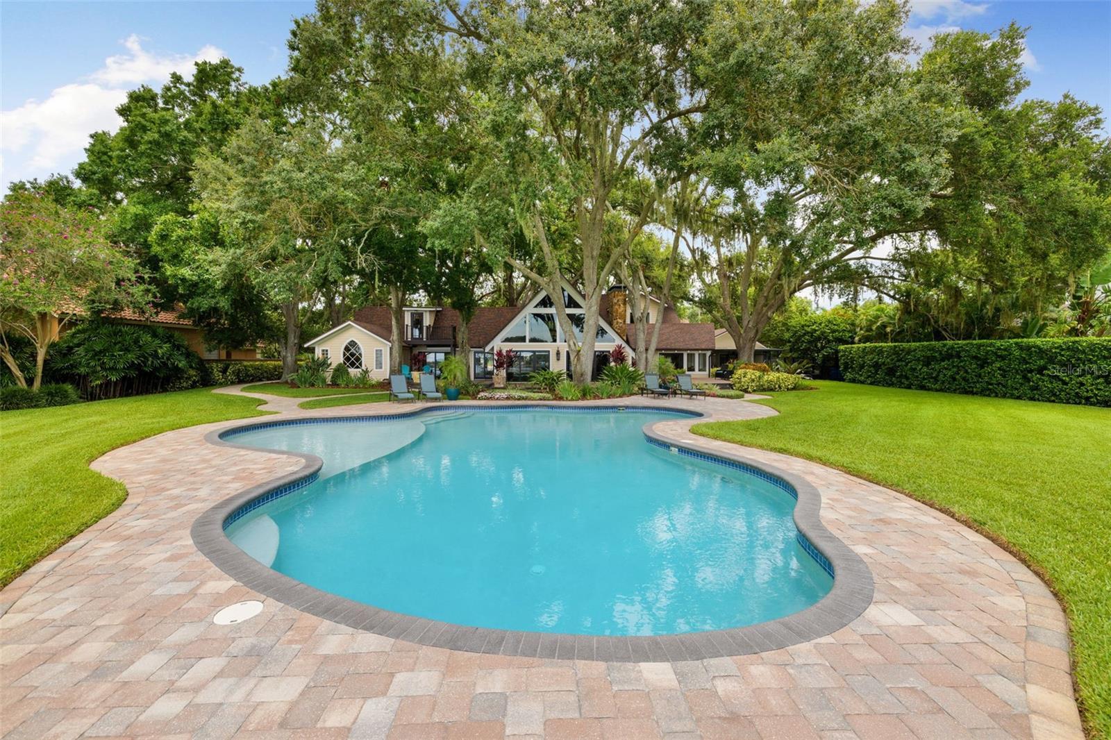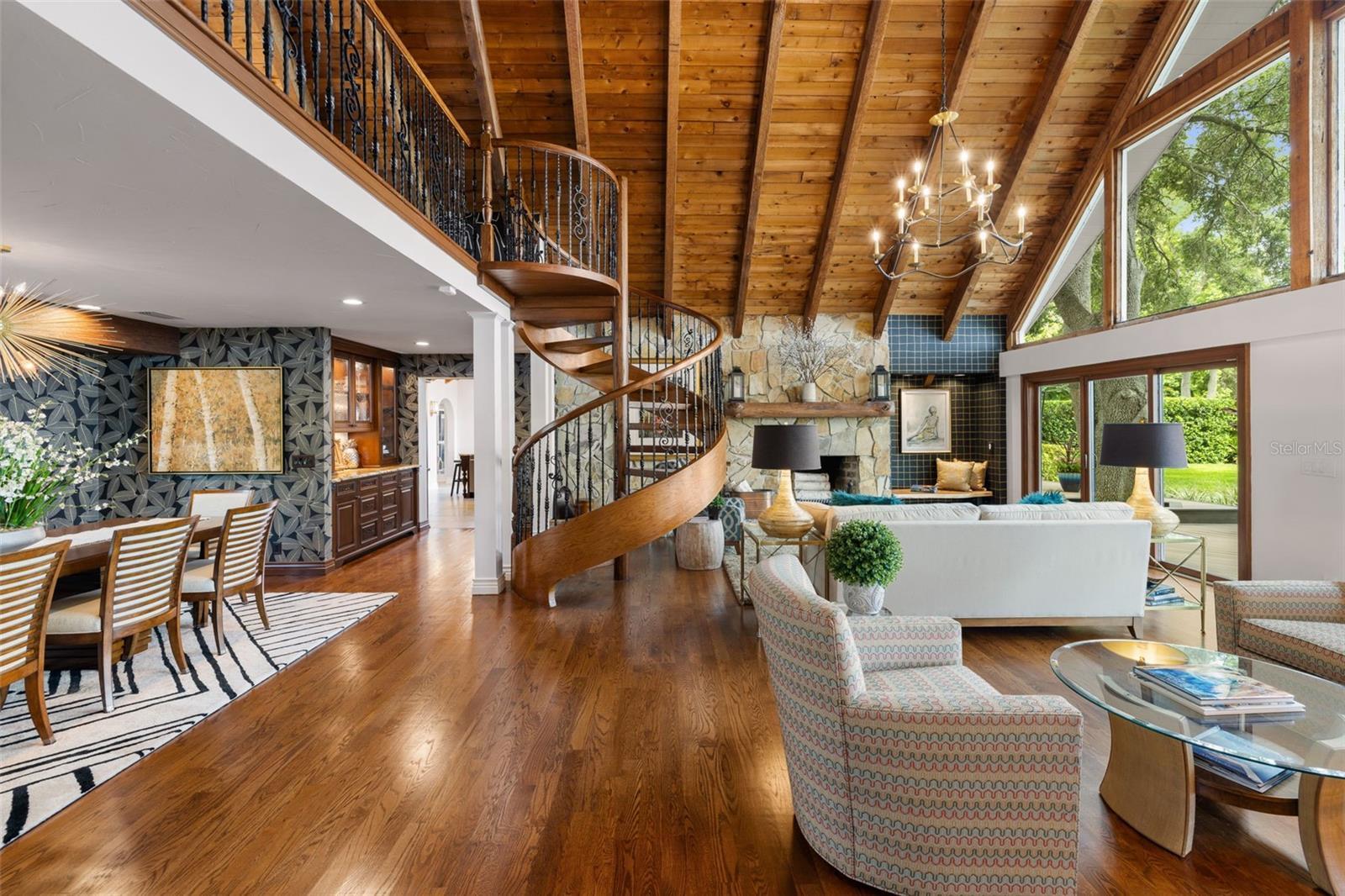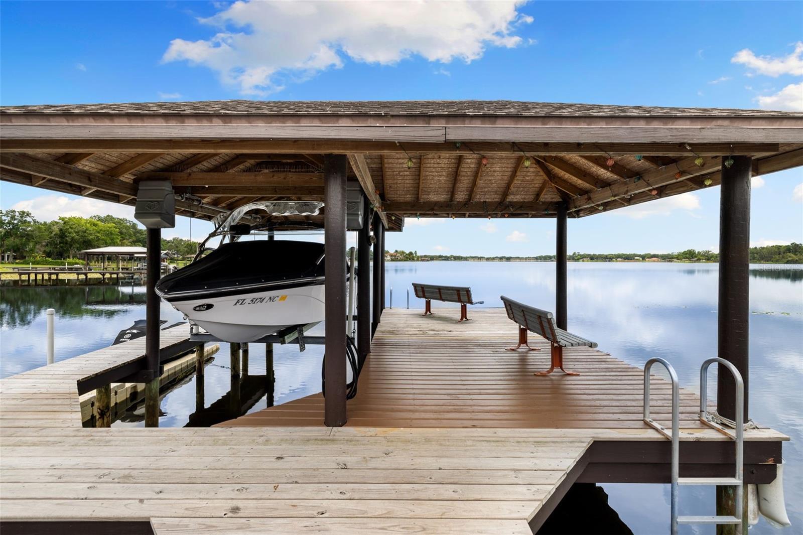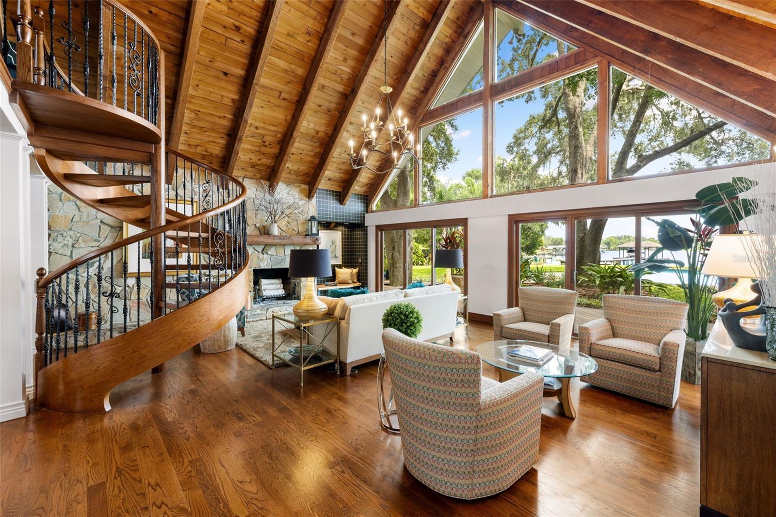 Under contract-accepting backup offers. Welcome to 1808 W Bearss Avenue — a once-in-a-lifetime opportunity to own one of the most architecturally distinctive and private lakefront estates in Tampa. With 6 bedrooms, 5.5 bathrooms, and 6,209 sq. ft. of custom-designed living space, this curated residence is set on 1.56 acres with 150 feet of shoreline along the exclusive Lake Magdalene, a 252-acre private ski lake. Only a handful of homes on this lake have the rare combination of architectural scale, acreage, and direct water access, making this an exceedingly uncommon offering in the Tampa luxury market. Inspired by the iconic Southern California designs of Harry Gesner, the A-frame architecture features soaring windows, warm wood tones, and artful finishes throughout. Each room has been thoughtfully curated to flow seamlessly into the next, with hand-selected lighting, textures, and finishes that give the home the feel of a living, breathing art installation. The result is a serene, organic, resort-like experience both inside and out. A brick wall and gated entrance open to a circular driveway, pulling you toward the main home and a 4-car garage connected via porte cochere. The 1,510 Sq. Ft garage offers three individual car bays, with the center bay designed taller for a sprinter van or larger vehicle. In 2022, the second floor was transformed into a fully equipped guest apartment featuring a separate entrance, living room with fireplace, wet bar, mini fridge, and full bathroom—ideal for guests or a mother-in-law suite. Inside the main home, the lake commands attention from the moment you enter. Floor-to-ceiling windows flood the family room with natural light and panoramic water views. A spiral staircase leads to a second-story loft overlooking both the lake and front yard, complete with its own half bath—perfect as an office, creative studio, or lounge. The primary suite is a retreat with lake views, walk-in closet, and spa-inspired ensuite bath with a soaking tub facing the water. Upstairs, two guest rooms feature elevated lofts, one offering its own lakeview perch. The chef’s kitchen boasts Viking appliances (double oven, fridge, gas stove with pot filler), granite counters, double dishwashers, a farmhouse sink, and hidden walk-in pantry, all flowing into an expansive layout ideal for entertaining. Just off the kitchen, the formal living room offers an inviting retreat beneath exposed wood beams and vaulted ceilings. Rich hardwood floors and layered lighting create a cozy-yet-elevated ambiance. The dry bar and wine fridge make this space ideal for entertaining. Step outside and you’re transported to your own private lakeside sanctuary. The resort-style backyard unfolds with a sparkling open-air pool, Azek premium deck, and uninterrupted, panoramic views of Lake Magdalene. Swim beneath the oaks, sunbathe with wide-open water as your backdrop, or stroll directly from your private beach into the lake—no seawalls, no obstructions, just pure shoreline access. Immaculate tropical landscaping and vibrant gardens create a sense of natural privacy, while a covered boat dock with lift and sunset-view hot tub deck provide the ultimate in waterfront luxury. Additional features include a media room with new carpet, formal dining with organic leaf wallpaper, an outdoor shower, fenced dog run, and a 200-gallon propane tank. All just minutes from Carrollwood Day School, Whole Foods, fine dining, and Dale Mabry—offering seclusion, design, and convenience in one unforgettable package.