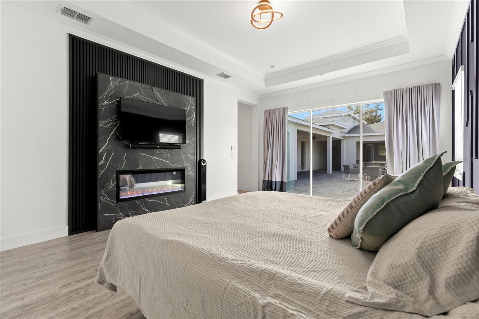- Electric, Masonry, Outside, Primary Bedroom, Stone, Wood Burning