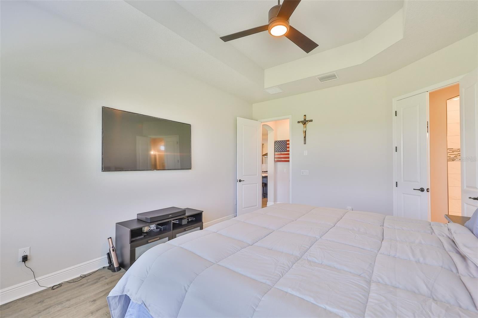 One or more photo(s) has been virtually staged. PRICE IMPROVEMENT!!!! Discover the perfect blend of elegance, comfort, and convenience in this stunning 2023 David Weekley Cecily model home, located in the highly sought-after Waterset community of Apollo Beach. Why wait to build when you can move right into this meticulously crafted residence where resort-style amenities and coastal charm create a lifestyle that feels like a vacation every day. Upon entry, you're welcomed by soaring ceilings and a bright, open floor plan that creates a warm and inviting atmosphere. The gourmet kitchen is thoughtfully designed with stainless steel appliances, quartz countertops, and custom cabinetry ideal for hosting or enjoying family meals. Featuring 4 spacious bedrooms, 3 full bathrooms, over 3,300 square feet of heated living space, and a 3-car garage, it provides ample room for both everyday living and effortless entertaining. The primary suite is a private retreat, highlighted by elegant tray ceilings and a spa-like ensuite bathroom featuring dual vanities, a walk-in shower, a private water closet, and a large walk-in closet. Step outside to your own backyard oasis, where a covered lanai overlooks lush landscaping and borders vacant land offering ultimate privacy with no rear neighbors. Located in the desirable Waterset community, residents enjoy access to top-tier amenities including a resort-style pool, state-of-the-art fitness center, scenic walking trails, and more. With top-rated schools nearby and convenient access to shopping, dining, and entertainment, this home delivers the ideal combination of luxury and everyday convenience. Don't miss this rare opportunity to embrace the Florida lifestyle at its finest. Schedule your private showing today!