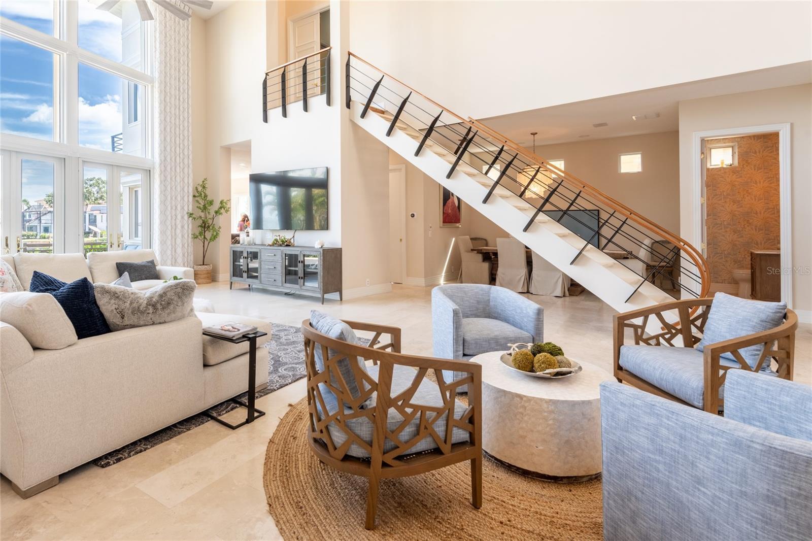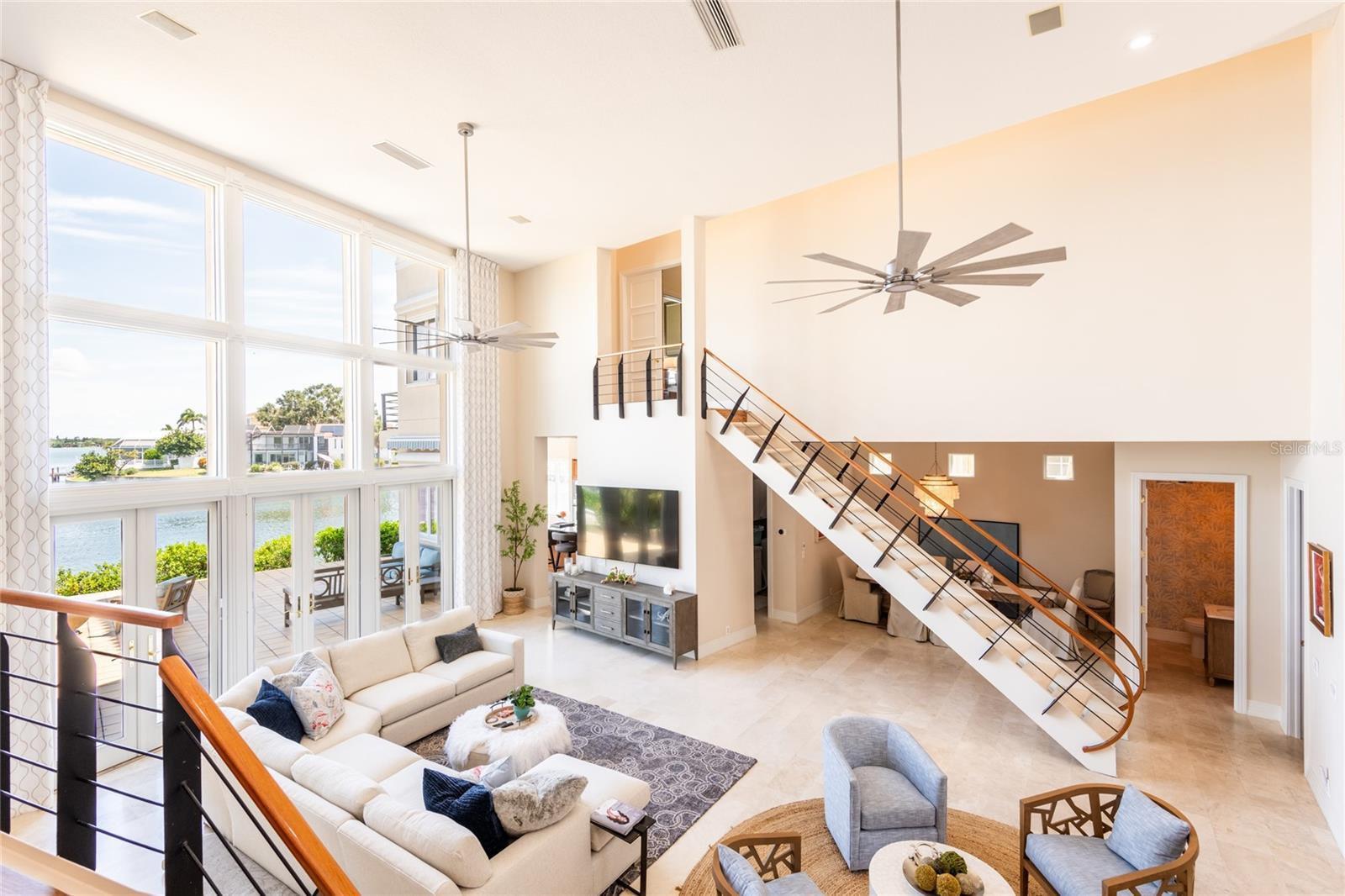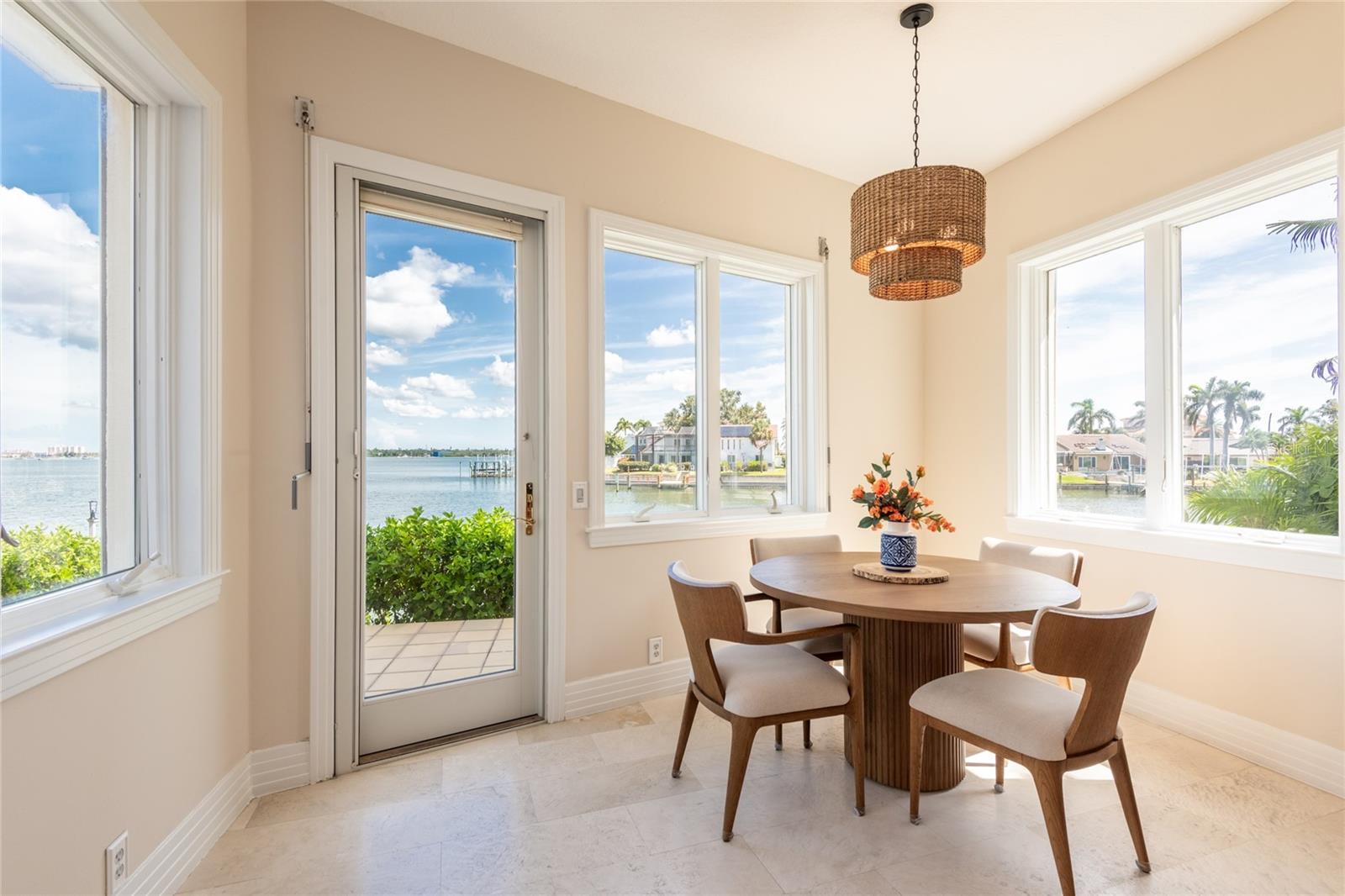 Welcome to paradise, this beautiful home was HIGH and DRY with NO water intrusion from last year’s storms! Enjoy waterfront living at its finest in this spectacular coastal inspired oasis. This magnificent home is located in the 24 hour guard gated waterfront community of Dolphin Cay which offers tennis courts, two heated swimming pools (one of which overlooks the private 2 acre beach on Boca Ciega Bay), community center with billiard room, library, fitness center and lushly landscaped walking trails. Upon entering the home you'll notice the spacious open floor plan with travertine floors, 22 ft high ceilings, and an abundance of windows that are all designed to take advantage of amazing water views from almost every room. This home offers 4 bedrooms 3.5 bathrooms, a popular split floor plan and an oversized 2 car garage with an additional enclosed storage area perfect for kayaks, paddle boards, etc. Upon entering you will be greeted by the expansive water views from the generously sized living room which opens to the dining room and beautiful kitchen. The kitchen has a breakfast nook and a large island for additional seating and electric, sink, dishwasher and separate ice maker. It features granite counters, wood cabinets with under cabinet lighting, built-in oven, microwave, warming drawer, 6 burner gas cooktop, subzero refrigerator, vegetable sink and closet pantry. The laundry room offers additional cabinetry, sink, and laundry chute for convenience. The large dining room is separate, off the family room, and leads to the tastefully remodeled half bath and separate office with built-in bookshelves and gas fireplace. There is also a lower level bonus room off the living room (not included in the square footage) that gives you an additional space for a home gym, media room, 5th bedroom, etc…the possibilities are endless. From the living room, there is a staircase that leads to the Primary suite with wood-plank ceramic tile floors. The large bedroom offers expansive water views and has a Juliet balcony. The large walk-in closet offers built-in storage stystemand the huge luxurious marble bathroom features dual vanities, separate tub, and oversized shower with body jets. On the opposite side of the home are three additional bedrooms, one with it’s own private balcony overlooking the water and two upscale and remodeled bathrooms. One bathroom features a walk in shower with frameless glass, and the other large bathroom has a shower/tub combination, both with high-end finishes. Outside there is a tiered tile patio that’s stubbed with gas for an outdoor kitchen and has an electric retractable awning with LED lights to provide shade, which is perfect for entertaining, and overlooks your private composite dock with water and electric. Located just inside the no-wake zone, you are in protected water with breathtaking views. Other features to note, the home has double paned windows and hurricane shutters, newer a/c (2021) units, and gas tankless hot water heater. Steps away from the community pools and several electric vehicle charging stations, the home is conveniently located ten minutes from Gulf Beaches, Fort De Soto Park, all the great venues in downtown St Petersburg and just 30 minutes to Tampa Int'l Airport. Make your private appointment to see this gem today!