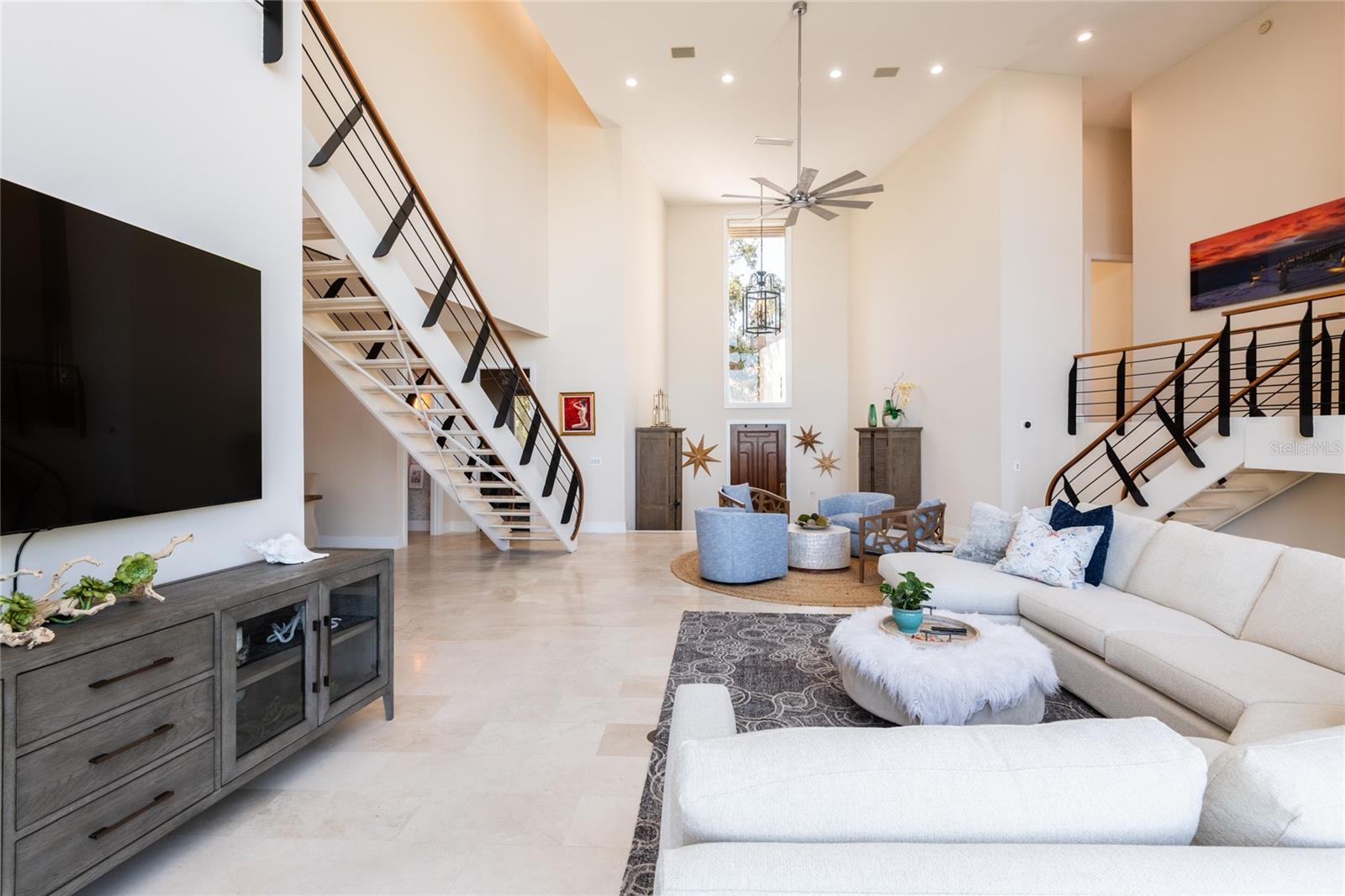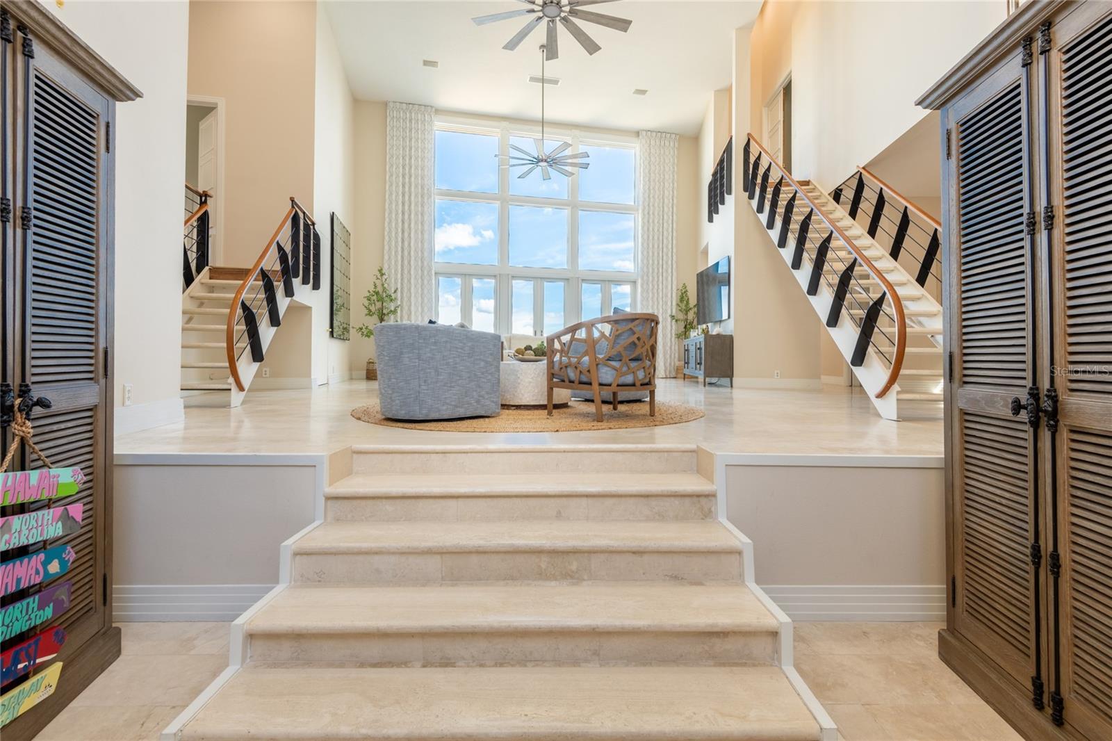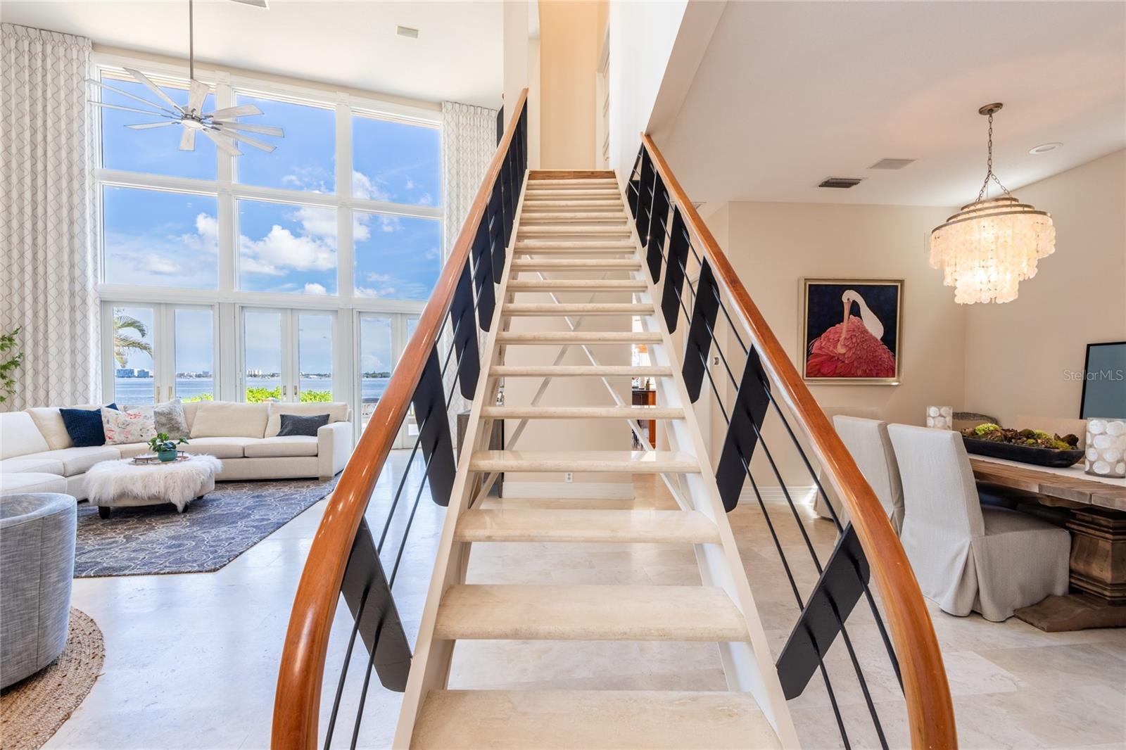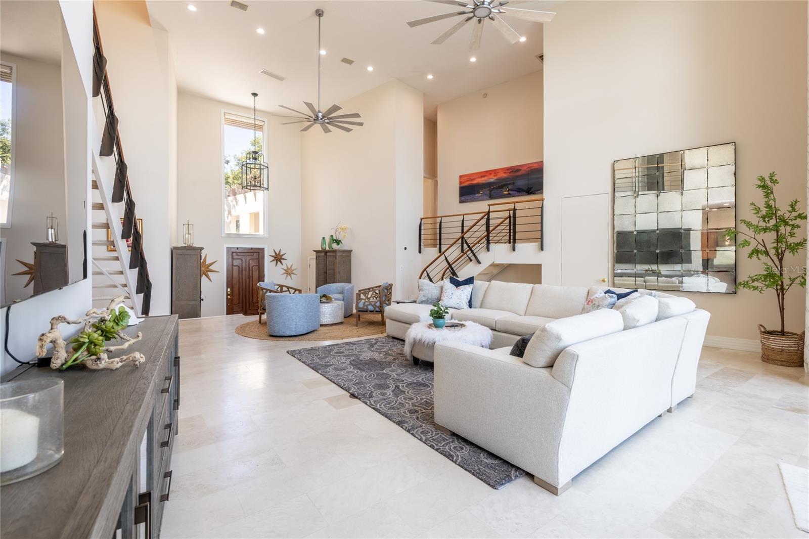 Welcome to paradise, this beautiful home was HIGH and DRY with NO water intrusion from last year’s storms! Enjoy waterfront living at its finest in this spectacular coastal inspired oasis. This magnificent home is located in the 24 hour guard gated waterfront community of Dolphin Cay which offers tennis courts, two heated swimming pools (one of which overlooks the private 2 acre beach on Boca Ciega Bay), community center with billiard room, library, fitness center and lushly landscaped walking trails. Upon entering the home you'll notice the spacious open floor plan with travertine floors, 22 ft high ceilings, and an abundance of windows that are all designed to take advantage of amazing water views from almost every room. This home offers 4 bedrooms 3.5 bathrooms, a popular split floor plan and an oversized 2 car garage with an additional enclosed storage area perfect for kayaks, paddle boards, etc. Upon entering you will be greeted by the expansive water views from the generously sized living room which opens to the dining room and beautiful kitchen. The kitchen has a breakfast nook and a large island for additional seating and electric, sink, dishwasher and separate ice maker. It features granite counters, wood cabinets with under cabinet lighting, built-in oven, microwave, warming drawer, 6 burner gas cooktop, subzero refrigerator, vegetable sink and closet pantry. The laundry room offers additional cabinetry, sink, and laundry chute for convenience. The large dining room is separate, off the family room, and leads to the tastefully remodeled half bath and separate office with built-in bookshelves and gas fireplace. There is also a lower level bonus room off the living room (not included in the square footage) that gives you an additional space for a home gym, media room, 5th bedroom, etc…the possibilities are endless. From the living room, there is a staircase that leads to the Primary suite with wood-plank ceramic tile floors. The large bedroom offers expansive water views and has a Juliet balcony. The large walk-in closet offers built-in storage stystemand the huge luxurious marble bathroom features dual vanities, separate tub, and oversized shower with body jets. On the opposite side of the home are three additional bedrooms, one with it’s own private balcony overlooking the water and two upscale and remodeled bathrooms. One bathroom features a walk in shower with frameless glass, and the other large bathroom has a shower/tub combination, both with high-end finishes. Outside there is a tiered tile patio that’s stubbed with gas for an outdoor kitchen and has an electric retractable awning with LED lights to provide shade, which is perfect for entertaining, and overlooks your private composite dock with water and electric. Located just inside the no-wake zone, you are in protected water with breathtaking views. Other features to note, the home has double paned windows and hurricane shutters, newer a/c (2021) units, and gas tankless hot water heater. Steps away from the community pools and several electric vehicle charging stations, the home is conveniently located ten minutes from Gulf Beaches, Fort De Soto Park, all the great venues in downtown St Petersburg and just 30 minutes to Tampa Int'l Airport. Make your private appointment to see this gem today!