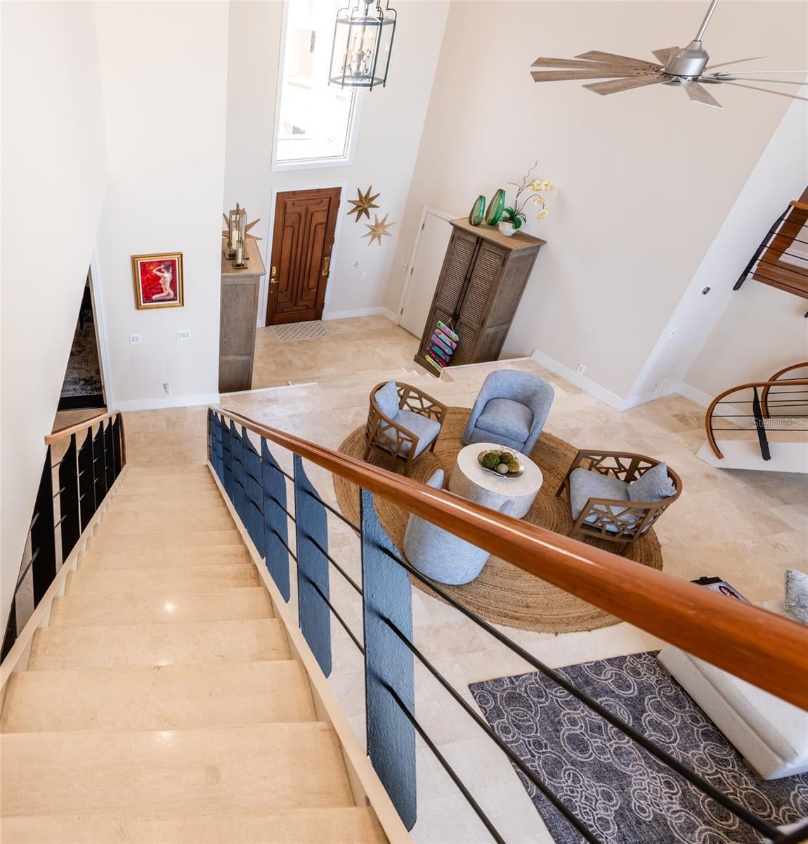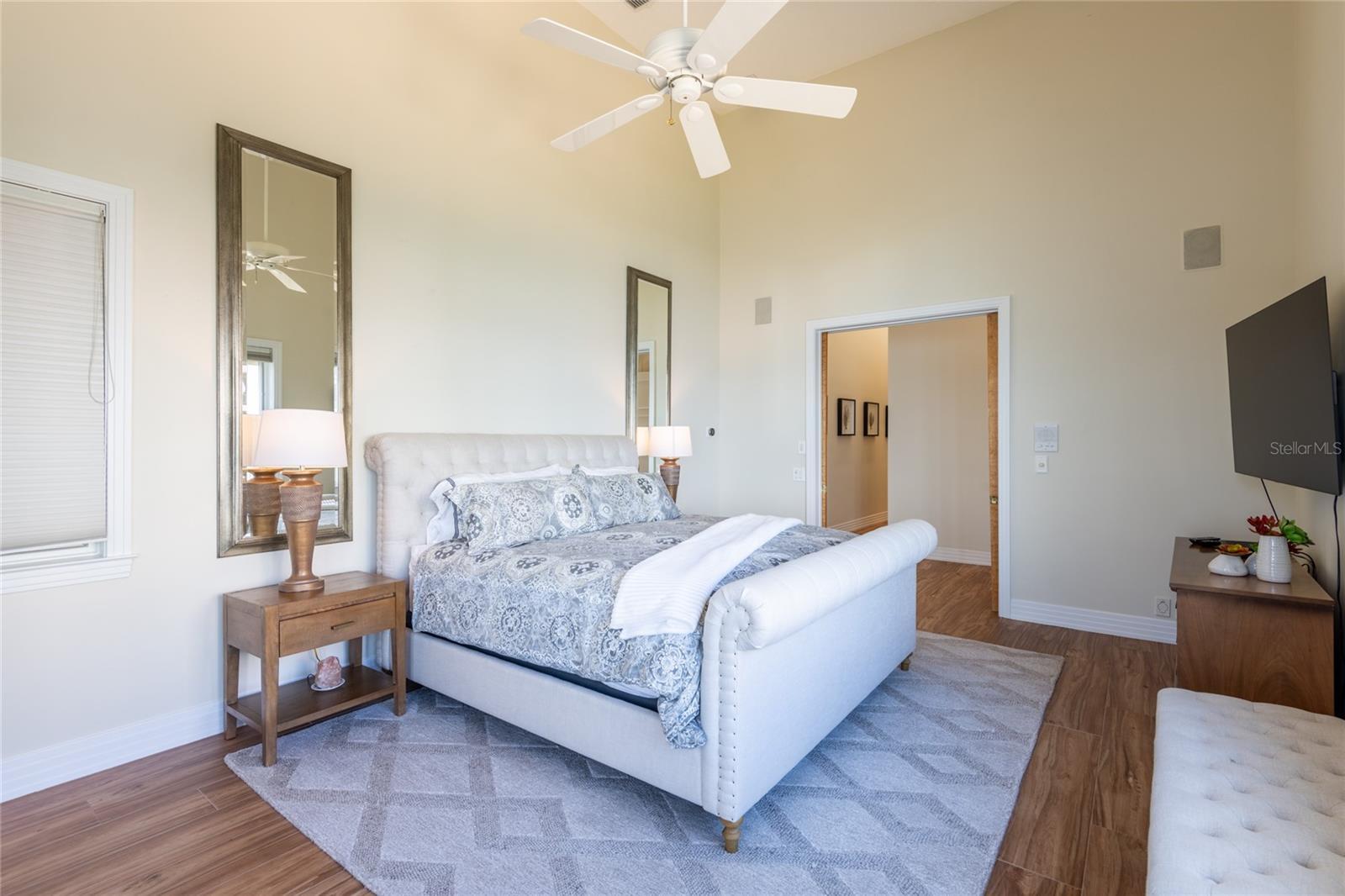 - Cathedral Ceiling(s), Ceiling Fans(s), Crown Molding, Eat-in Kitchen, Open Floorplan, PrimaryBedroom Upstairs, Solid Wood Cabinets, Split Bedroom, Stone Counters, Walk-In Closet(s), Window Treatments