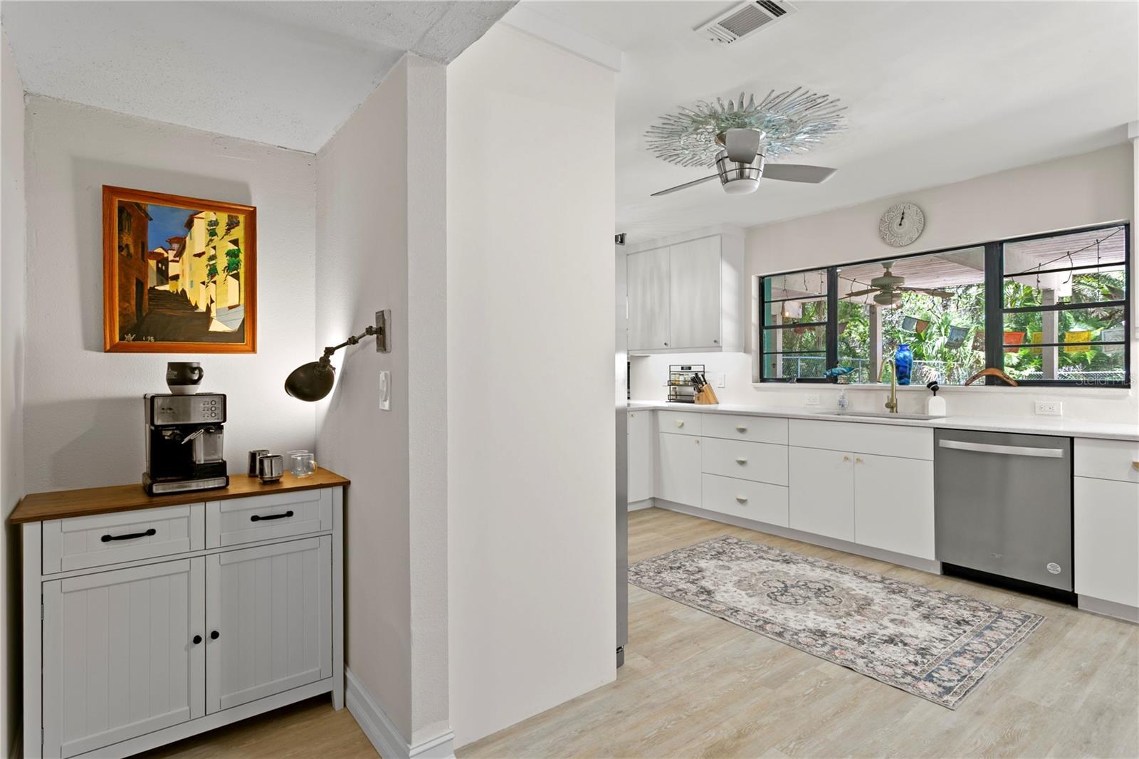 - Ceiling Fans(s), Central Vaccum, Eat-in Kitchen, High Ceilings, Open Floorplan, Solid Surface Counters