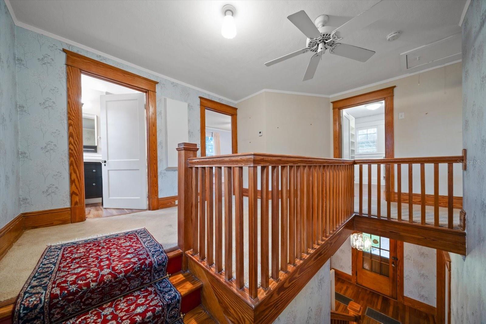 - Built-in Features, Crown Molding, High Ceilings, Kitchen/Family Room Combo, PrimaryBedroom Upstairs, Solid Surface Counters, Thermostat, Window Treatments