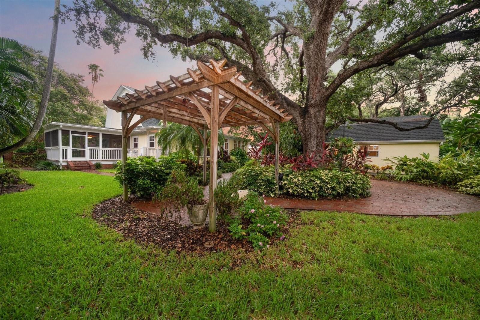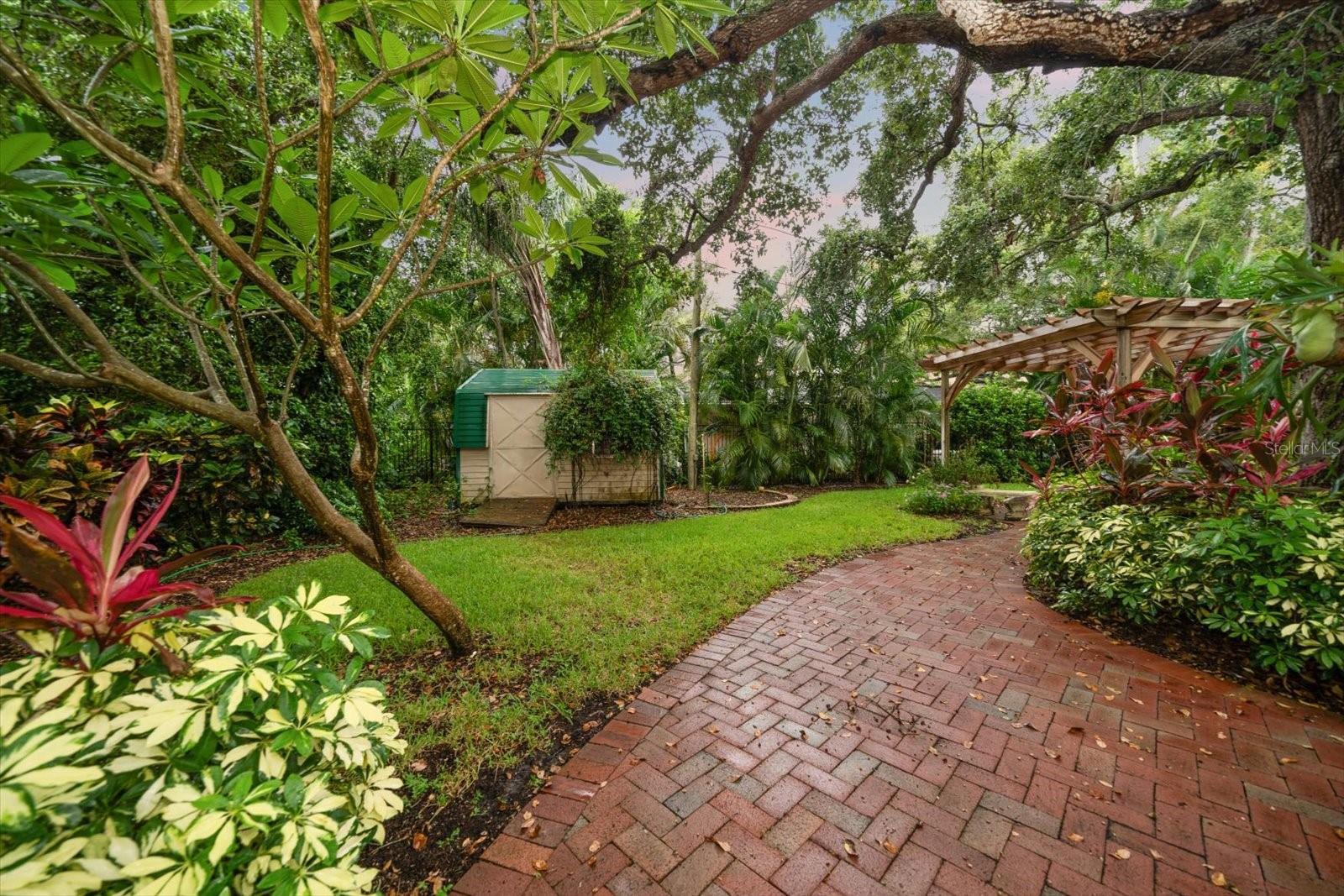 Under contract-accepting backup offers. Charming 1926 Dunedin Gem – Easy golf cart ride to Main Street & Edgewater Drive Park. Located less than a mile from vibrant Downtown Dunedin, and only a block and a half from scenic Edgewater Drive Park, this beautifully preserved 1926 two-story home blends historic charm with modern convenience. Meticulously maintained by the same owner for over 50 years, the home features original architectural details and character throughout, complemented by a tastefully updated kitchen. With 3 bedrooms and a dedicated office space—complete with its own private entrance—this home offers both comfort and flexibility. The spacious screened porch off the dining room is perfect for casual entertaining or relaxing with a good book. Set on a lush, oversized lot, the property is a gardener’s paradise with winding brick pathways, mature trees, and a canopy of greenery. A detached oversized 2-car garage, built in 2019, offers ample storage and workspace. Additional features include natural gas for the hot water heater and an unbeatable location in one of Dunedin’s most desirable neighborhoods. Don’t miss the opportunity to own a piece of Dunedin history just moments from the waterfront, dining, and shopping!