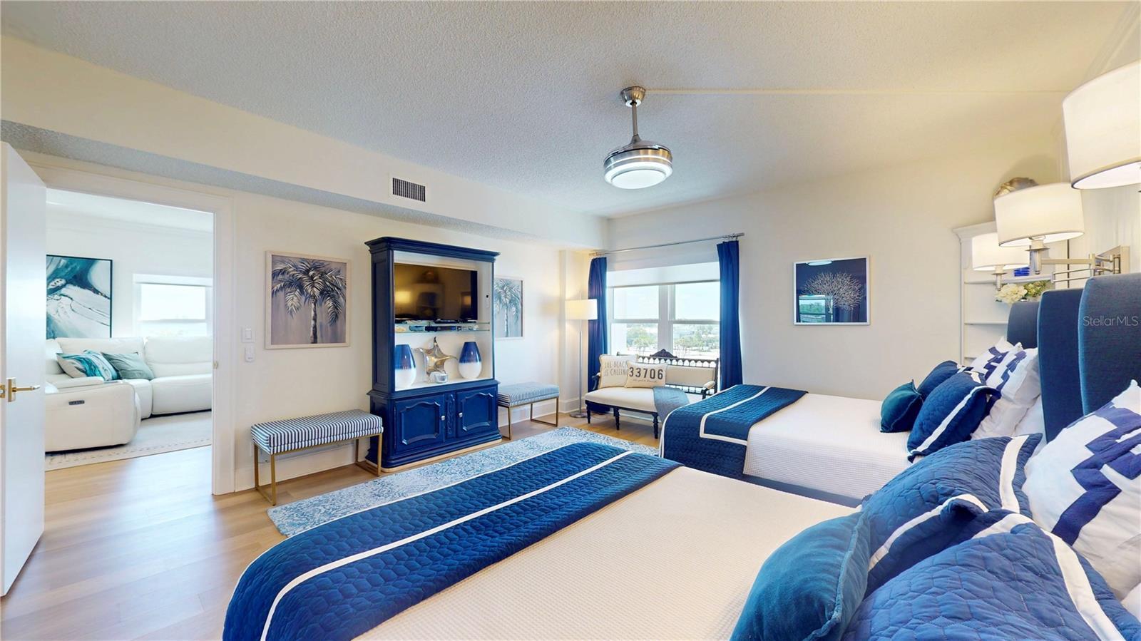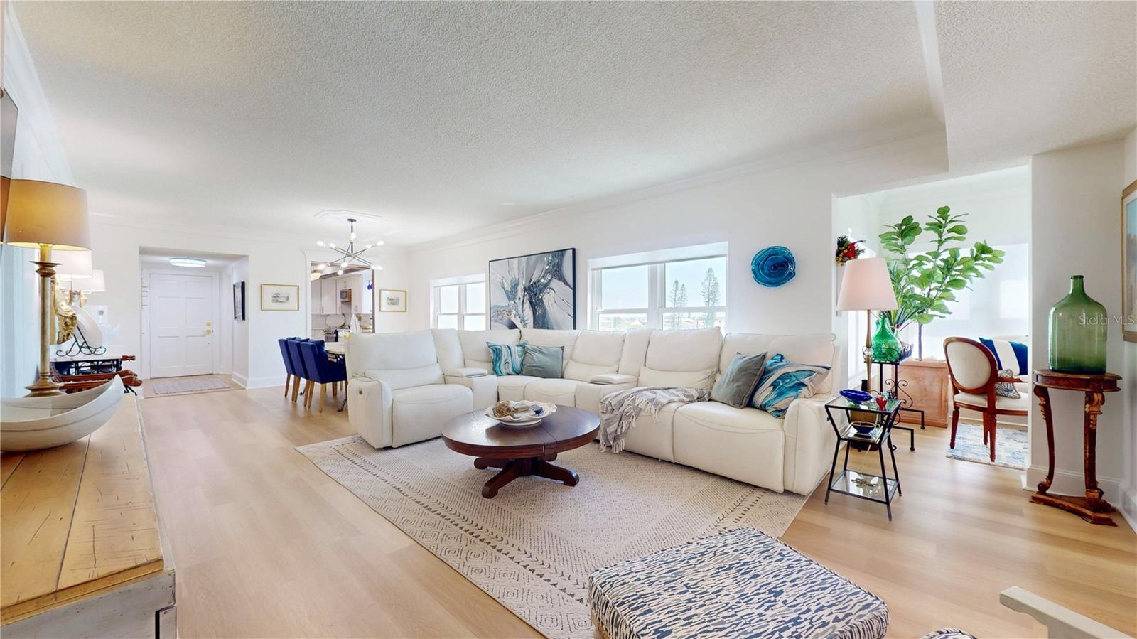 Now available at an AMAZING PRICE for a 3 to 4 month Lease, Available September 1st through December 30, 2025. "FULLY FURNISHED AND WITH ALL UTILITIES PAID" Just pay the monthly lease and enjoy! This is undoubtedly one of the most gorgeous, professionally designed, and furnished units in all of Beau Monde. This unit has been 100% professionally renovated. Don't miss this opportunity to enjoy one of the most highly sought-after Condo units on the beautiful white powder sand beaches on the Gulf in St. Pete Beach, Florida. This 5 floor 2 bedroom 2 bath unit offers the most beautiful Sunrise views, East & South over the Intracoastal and Gulf. The Beau Monde offers a formal, secure lobby entry, heated saltwater pool, an exercise and weight room with sauna and showers, direct private beach access, tennis and pickleball courts, BBQ grills, and a club room, all complemented by the services of an on-site property manager. This unit includes a covered reserved parking space just outside the main lobby entrance. Excellent location in the center of St. Pete Beach, across the street from Publix, Starbucks, CVS, shopping and many restaurants with convenient access to I-275 and close proximity to the vibrant downtowns of St. Petersburg and Tampa. Enjoy a short drive or walk to incredible dining, entertainment and world-class amenities. Or, simply walk out the door and plant your feet in the soft white sand and enjoy the warm waters of the Gulf. You'll also enjoy relaxing strolls down quiet alleyways and experience the historic charm of Pass-A-Grille, a quaint seaside village just to the south with numerous boutique shops and restaurants. Just north you'll enjoy the exciting Treasure Island & John's Pass. Copy and paste this link for a 3D Walking tour of the unit: https://my.matterport.com/show/?m=Pk3AQwZzYkg&mls=1