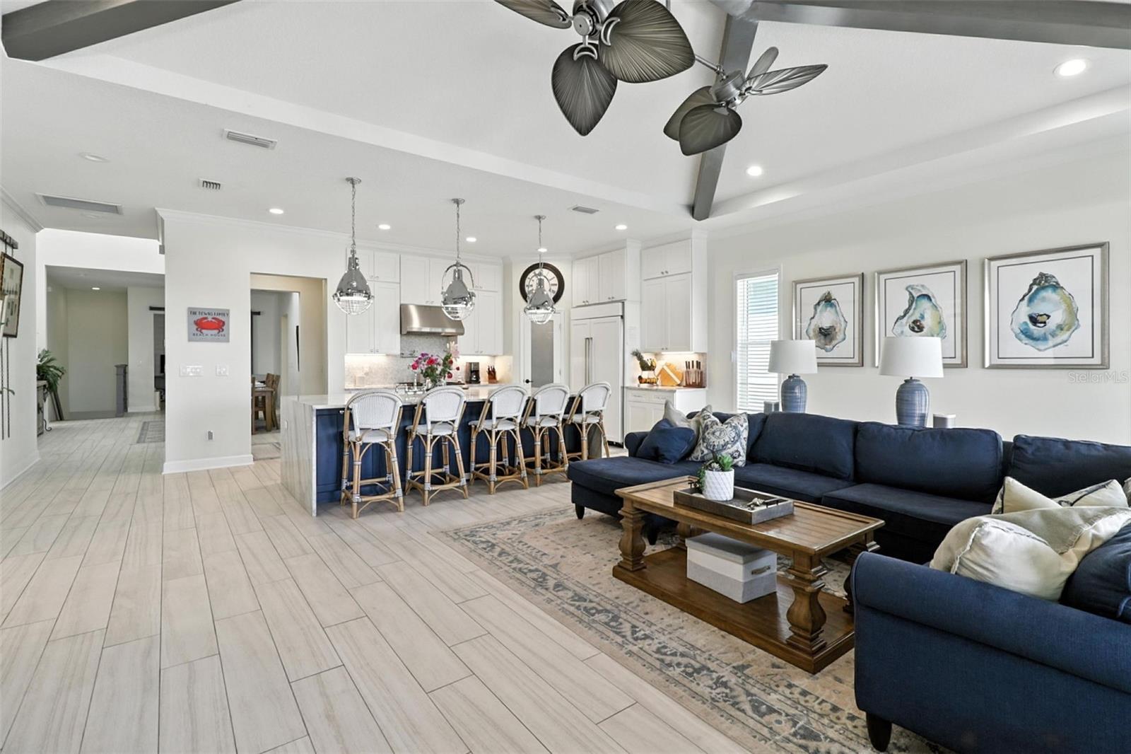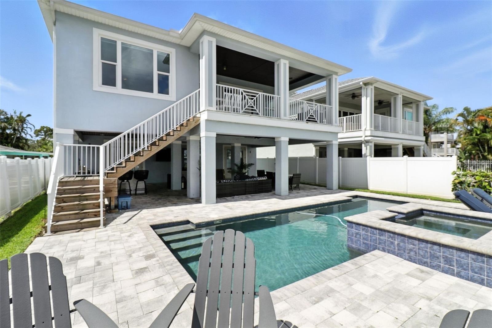 One or more photo(s) has been virtually staged. Built in 2018, this exceptional waterfront residence seamlessly blends coastal sophistication with the confidence of modern construction. Elevated above flood level and designed to meet today’s stringent hurricane standards, the home offers high-efficiency systems, luxury appliances, and enhanced durability delivering both refined comfort and long-term peace of mind. The main living level features a spacious great room that flows effortlessly into a well-appointed kitchen, creating an inviting space for everyday living and effortless entertaining. The primary suite is a tranquil retreat with sweeping water views, while guest bedrooms are thoughtfully positioned on the opposite wing for added privacy. All living spaces are situated on a single elevated level, offering ease, accessibility, and intentional design. Outdoors, a resort-style pool is framed by lush tropical landscaping and a generous covered lanai complete with an outdoor living area, dining space, and summer kitchen. Whether enjoying a post-boating swim, entertaining under the stars, or savoring a quiet sunrise coffee, this home is designed for relaxed waterfront living. Boaters will appreciate the home’s ideal setting in a quiet cove with views of the Dunedin Causeway, along with quick access to waterfront dining and nearby islands. Rare garage space for up to six vehicles provides exceptional flexibility for car enthusiasts, storage, or hobbies. Centrally located with no bridges to navigate, the home offers easy access to Downtown Clearwater and the charm of Dunedin both conveniently reachable by golf cart. Unlike barrier island living, this location eliminates seasonal traffic and bridge delays while preserving the coastal lifestyle. This is more than a home it’s a thoughtfully designed waterfront lifestyle defined by comfort, convenience, and enduring quality. Photos may include virtual enhancements and are for illustrative purposes only. Property is sold as-is.