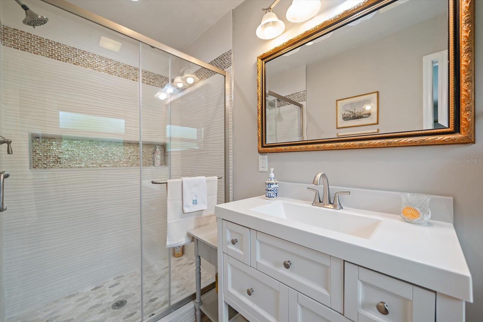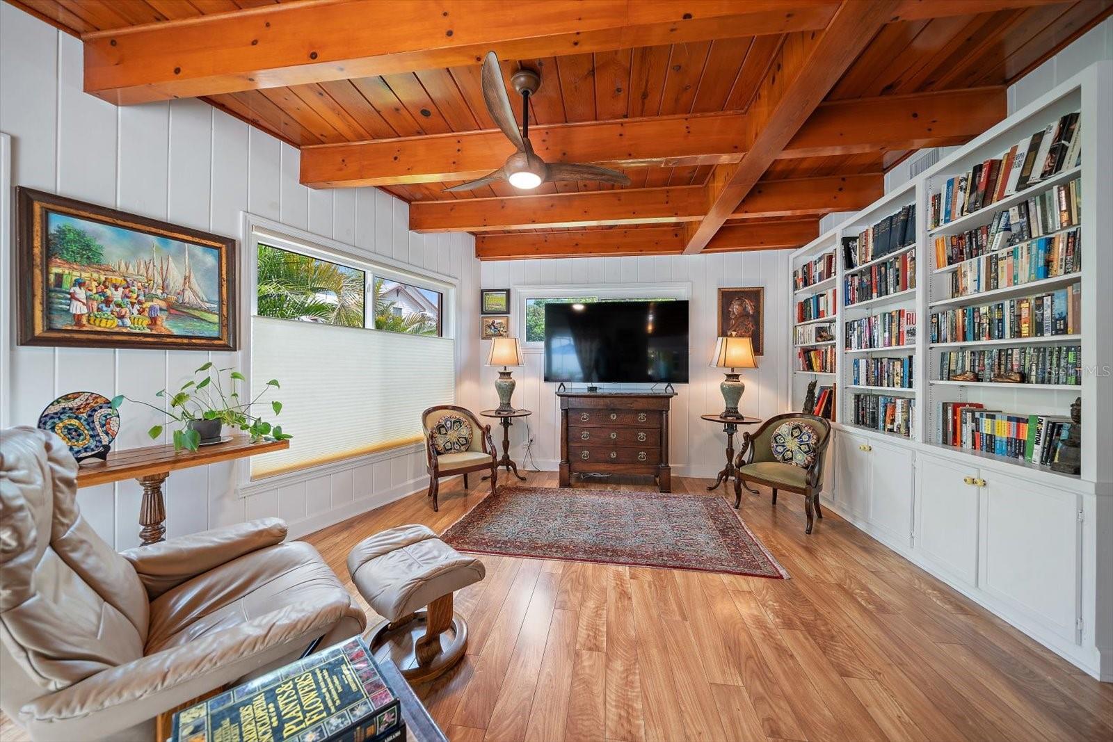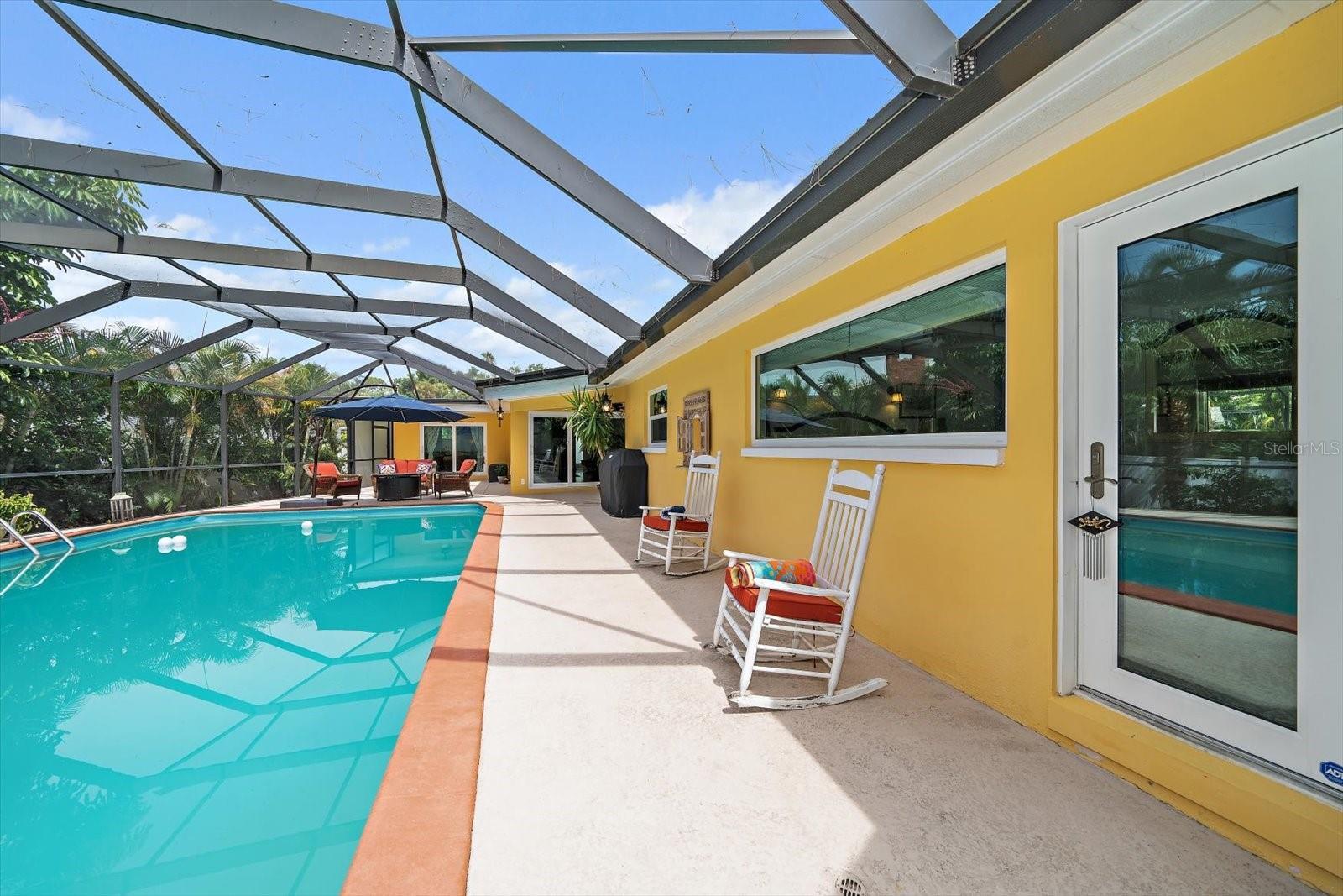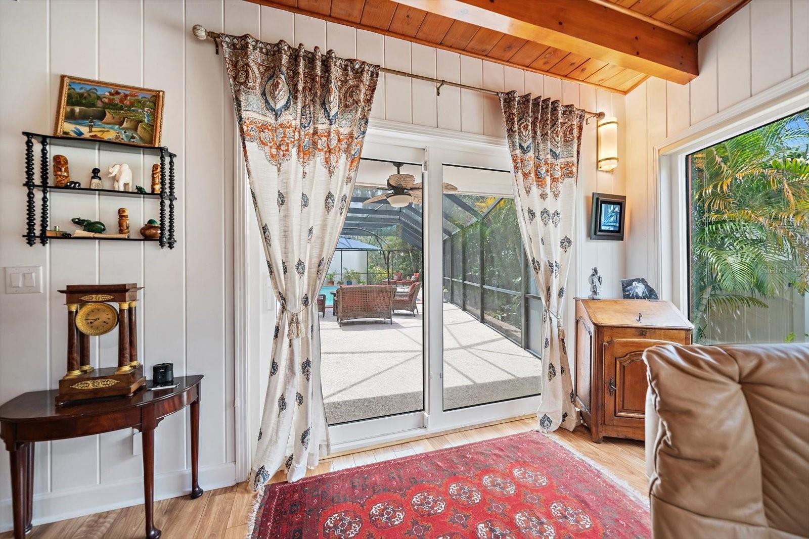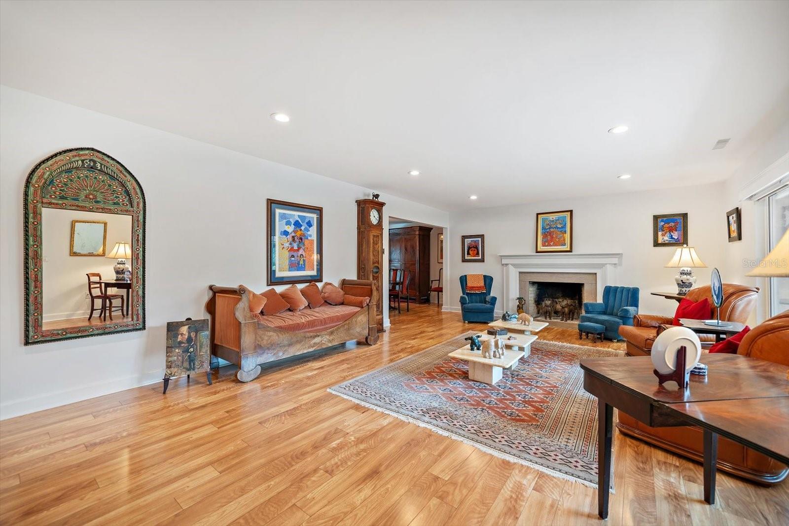 Move-in ready and perfectly positioned in the heart of beautiful Belleair, this stunning home offers refined Florida living just one block from the water and beautiful Winston Park, yet sits high and dry in a non-flood zone. Bursting with curb appeal, this meticulously maintained home features tropical native landscaping, a newly pavered front walkway and patio, and a welcoming entryway. Inside, a bright and open floor plan is enhanced by designer finishes, neutral luxury vinyl flooring, and a seamless flow between spacious living areas. The living room is filled with natural light, boasts electric blinds, and is anchored by a striking wood-burning fireplace, while the adjacent dining room connects effortlessly to the gorgeous white kitchen with stainless steel appliances, granite countertops, custom tile backsplash, wine fridge, and pass-through to the pool. The family room stuns with white paneled walls and soaring pine ceilings with exposed beams, creating an unforgettable atmosphere. Sliders open to a private, lush backyard oasis, where you will find expansive outdoor living that is a perfect blend of luxury and functionality, including 2 distinct covered areas, each offering a unique retreat, and a large shimmering pool with a 10 foot deep-end. Encasing the pool is a soaring screen enclosure providing protection from leaves and insects while maintaining an open, breezy atmosphere. The primary suite is a peaceful retreat with a walk-in custom closet, natural light, private glass door to the pool, and an ensuite featuring a furniture-inspired vanity and walk-in shower. Additional bedrooms are equally well appointed with custom closets, and built-ins. Extras include a 3-car garage with new custom flooring, impact windows and sliders, whole house generator, and electric blinds, Situated in one of Pinellas County’s most desirable neighborhoods, you're just minutes from two private golf clubs, boutique shopping, local dining, and the area's most beautiful beaches. Don’t wait—this Belleair beauty won’t last long!