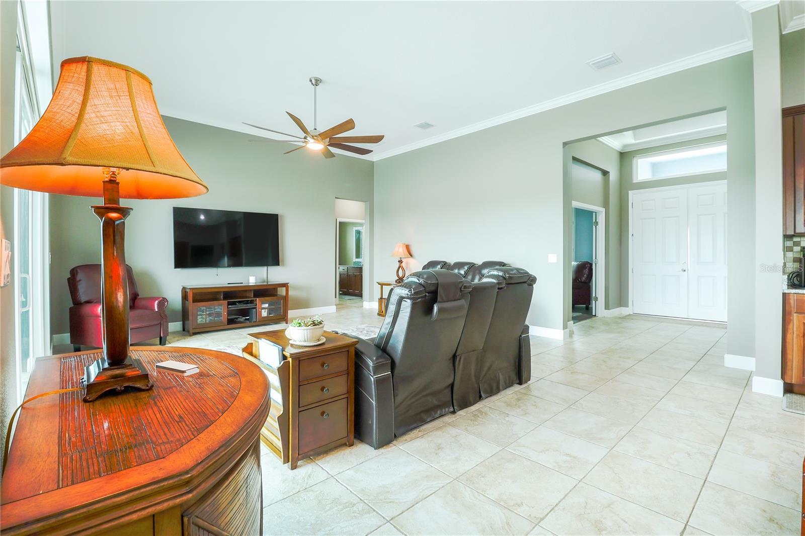 Lake Toscana is a 512-acre gated community with just 127 homes, each having .5 to 1 acre lots of open land, peace, and privacy. It is not unusual to see deer and other wildlife frolicking about this private community which has walking trails, a pavilion, a playground, access to the Little Manatee River. This Cortona model home built in 2020, offers luxury and a desirable one-acre privacy lot with no neighboring homes behind or on either side of the property. The open-concept layout flows seamlessly to the backyard, where the patio opens to a gorgeous pool surrounded by a privacy fence, creating the perfect retreat for relaxation or entertainment. Combining thoughtful design with premium upgrades, this home is a true standout.