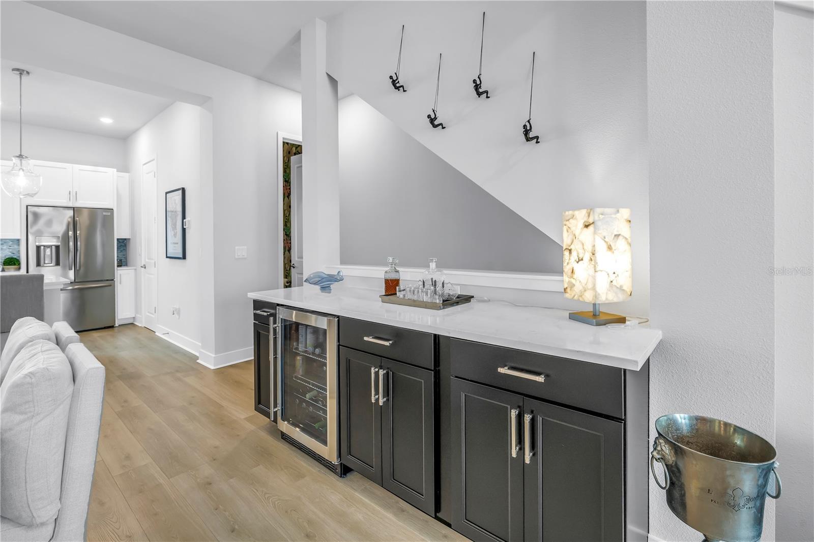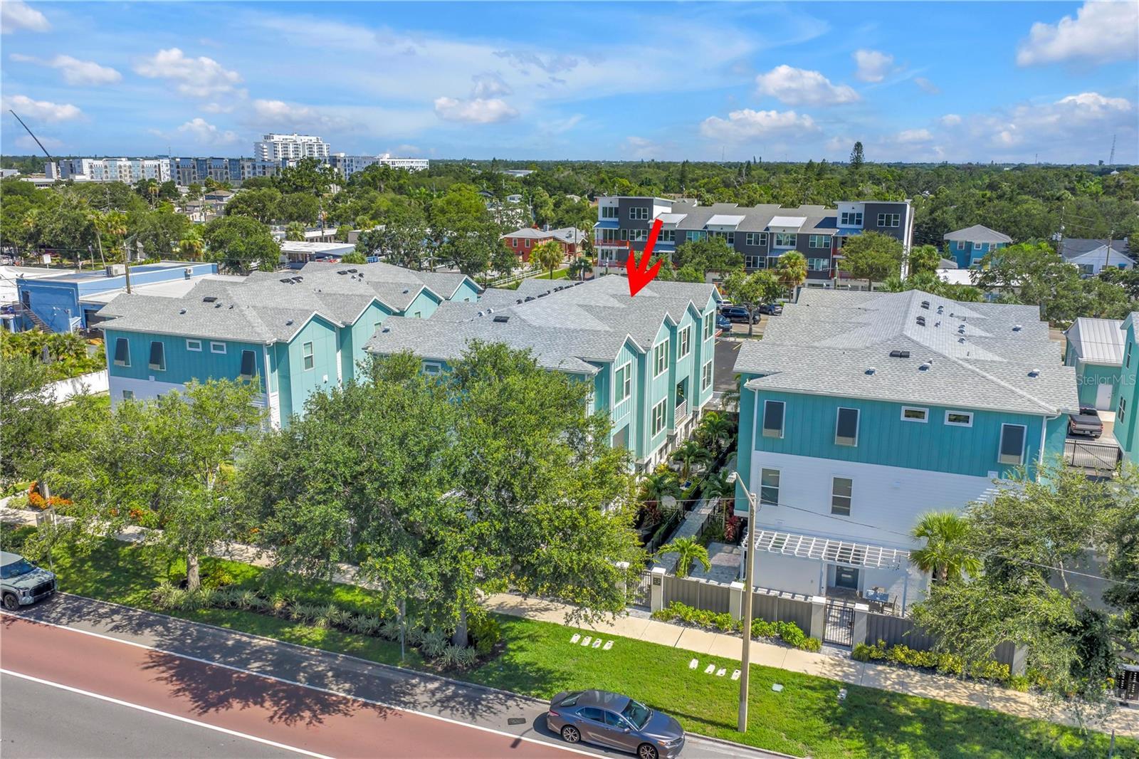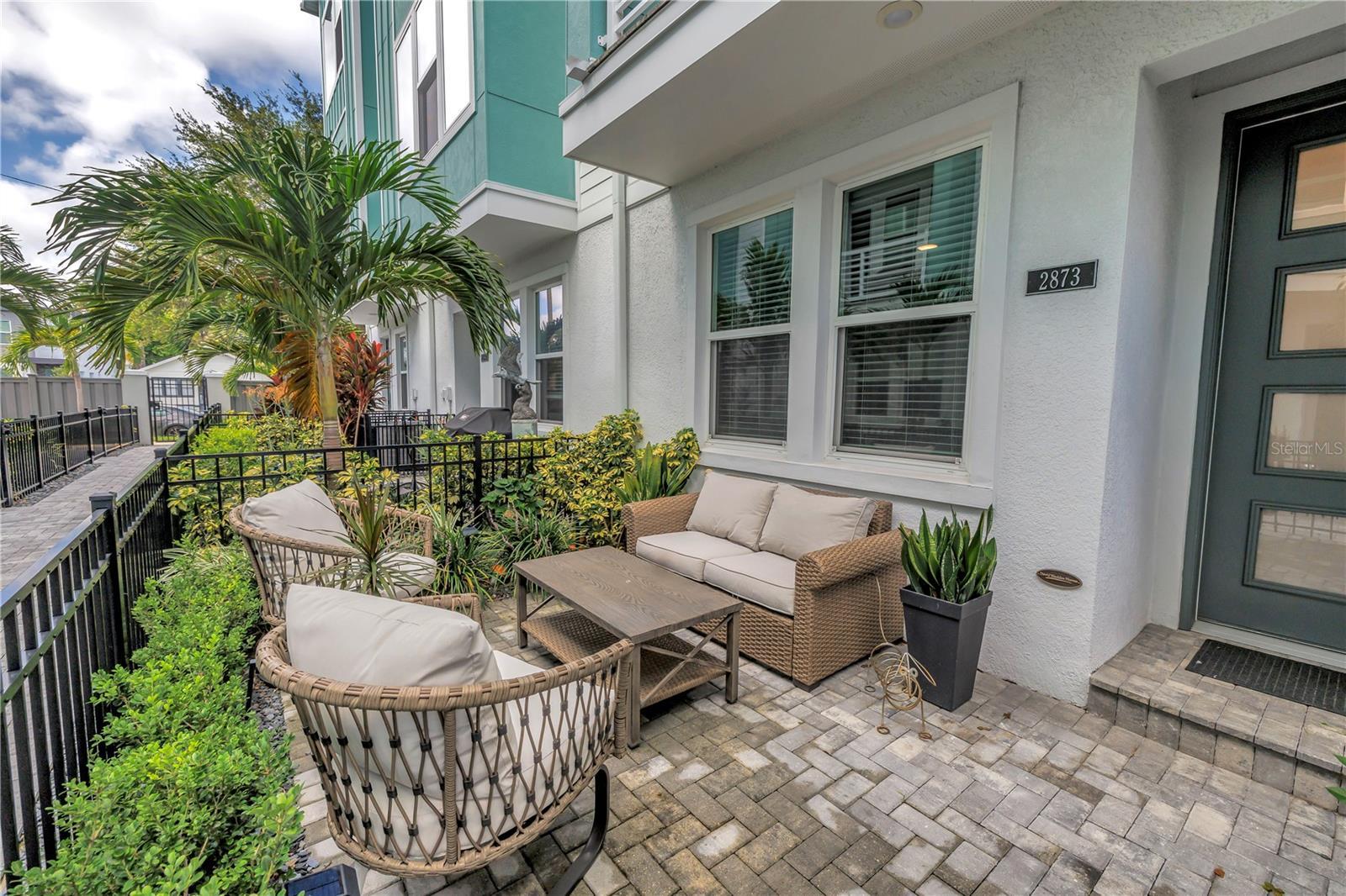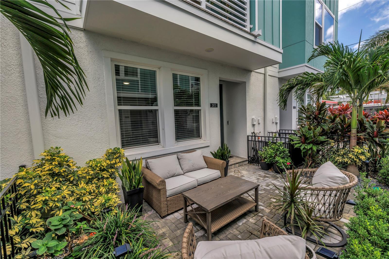 Experience Elevated Urban Living in the Heart of Grand Central! Welcome to this better-than-new 3-bedroom, 3.5-bathroom townhome located in the vibrant Grand Central District of St. Petersburg. Nestled within a gated community offering secure alley and courtyard access, this newer construction home delivers the true Florida lifestyle with a modern urban twist. Step inside to find a thoughtfully designed floor plan where each bedroom features its own private ensuite, offering comfort and privacy for family and guests alike. The main living area boasts an open-concept layout with a spacious kitchen, complete with an oversized island, pantry, and upgraded appliances. Entertain with ease in the connected dining and living areas, enhanced by a built-in dry bar and beverage fridge. A recently renovated powder bath with custom wallpaper and tile adds a touch of designer flair. Upstairs, the expansive primary suite includes a walk-in closet with custom built-in cabinetry and a spa-inspired ensuite bath. A second upstairs bedroom also includes its own ensuite, perfect for guests or a home office. Additional highlights include a 2-car attached garage equipped for your electric vehicle, high-end finishes throughout, and the convenience of low-maintenance townhome living — all just steps from the shops, dining, and culture of Grand Central and Downtown St. Pete. For the right offer, furnishings may also be included, making this an exceptional turnkey opportunity. Don’t miss your chance to own a stunning home that blends luxury, location, and lifestyle! Transferable builder warranty and AC warranty included.