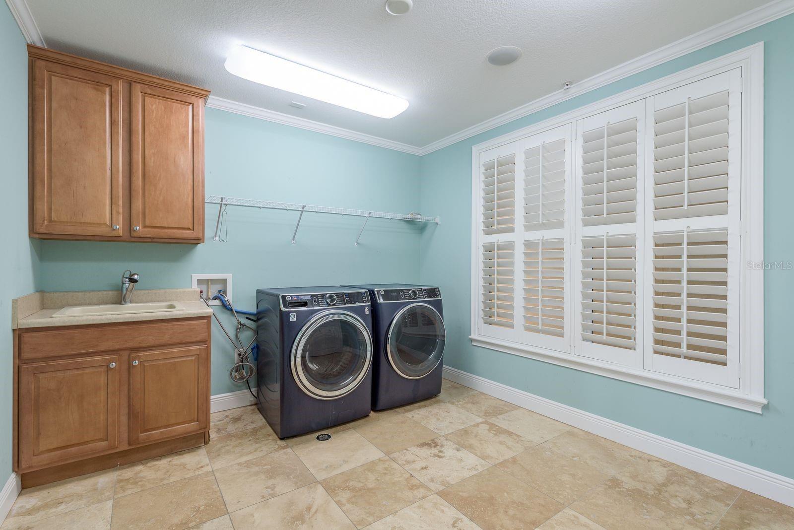 - Ceiling Fans(s), Central Vaccum, Crown Molding, High Ceilings, Open Floorplan, Primary Bedroom Main Floor, Solid Wood Cabinets, Stone Counters, Tray Ceiling(s), Walk-In Closet(s), Window Treatments