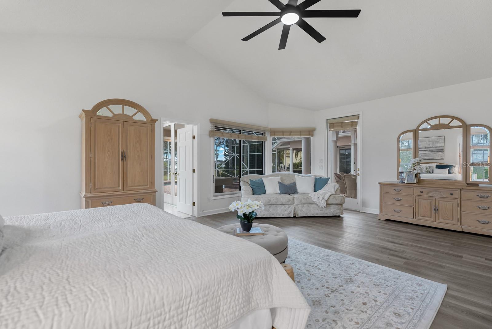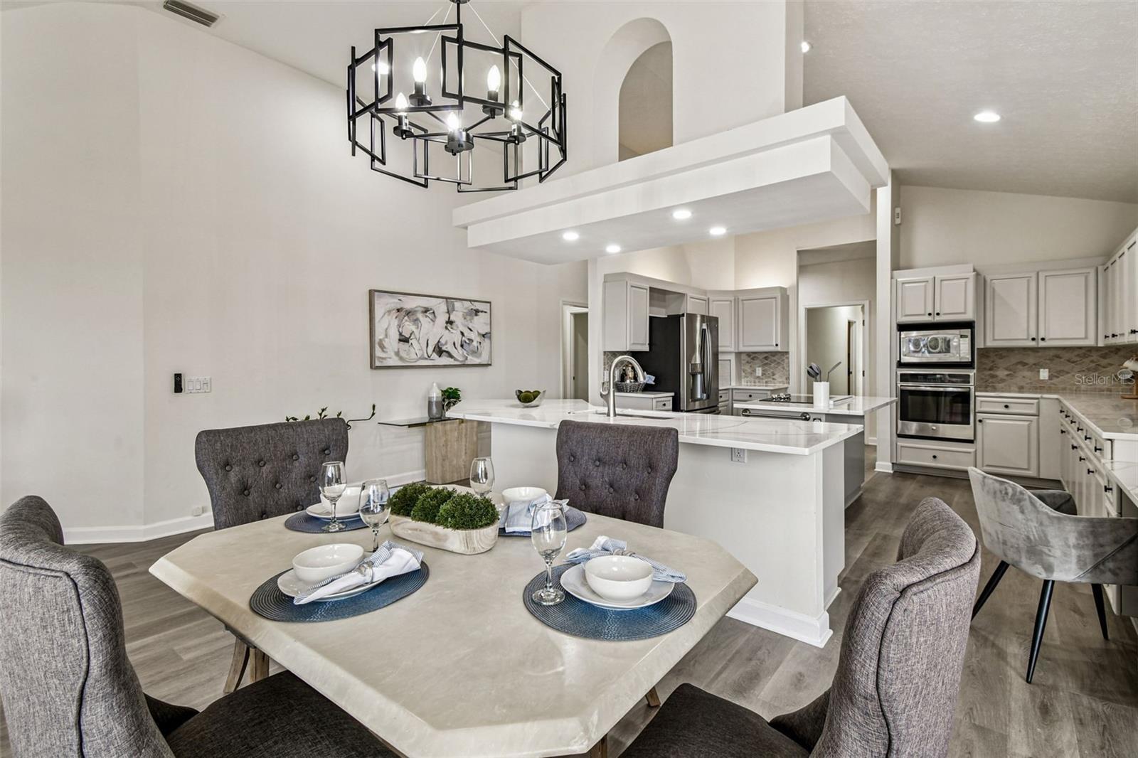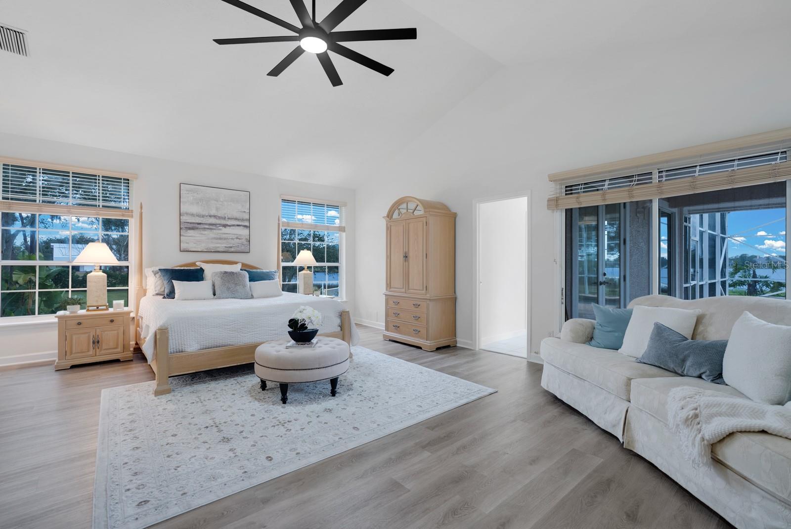 - Ceiling Fans(s), Eat-in Kitchen, High Ceilings, Primary Bedroom Main Floor, Vaulted Ceiling(s), Walk-In Closet(s), Wet Bar