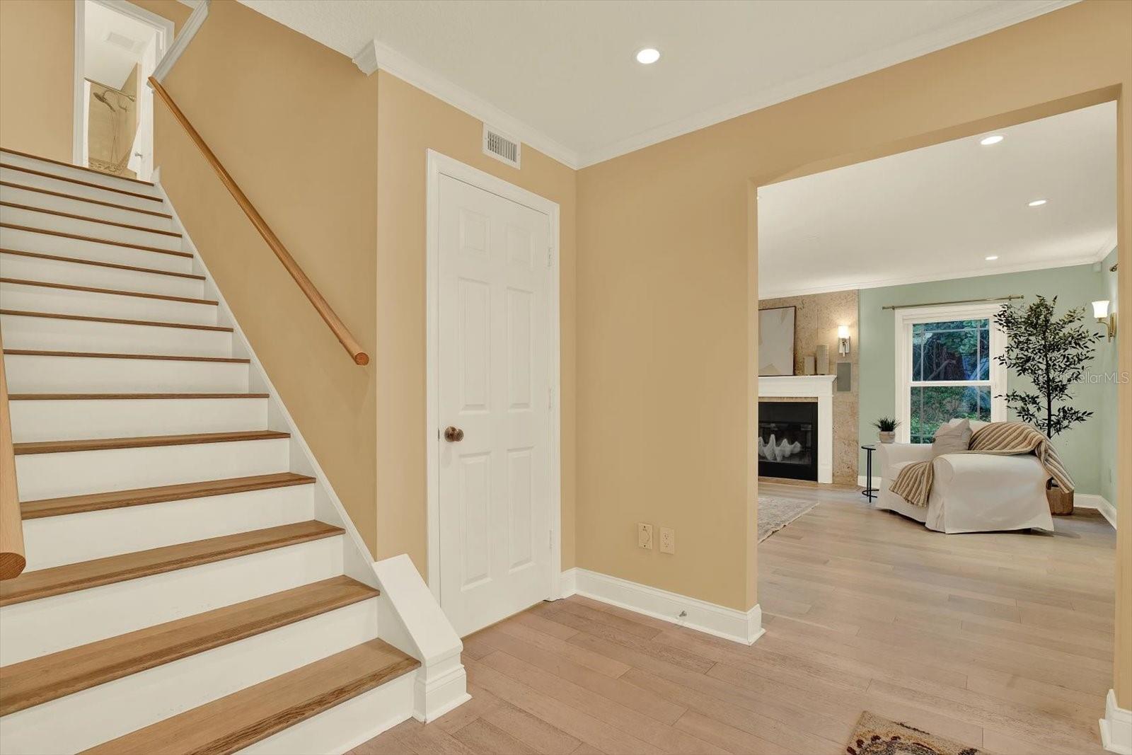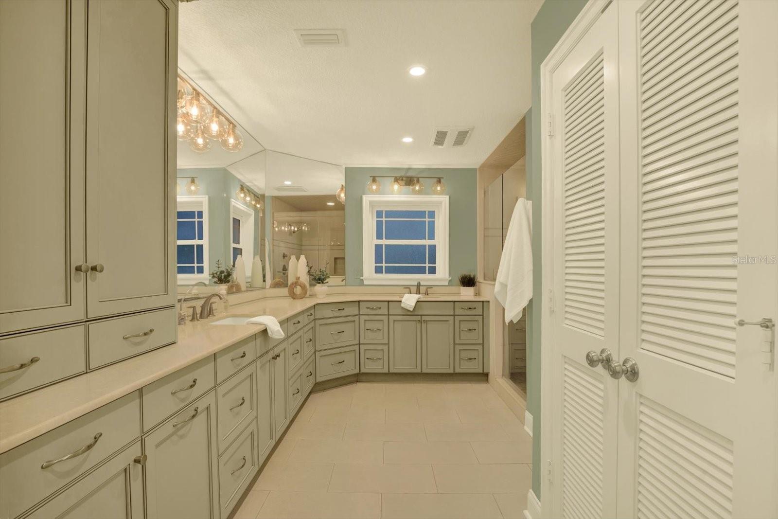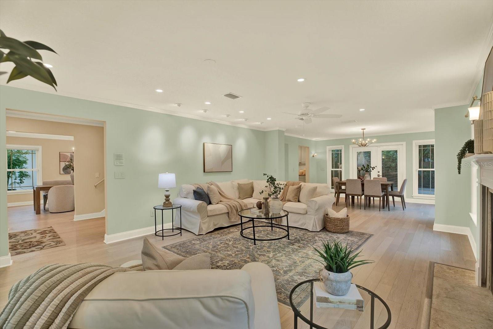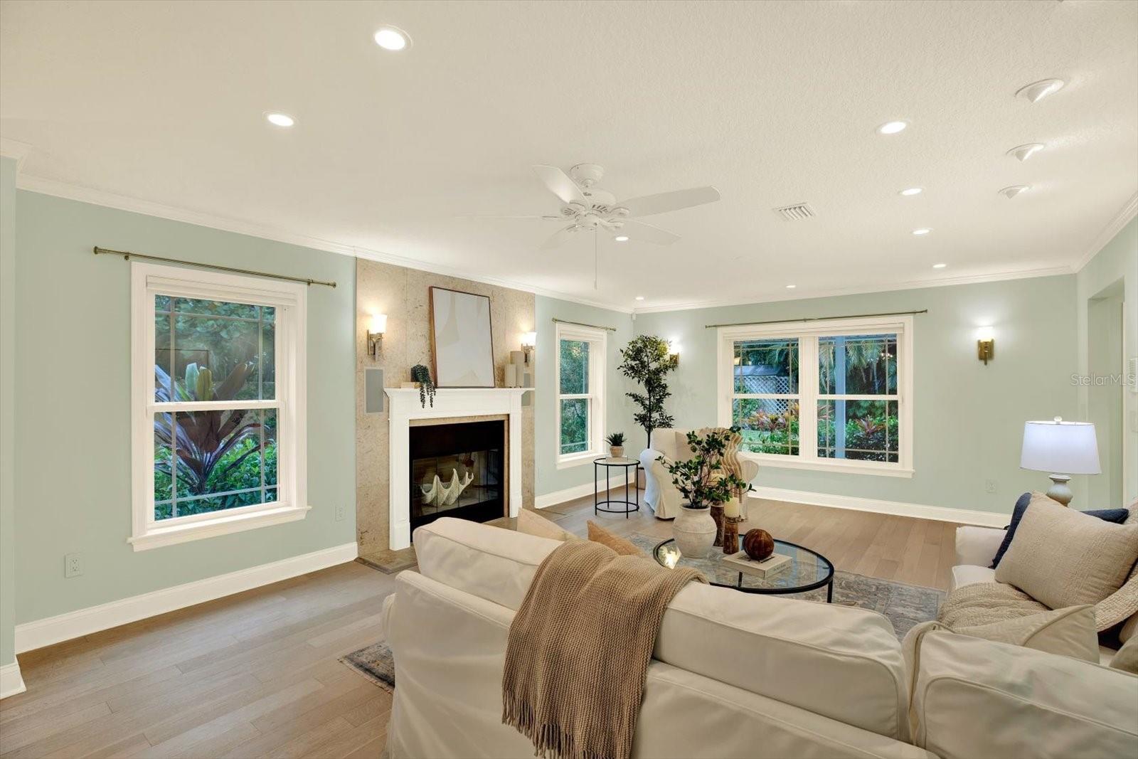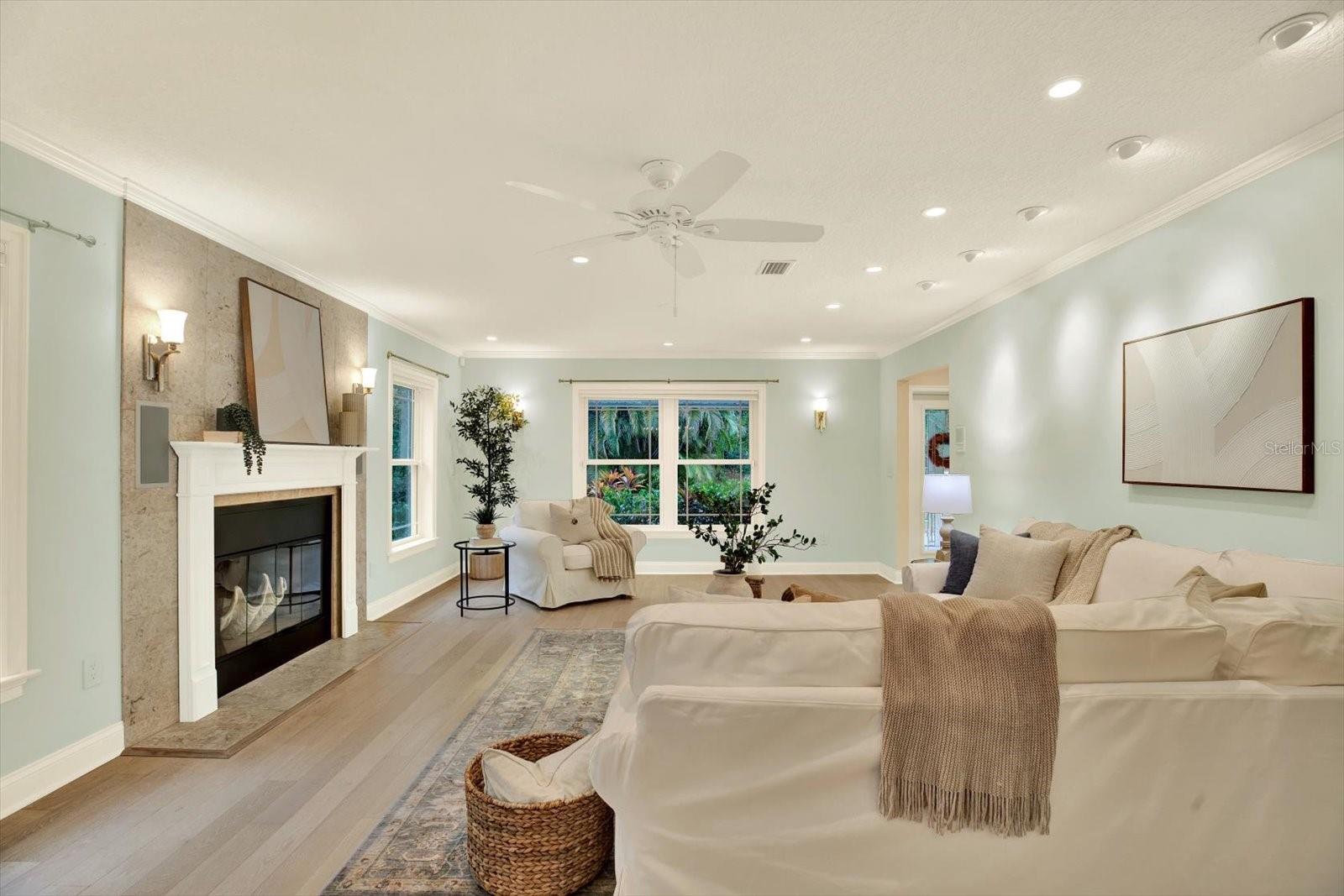 BEAUTIFULLY UPDATED BELLEAIR HOME ON A RARE, PRIVATE OVERSIZED DOUBLE LOT! Situated across from a peaceful neighborhood park, this 2,784 sq ft, 3BR / 2.5BA home combines timeless charm with thoughtful modern features, an oversized RV/boat garage and complete yard privacy behind a full perimeter wall. Spacious living areas feature hardwood floors, crown molding, and abundant natural light. The gourmet kitchen is a chef’s dream—offering a large granite island, gas cooktop with pot filler, double convection ovens, warming drawer, and pantry-style storage. A flexible MAIN-LEVEL BONUS ROOM is perfect for a home office, gym, or playroom. Upstairs, the expansive primary suite includes a WALK-IN CLOSET, built-in cabinetry, double-sink vanity, and en suite laundry. The 2nd floor also includes a 2nd bedroom with attached full bath with tub and a guest room with custom cabinetry that doubles as an office. Enjoy outdoor living in a beautifully landscaped setting with mature trees, butterfly garden, screened back porch, and stone patio—an ideal retreat for relaxing or entertaining. A rare find in Belleair, the OVERSIZED ATTACHED RV/BOAT GARAGE (40’ x 17’ with 14’ ceilings and 12’x12’ door) includes wall A/C, 300-amp service, built-in storage, and a workbench, offering unmatched versatility. ADDITIONAL HIGHLIGHTS INCLUDE HURRICANE-IMPACT WINDOWS, TWO BRAND-NEW HVAC SYSTEMS WITH TRANSFERABLE 10-YEAR WARRANTIES, REROOFED DURING MAJOR RENOVATION, SOLAR ATTIC FANS, GENERATOR HOOK-UP, AND A SECURITY SYSTEM. NO FLOOD INSURANCE REQUIRED and no pool to maintain. Just minutes from Belleair Country Club, beaches, shopping, and dining. This move-in-ready home delivers space, privacy, and exceptional value in one of Belleair’s most desirable areas!