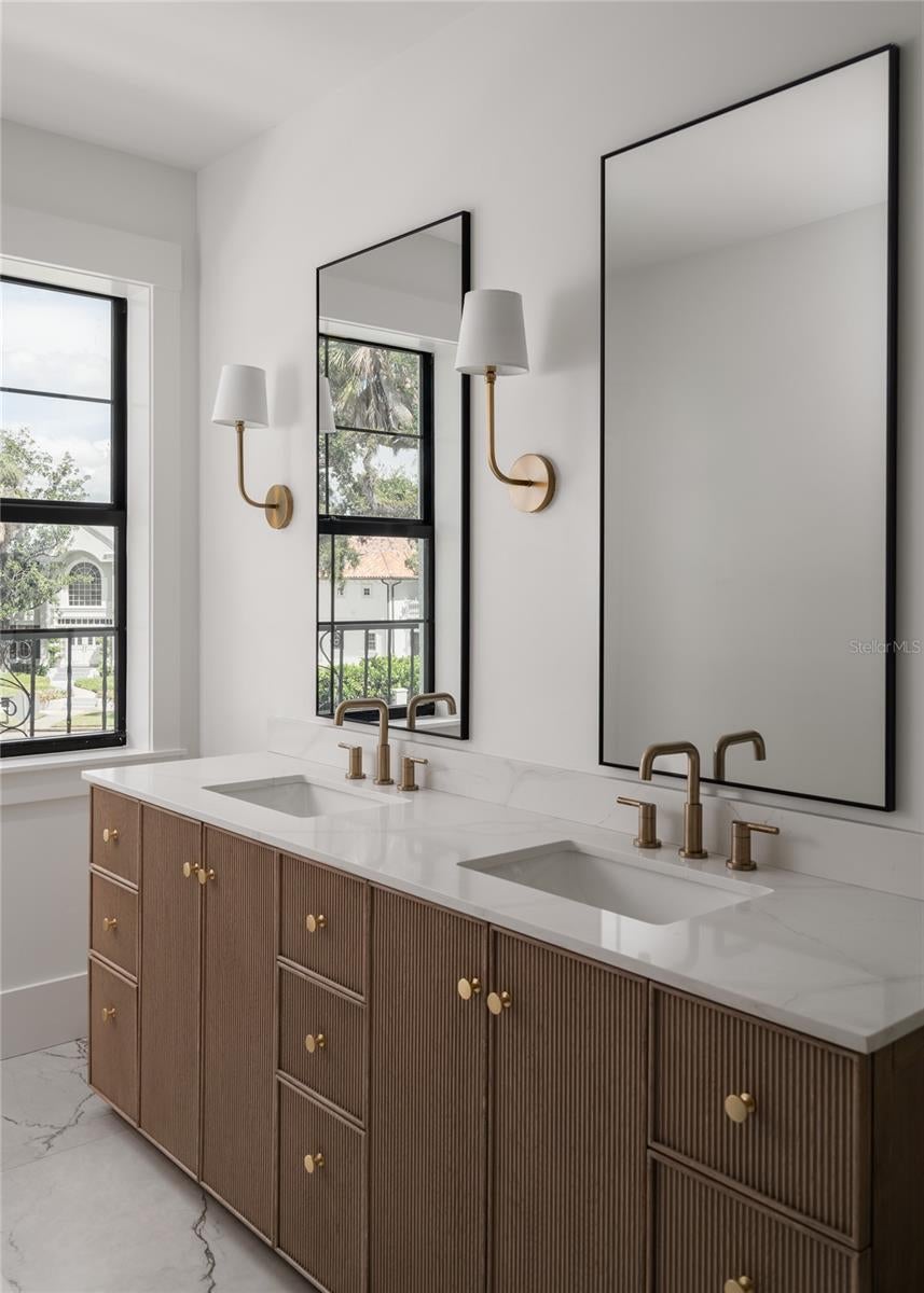 Step into a piece of Tampa history with this stunning original Beach Park Mediterranean estate, impeccably restored between 2023 and 2025 to fuse timeless charm with contemporary sophistication. This grand residence spans an expansive 6,398 square feet and boasts 7 spacious bedrooms, 9 exquisitely designed bathrooms, and a wealth of living spaces crafted for both daily comfort and lavish entertaining. The interior captivates with wide-plank white oak flooring flowing seamlessly throughout, complemented by custom white oak cabinetry and paneled appliances in the gourmet kitchen, where a hidden pantry adds a touch of sleek functionality. Entertain in style with two elegant dining rooms, a cozy den with its own wood burning fireplace, and a sprawling living room awash in natural light with a gas burning fireplace. For the wine enthusiast, a custom wine closet provides the perfect haven to store and showcase your collection. The first-floor primary suite offers a serene retreat with its own luxurious en-suite bath, find yourself greeted from head to toe by honed iceberg marble. While the second floor boasts an additional primary/guest suite, equally impressive with ample space for visitors or multi-generational living. Every one of the 7 bedrooms enjoys the luxury of a private en-suite bathroom, ensuring comfort and privacy for all. Organization meets opulence with California Closet systems installed in the bedroom closets, offering tailored storage solutions that maximize space and luxury. Convenience shines with laundry rooms thoughtfully placed on both floors of the home. Outside, a 2-car garage and single-car covered porte-cochère meet the circular roman paver driveway, adding practicality and a touch of grandeur. Located in one of the most established and coveted streets in Beach Park, don't miss your chance to live in this amazing neighborhood where you can walk the tree-lined streets and take in the pleasant waterfront views. This home is just moments from Tampa’s premier dining, shopping, and cultural destinations- also zoned for South Tampa's A-Rated school districts. A rare chance to own a fully restored historic masterpiece with every modern indulgence—schedule your private tour today! **Seller's are open to a lease purchase option. Property is listed for both purchase and lease.