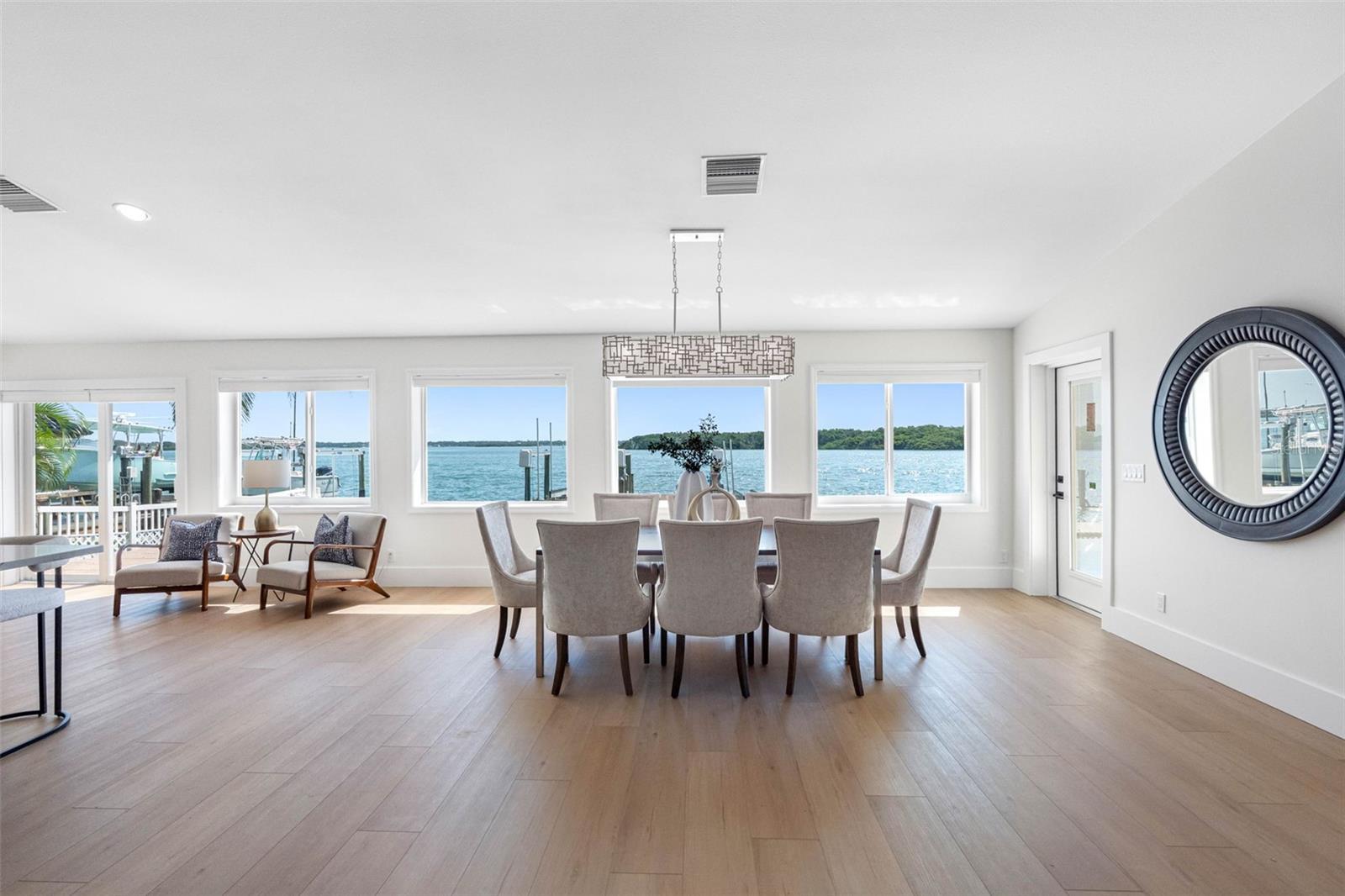 Imagine waking each morning to the shimmer of wide-open Intracoastal waters, sunlight pouring through hurricane-rated windows, and the scent of the salt air just steps from your door. A quick half-mile stroll or golf cart ride brings you to the sugar sands of the Gulf. This isn’t just a home—it’s the stage for a life beautifully lived. The moment your clients arrive, they’ll notice the thoughtful craftsmanship and effortless style. The lush, landscaped yard, nourished by a reclaimed water sprinkler system, frames a striking façade with multicolor lighted etched-glass double doors that light up. A brand-new roof (2025) crowns the home, and every detail has been reimagined: new LVP flooring, freshly painted interior walls, new baseboards, trim, and interior doors, plus pristine two-foot drywall replacement for a fresh, clean interior. Inside, the open living area flows toward the view, where water and sky become part of the décor. The gourmet kitchen is designed for both beauty and function—brand-new appliances, and a movable waterfall-edge coffee bar that invites morning conversation. A built-in wine bar with Eurocave fridge is ready for celebrations, while a Blair water system hookup for two tanks ensures the purest taste in every glass. The primary suite is a private retreat overlooking the resort-style saltwater pool and shimmering waterway. A spa-inspired en suite offers champagne gold fixtures, a rain head shower and handheld wand, a built-in vanity, and abundant storage. A mini-split keeps this sanctuary at the perfect temperature year-round. Bedroom two is oversized with a walk-in closet, while bedroom three features a hidden closet, ideal for valuables or a touch of whimsy. Step outside to your own paradise. The walk-in saltwater pool with tanning shelf has been acid washed, upgraded with a new pump and filter, and framed by pavers that have been reset and replaced. Remote-controlled blinds at the sliding glass doors open to reveal your private dock, equipped with two boat lifts—configurable for two jet skis and a boat or two boats—dock poles wrapped for longevity, and open-water views that make every sunset a showstopper! Behind the scenes, the home is as smart as it is beautiful: Ring doorbell, WiFi-enabled thermostat, oven, ceiling fan, and sprinkler system, plus updated electrical outlets, hose bibs on all four sides, a new heat pump (9/2024) with elevated installation, and an air handler neatly tucked into the garage attic. The garage itself is an organized dream with a coated floor, custom storage cabinets, a workbench, a water hookup for a refrigerator, and a WiFi-enabled opener. A tankless water heater provides endless hot water, while hurricane-rated doors and windows ensure peace of mind. This home isn’t just built for living—it’s built for loving. Morning coffee on the dock as dolphins glide by, afternoons spent floating in the pool or cruising the waterway, and evenings where the sun melts into the horizon and the world feels perfectly still. Every feature, every finish, every upgrade is a promise of ease, elegance, and joy. Here, every sunrise feels like a beginning, and every sunset feels like a celebration. This is where their next chapter begins. This is more than a home — it’s a lifestyle. Whether you're boating at sunset, lounging poolside, or strolling to the beach, every detail has been thoughtfully designed for ease, elegance, and unforgettable moments.