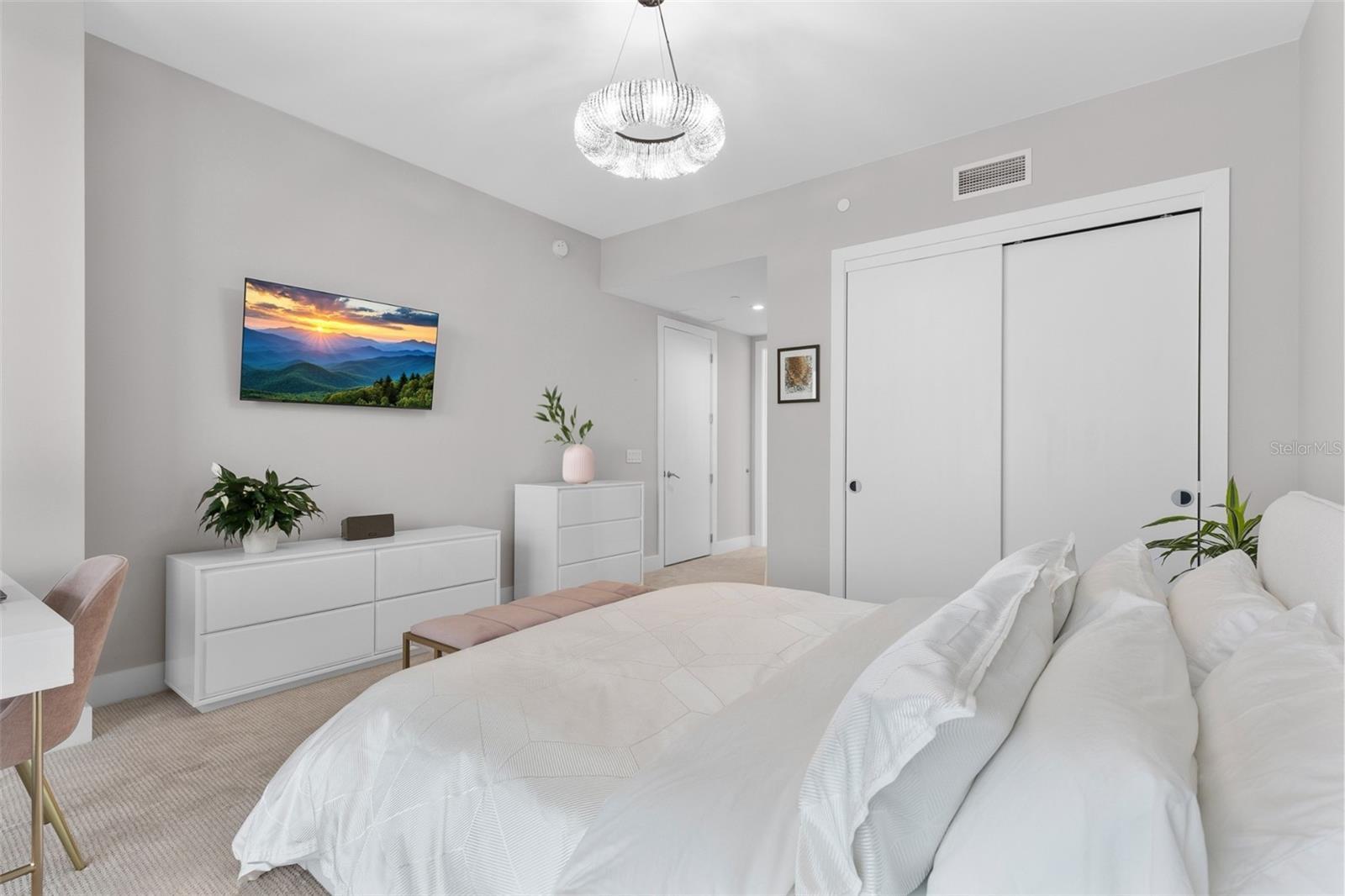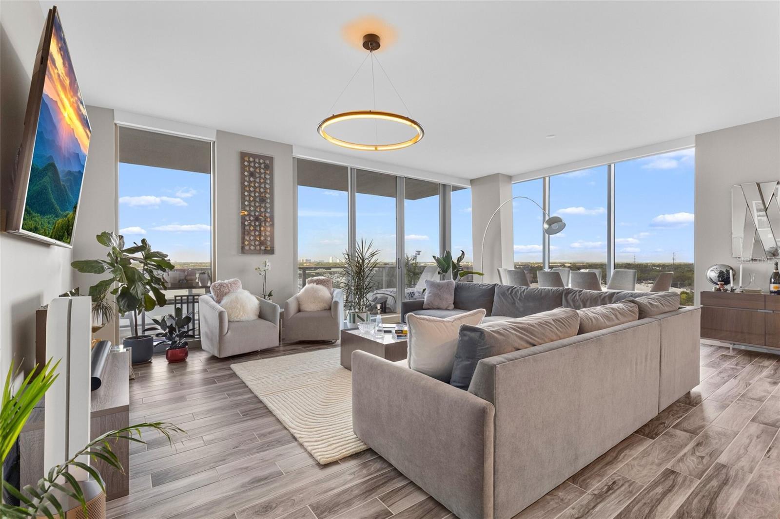 Welcome to your new waterfront retreat at Marina Pointe in Tampa’s lively Westshore Marina District. Sitting on the 9th floor, this home offers stunning views of Tampa Bay and the downtown skyline. As you step inside through your private elevator foyer, you'll find nearly 2,000 square feet of luxurious living space crafted for comfort and elegance. This spacious condo has 3 full bedrooms, 2.5 bathrooms, and a large living area perfect for relaxing or hosting friends and family. The modern kitchen boasts European-style soft-close cabinetry, high-end appliances, a large quartz island with a waterfall edge, which smoothly transitions into the living room. Floor-to-ceiling windows fill the space with abundant natural light and breathtaking sunsets, creating a warm and inviting atmosphere. Step out onto the large balcony from the living room and take in sweeping views of the Bay, the Marina, and downtown Tampa’s skyline. From the owner's suite, you can also access the terrace and enjoy water and downtown views that are exquisite at any time of day. The master suite is spacious, offering plenty of room for large decor. Additionally, there are two closets that have been customized to maximize organization. The master bathroom features double vanities, quartz countertops, and a luxury soaking tub in the sleek glass-enclosed shower. The two other bedrooms have plenty of space, floor-to-ceiling windows with amazing views, built-in closets that have also been customized, and share a Jack-and-Jill bath. Additional highlights include beautiful wood-look tile throughout the main living areas, soaring 10-foot ceilings, motorized window shades, a powder bath for your guests, and two assigned parking spaces. Marina Pointe features 24/7 onsite staff, a clubhouse, a virtual golf simulator, a business room, a private massage studio, a steam room, a state-of-the-art fitness center, an oversized resort-style pool, and a Jacuzzi overlooking Tampa Bay. Additional amenities include a gas grill area, bocce courts, a secure off-leash dog park, and more. Located just minutes from downtown Tampa, Tampa International Airport, St. Pete, and Florida’s beautiful beaches, this community offers both convenience and luxury. For boaters, there’s a deep-water marina with easy access to the bay. This community provides access to a lively scene of shops and dining within the Westshore Marina District. Don’t miss your opportunity to own an exceptional unit in one of the best buildings in Tampa. Schedule your showing today and make this dream condo yours!