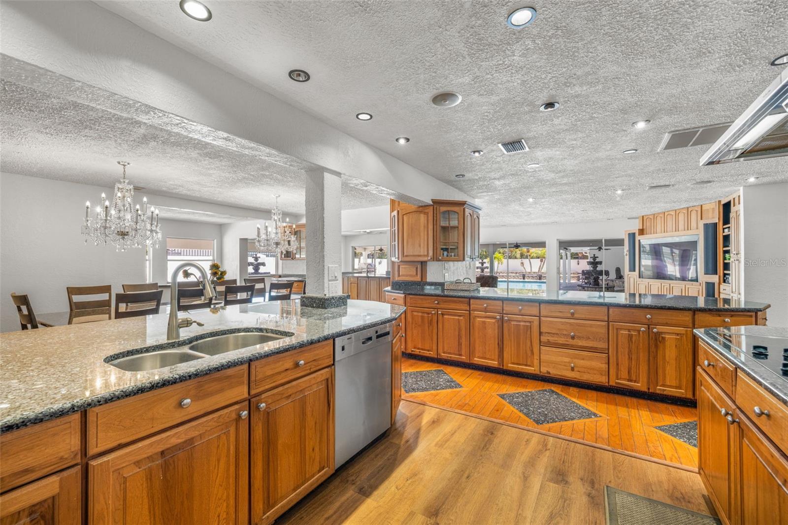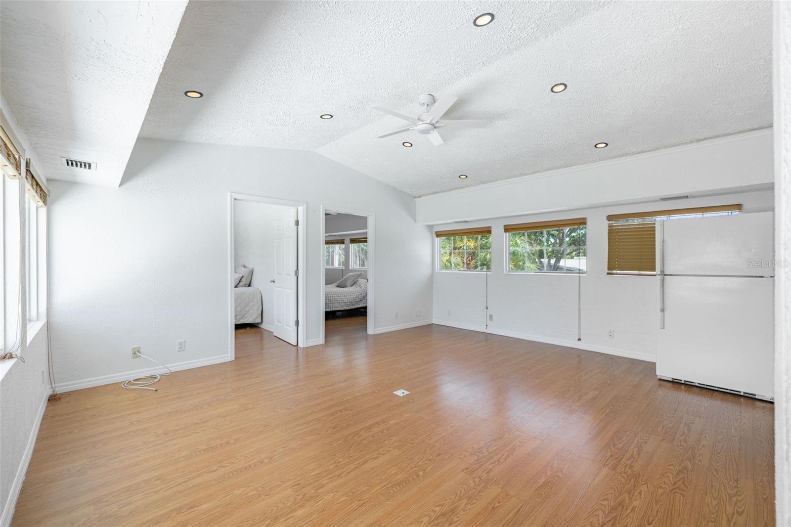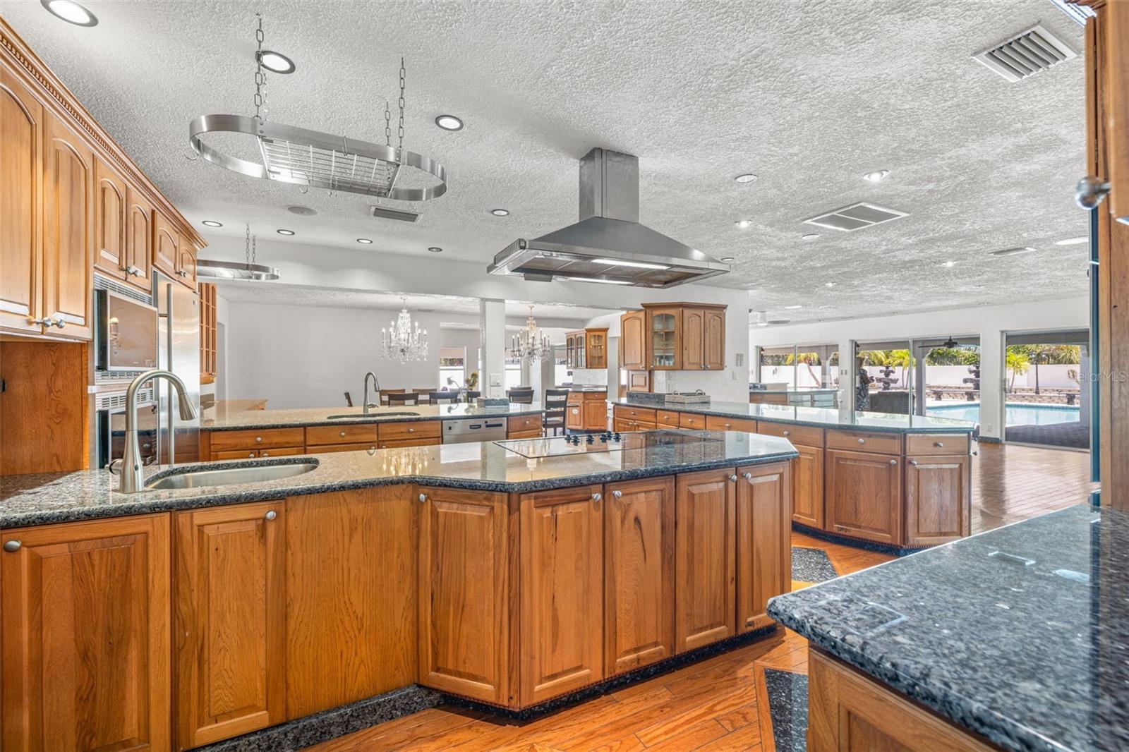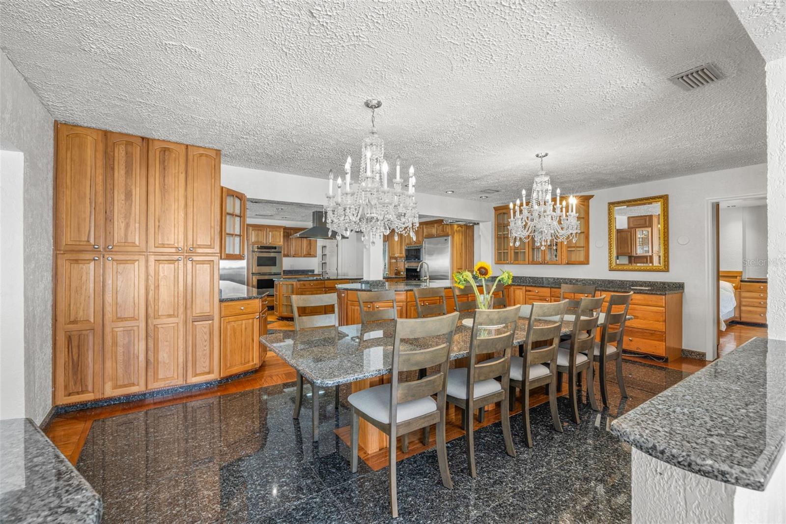 ELEVATED ABOVE THE STREET ON AN EXPANSIVE DOUBLE LOT! This freshly painted Tierra Verde residence offers stately curb appeal, generous scale, large private pool backyard, and outstanding potential. A paved driveway leads to the inviting porch with entry door and continues onto oversized garage and offers ample surface parking—perfect for showcasing a collection of vehicles. Step into the soaring foyer and discover a home thoughtfully designed for comfort, entertaining, and everyday lifestyle. To the left, a custom theater room seats up to eight. To the right, a private office with built-in closet space and substantial desk easily converts to a fifth bedroom. The open-concept living and family room centers around a stylish wet bar and media wall, flowing seamlessly into a chef-inspired kitchen. Outfitted with dual high-end refrigerators, two dishwashers, a large electric cooktop with chef’s rack, dual sinks, granite countertops, and extensive cabinetry, current dining table seats 12, this kitchen is enormous, functional and impressive. A wall of sliders ready to entertain open to a fully fenced, completely private backyard oasis featuring a sparkling pool, shaded lounging areas, ambient lighting, and an outdoor kitchen. Low-maintenance landscaping front and back allows effortless enjoyment of the lush island surroundings. The conveniently located main-level primary suite features custom built-ins, a walk-in closet, and a spa-style bath with Jacuzzi tub, walk-in shower, and smart commode. A guest bedroom and the convertible office complete the downstairs with a nearby half bath. Upstairs, two spacious guest bedrooms are connected by a loft—ideal as a media space, playroom, or kitchenette—along with a stylish full bath and a large walk-in closet/bonus room. The oversized garage is a standout, offering premium red-and-black craftsman cabinetry, utility sink, ceiling beam for lifting equipment, and space for up to five vehicles. With direct access to the side and rear yard, it’s a dream setup for car collectors or hands-on enthusiasts. With its exceptional privacy, flexible layout, zero hurricane or flood damage, and generous footprint, this residence offers rare value and opportunity in one of Tierra Verde’s most sought-after island communities—ready for a personalized touch to bring it to its full potential. Roof 2023. Located 10 mins from downtown St Pete, 30 mins to TPA, 10 mins to Ft DeSoto Park & Beaches