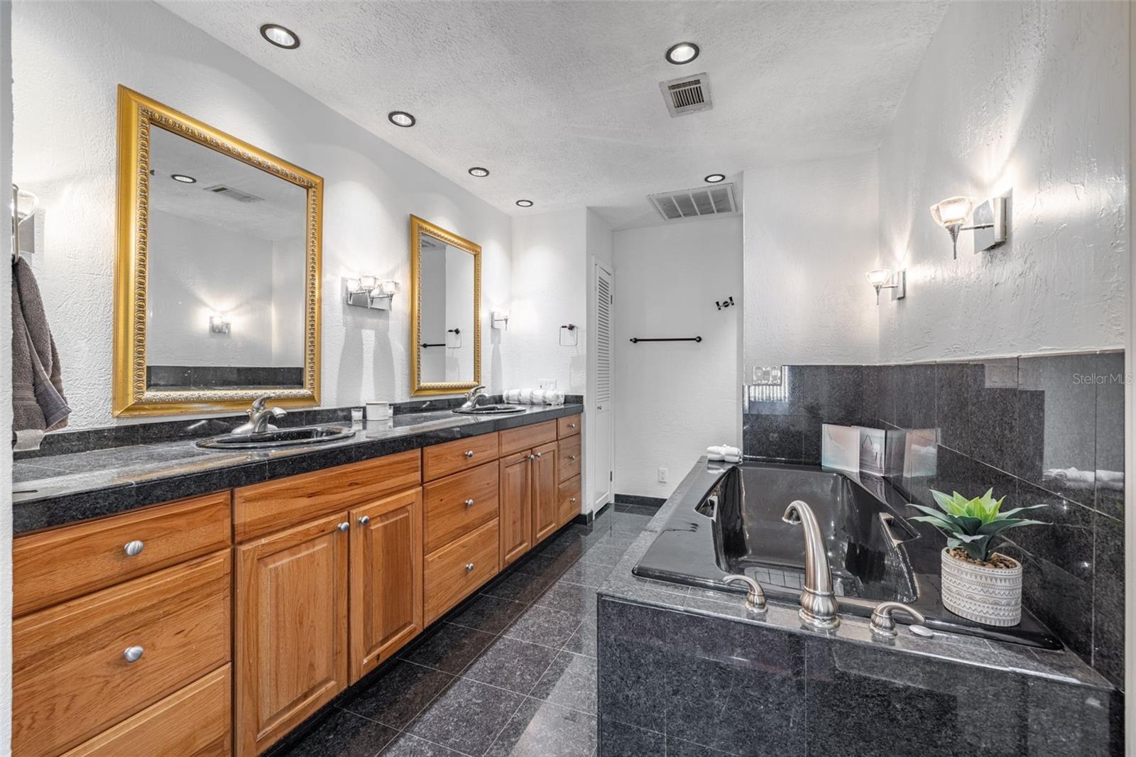 - Ceiling Fans(s), Primary Bedroom Main Floor, Solid Wood Cabinets, Split Bedroom, Stone Counters