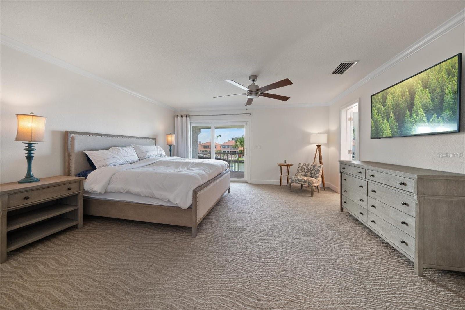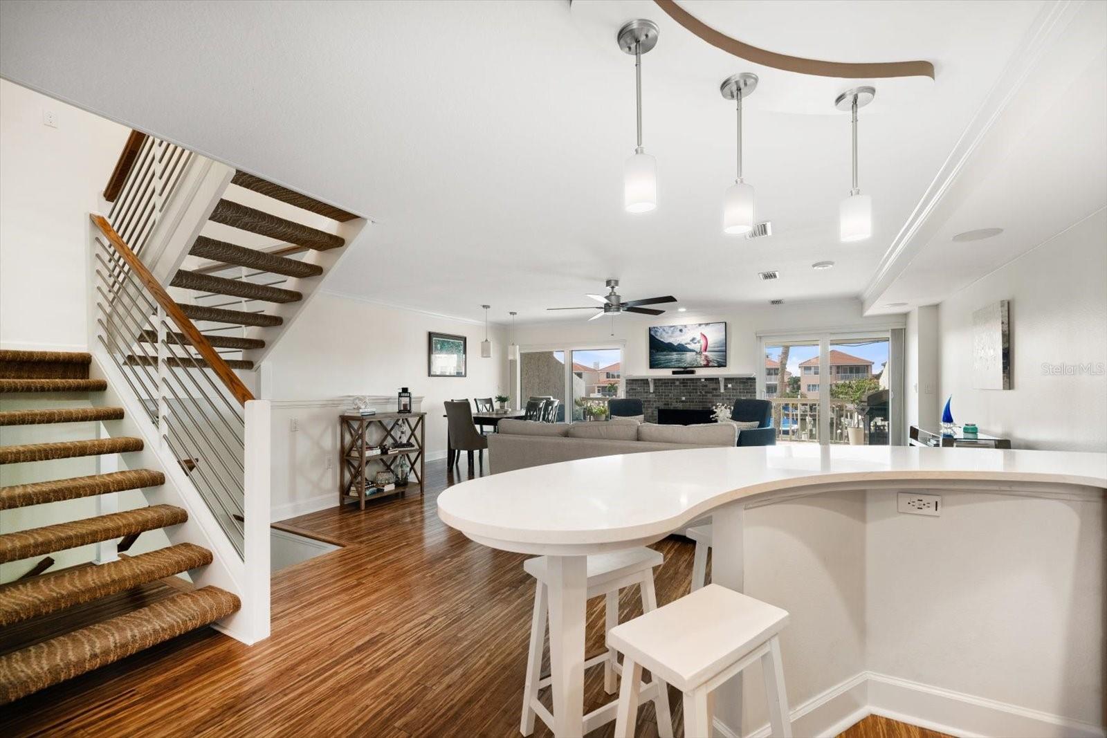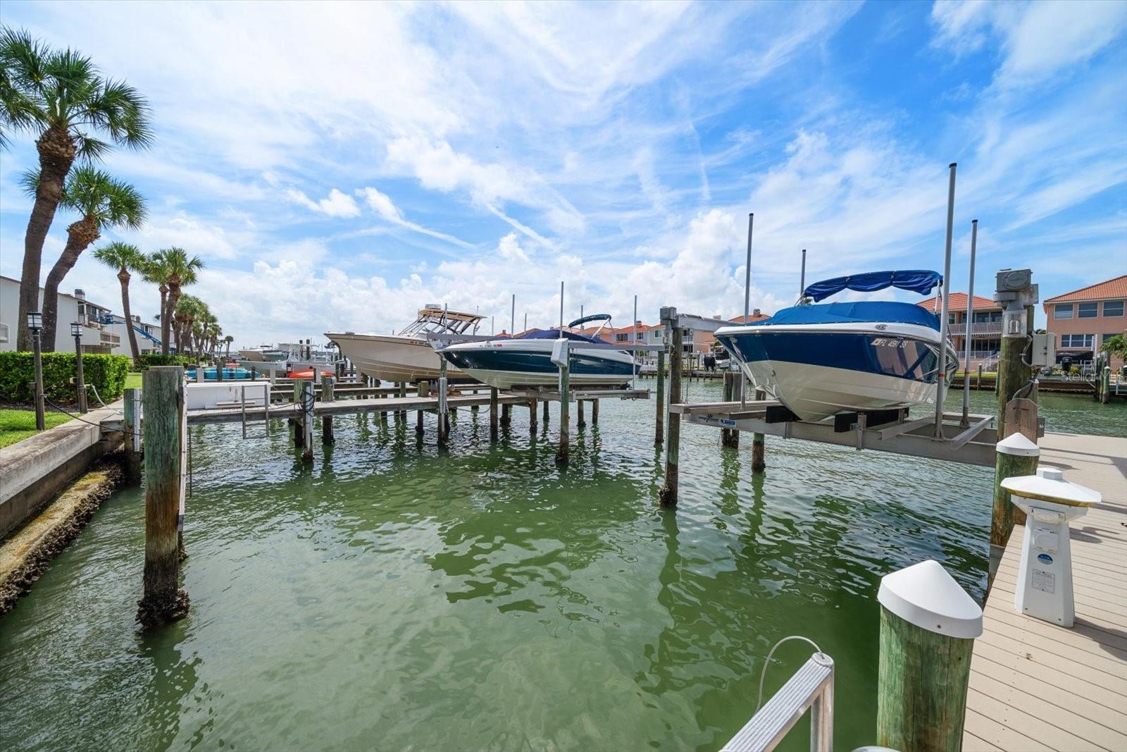 Located just south of Clearwater Beach on scenic Sand Key, this exquisite townhome in Marina del Rey blends coastal elegance with functional design and modern upgrades. Positioned along protected deep-water harborage, the property offers exceptional boating access and year-round sun exposure on its desirable south side. The main living floor features an expansive great room filled with natural light, an office or guest bedroom with a half bath, and an expertly customized kitchen designed for entertaining, featuring Cambria quartz countertops, a semi-circular breakfast bar, a separate island, detailed cabinetry, and a wine refrigerator, which contribute to a high-end culinary experience. From the main balcony—fitted with an electronically operated sunshade—residents can enjoy tranquil Intracoastal views. Upstairs, the spacious primary suite includes a private balcony, a large walk-in closet, and a luxurious en-suite bath complete with a jetted tub, walk-in shower, and dual vanities. An additional guest bedroom with an en-suite bath and a full laundry room completes this level. The ground floor offers a flexible bonus space with its own private entry, ideal for use as an office, fitness studio, or a fourth bedroom. This level also includes an en-suite full bath with a steam shower, offering both comfort and versatility. Other attractive finishes include crown molding, a fresh palette of modern, brighter paint colors throughout the interior, and bamboo flooring that flows seamlessly throughout several areas of the home. A private dock—just steps from the ground-level bonus room—features a 20,000 lb boat lift, composite decking, water, and electric service.. This pet-friendly townhome community offers a stellar location—steps from the heated pool and private beach access, and minutes from shopping, dining, and all the amenities of Clearwater Beach. Perfect as a primary residence or a low-maintenance second home, this Marina del Rey property delivers the best of boating, beach, and upscale coastal living in one beautifully updated package.