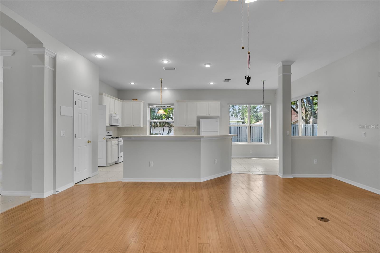 - Ceiling Fans(s), Crown Molding, Eat-in Kitchen, High Ceilings, Kitchen/Family Room Combo, Thermostat, Walk-In Closet(s)