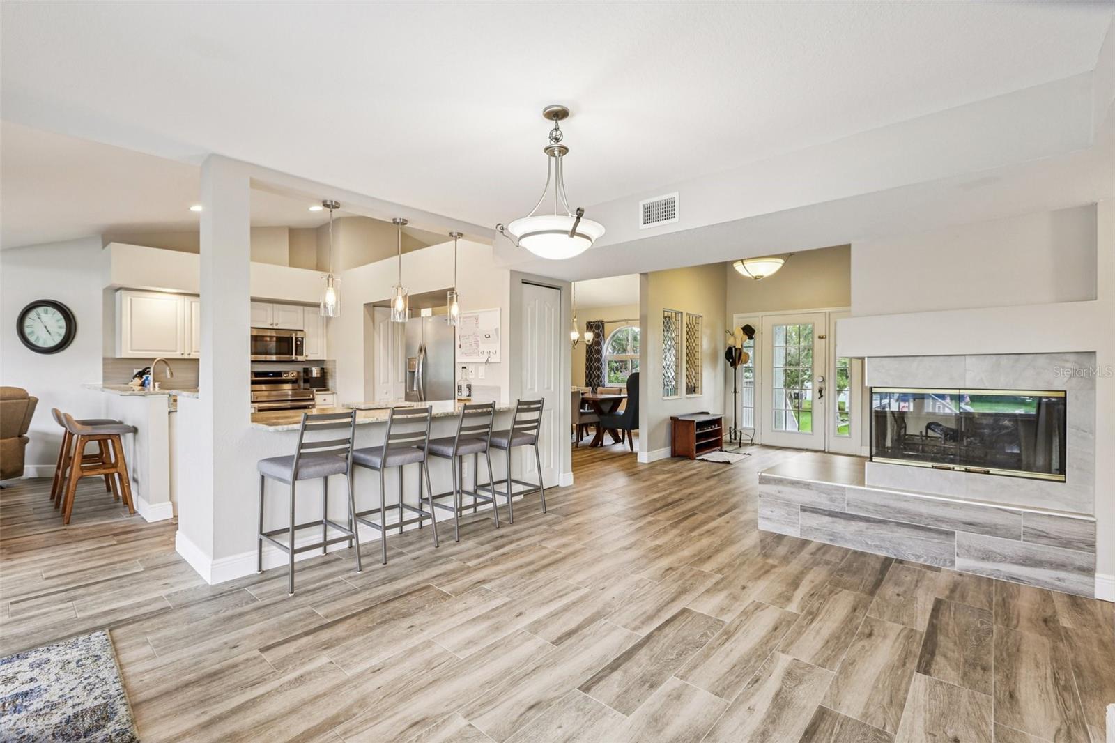 - High Ceilings, Kitchen/Family Room Combo, Open Floorplan, Stone Counters, Walk-In Closet(s)