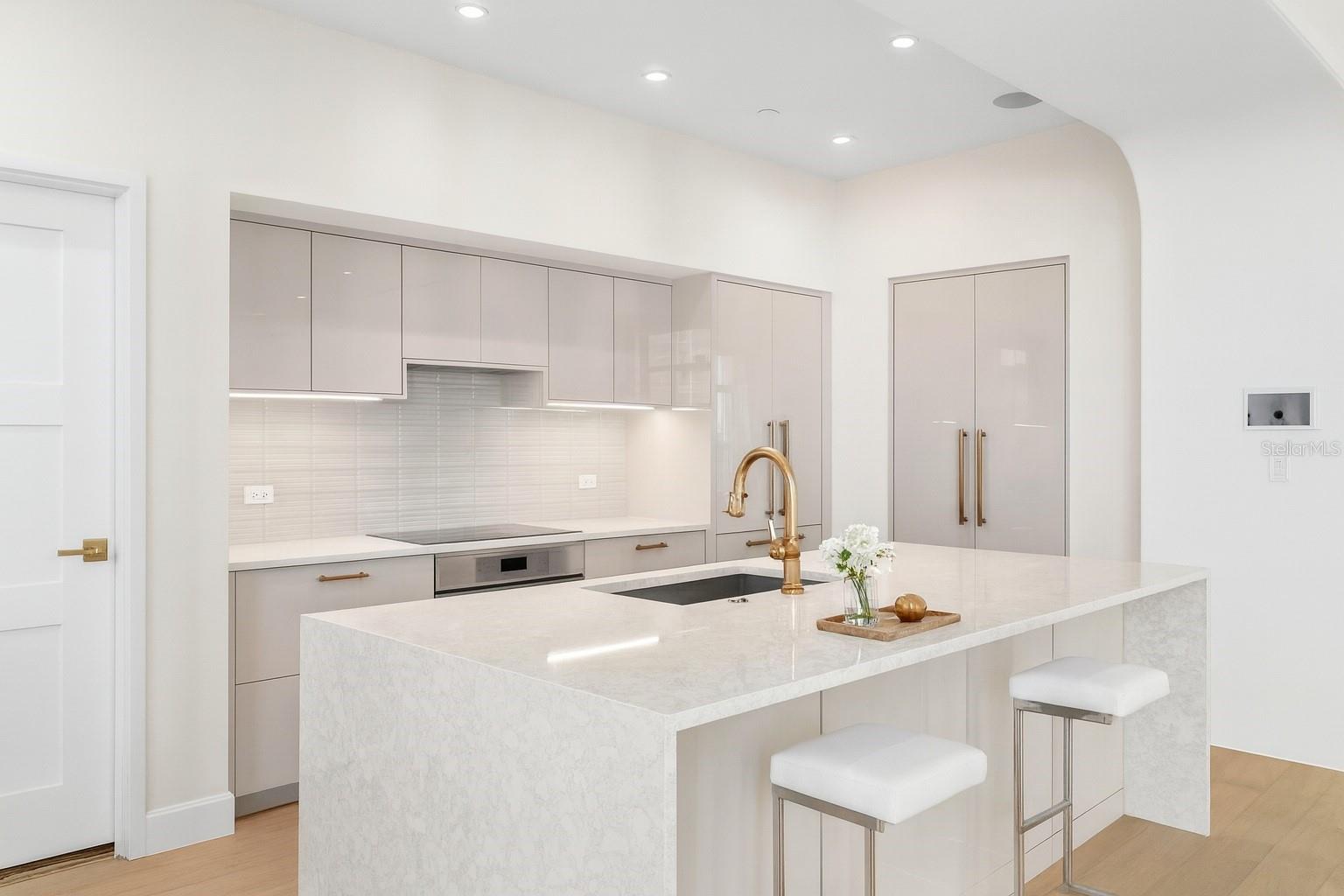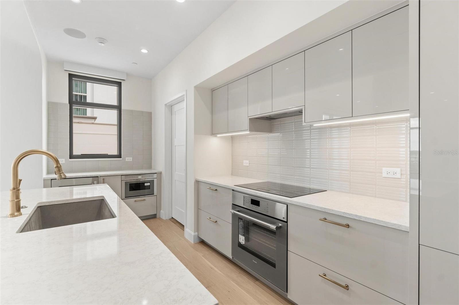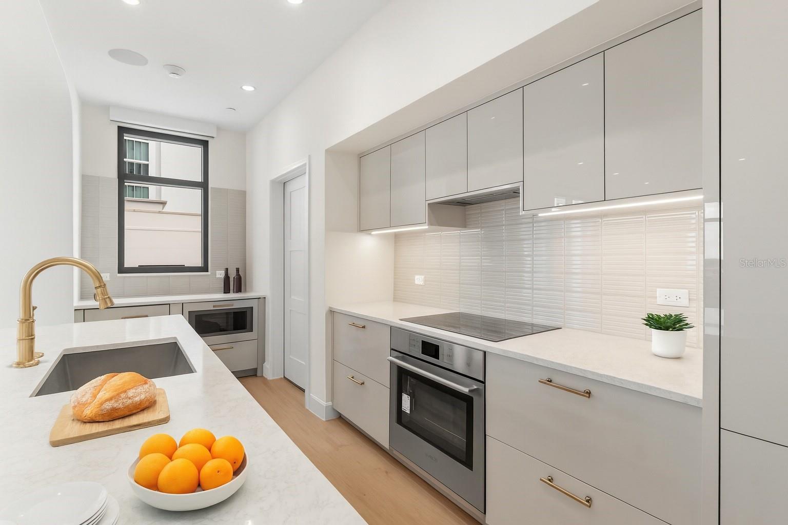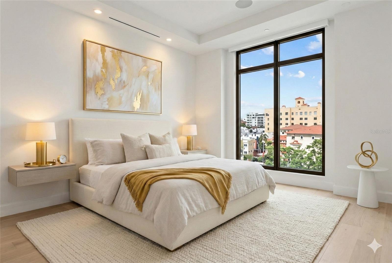 One or more photo(s) has been virtually staged. Experience refined contemporary living at The Nolen, an exclusive 23-story boutique condominium in downtown St. Petersburg, offering only 31 private residences. This brand-new, north-facing residence features 3 bedrooms and 3 bathrooms across 2,156 square feet of thoughtfully designed, contemporary living space. A private elevator opens directly into your own dedicated foyer, leading to a stunning corner residence with no shared walls and expansive floor-to-ceiling, impact-rated, energy-efficient windows that frame both city and water views, including the historic Old Northeast, the Vinoy, and the shimmering expanse of Tampa Bay. The Nolen introduces a new level of luxury, functionality, and sustainability. As an NGBS-certified green building, it features a comprehensive whole-building generator providing emergency power to all residences and an integrated water softening system throughout. Inside the home, you’ll find 10-foot ceilings, LED lighting, solid core doors, gold-toned hardware, laundry room with full-size Electrolux washer/dryer with utility sink and cabinetry, and engineered hardwood floors in the main living areas and porcelain tile in all bathrooms. This residence includes nearly $100,000 in upgrades with Haven Smart prewiring for A/V automation, lighting control, security, audio, and WiFi access points, along with sleek, high-end Lutron Mirage automated shades (both blackout and light-filtering). The advanced wiring infrastructure includes 1x shielded Cat-6, 2x Cat-6, 2x RG6, and additional connections tailored to specific zones. The chef-inspired kitchen boasts cabinet-paneled Thermador appliances, an induction cooktop, under-counter wine fridge, Cambria quartz waterfall island, and a granite farmhouse sink. The serene owner’s suite features a spa-like bathroom with a freestanding soaking tub, oversized walk-in shower, Brizo fixtures, TOTO toilets, and a striking designer tile feature wall. Step outside to the 38-foot-long private terrace, extending from the living area to the primary suite—perfectly positioned for enjoying both city and sunset views. Residents enjoy access to a beautifully designed 4th-floor amenities level, which includes a club room, state-of-the-art fitness center, saltwater pool and spa, shaded cabanas, outdoor kitchen and BBQ area, and cozy fire pit lounges. With concierge service, a dedicated on-site property manager, and a truly all-inclusive offering—everything described is included with no upgrade charges—The Nolen provides an elevated, maintenance-free lifestyle. Additional features include two assigned parking spaces, both pre-wired for EV charging, and a large climate-controlled private storage room directly in front of one space—an absolute rarity and true luxury in downtown St. Petersburg. Perfectly positioned for walkable access to St. Pete’s acclaimed Beach Drive, restaurants, galleries, museums, parks, and waterfront attractions, The Nolen is where modern luxury meets timeless charm.