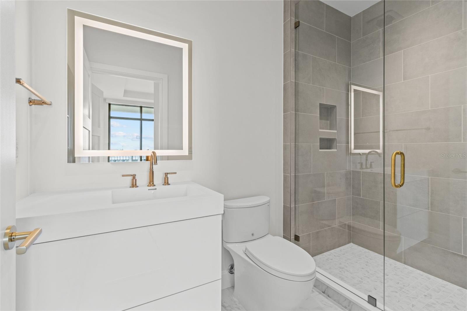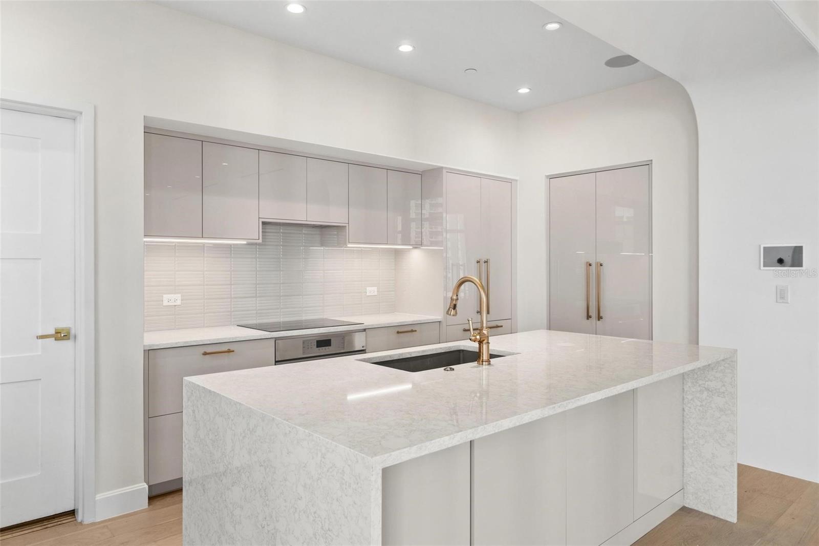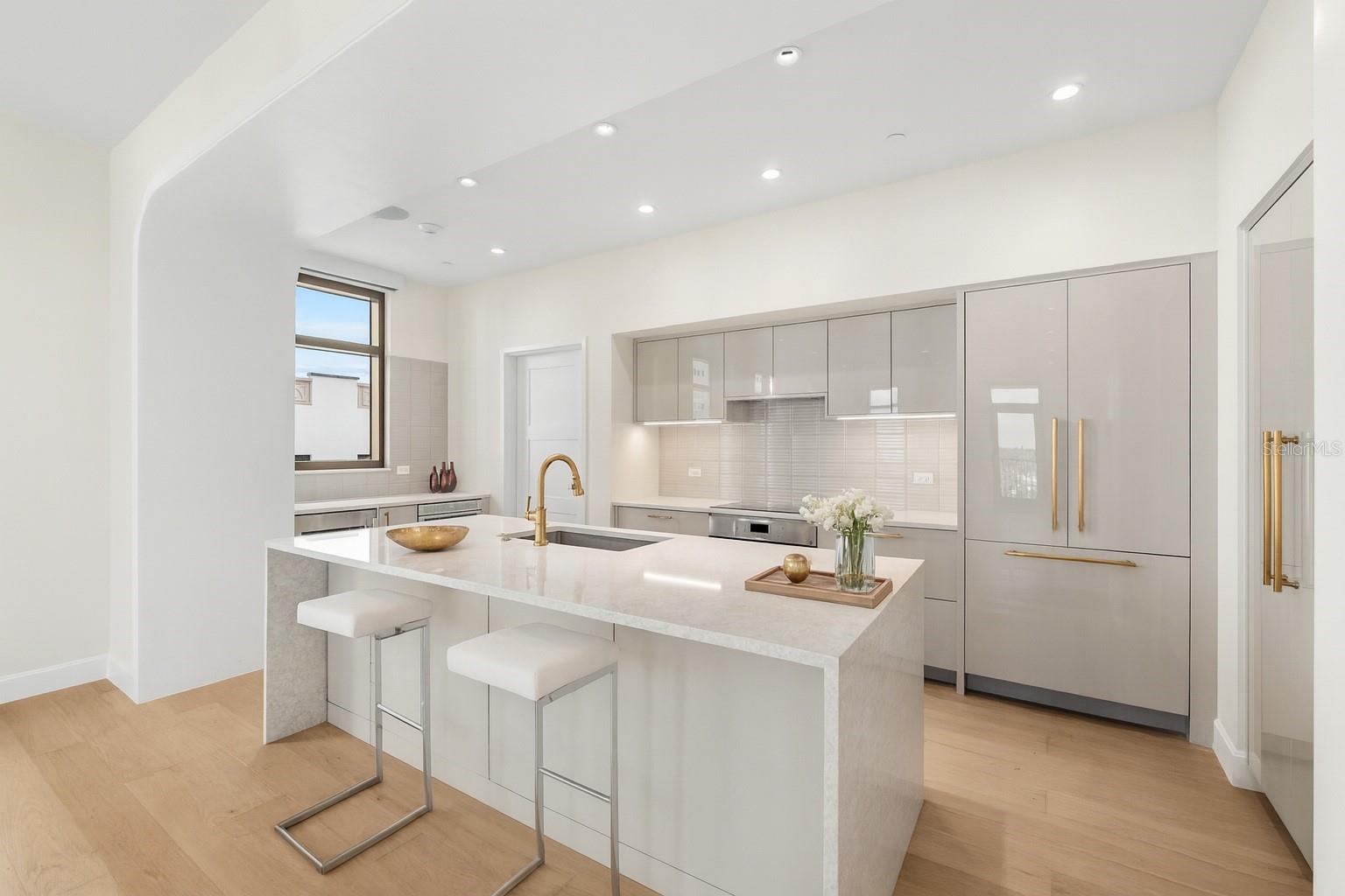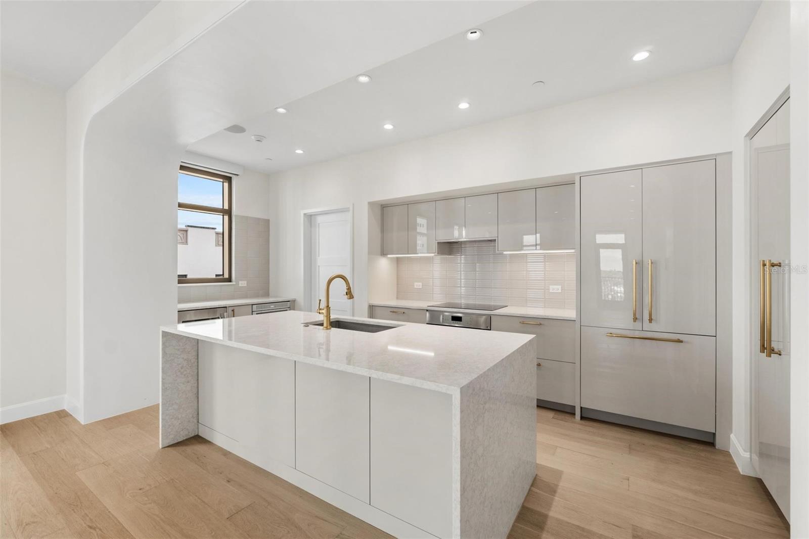 One or more photo(s) has been virtually staged. Experience refined contemporary living at The Nolen, an exclusive 23-story boutique condominium in downtown St. Petersburg, offering only 31 private residences. This brand-new, north-facing residence features 3 bedrooms and 3 bathrooms across 2,156 square feet of thoughtfully designed, contemporary living space. A private elevator opens directly into your own dedicated foyer, leading to a stunning corner residence with no shared walls and expansive floor-to-ceiling, impact-rated, energy-efficient windows that frame both city and water views, including the historic Old Northeast, the Vinoy, and the shimmering expanse of Tampa Bay. The Nolen introduces a new level of luxury, functionality, and sustainability. As an NGBS-certified green building, it features a comprehensive whole-building generator providing emergency power to all residences and an integrated water softening system throughout. Inside the home, you’ll find 10-foot ceilings, LED lighting, solid core doors, gold-toned hardware, laundry room with full-size Electrolux washer/dryer with utility sink and cabinetry, and engineered hardwood floors in the main living areas and porcelain tile in all bathrooms. This residence includes nearly $100,000 in upgrades with Haven Smart prewiring for A/V automation, lighting control, security, audio, and WiFi access points, along with sleek, high-end Lutron Mirage automated shades (both blackout and light-filtering). The advanced wiring infrastructure includes 1x shielded Cat-6, 2x Cat-6, 2x RG6, and additional connections tailored to specific zones. The chef-inspired kitchen boasts cabinet-paneled Thermador appliances, an induction cooktop, under-counter wine fridge, Cambria quartz waterfall island, and a granite farmhouse sink. The serene owner’s suite features a spa-like bathroom with a freestanding soaking tub, oversized walk-in shower, Brizo fixtures, TOTO toilets, and a striking designer tile feature wall. Step outside to the 38-foot-long private terrace, extending from the living area to the primary suite—perfectly positioned for enjoying both city and sunset views. Residents enjoy access to a beautifully designed 4th-floor amenities level, which includes a club room, state-of-the-art fitness center, saltwater pool and spa, shaded cabanas, outdoor kitchen and BBQ area, and cozy fire pit lounges. With concierge service, a dedicated on-site property manager, and a truly all-inclusive offering—everything described is included with no upgrade charges—The Nolen provides an elevated, maintenance-free lifestyle. Additional features include two assigned parking spaces, both pre-wired for EV charging, and a large climate-controlled private storage room directly in front of one space—an absolute rarity and true luxury in downtown St. Petersburg. Perfectly positioned for walkable access to St. Pete’s acclaimed Beach Drive, restaurants, galleries, museums, parks, and waterfront attractions, The Nolen is where modern luxury meets timeless charm.