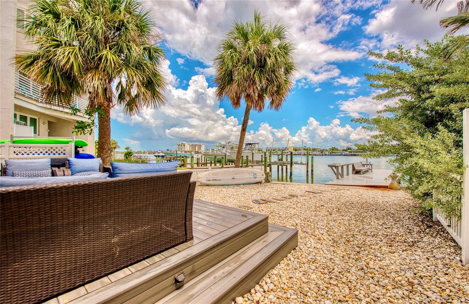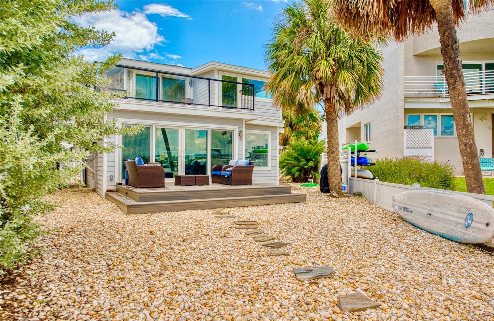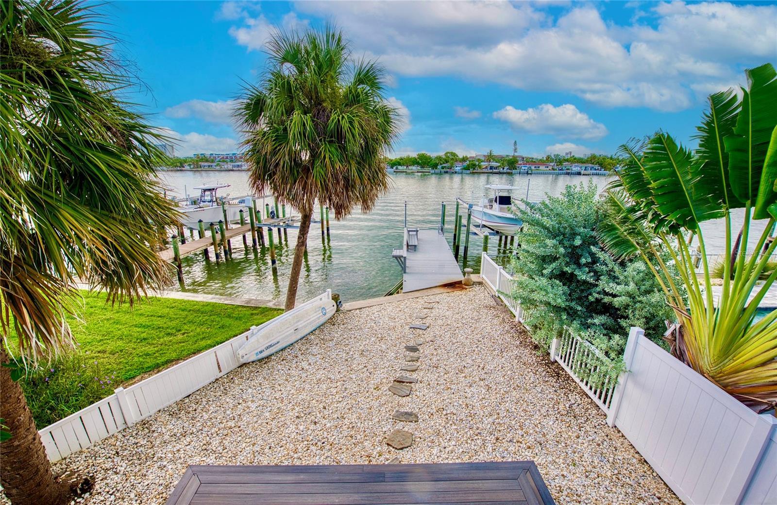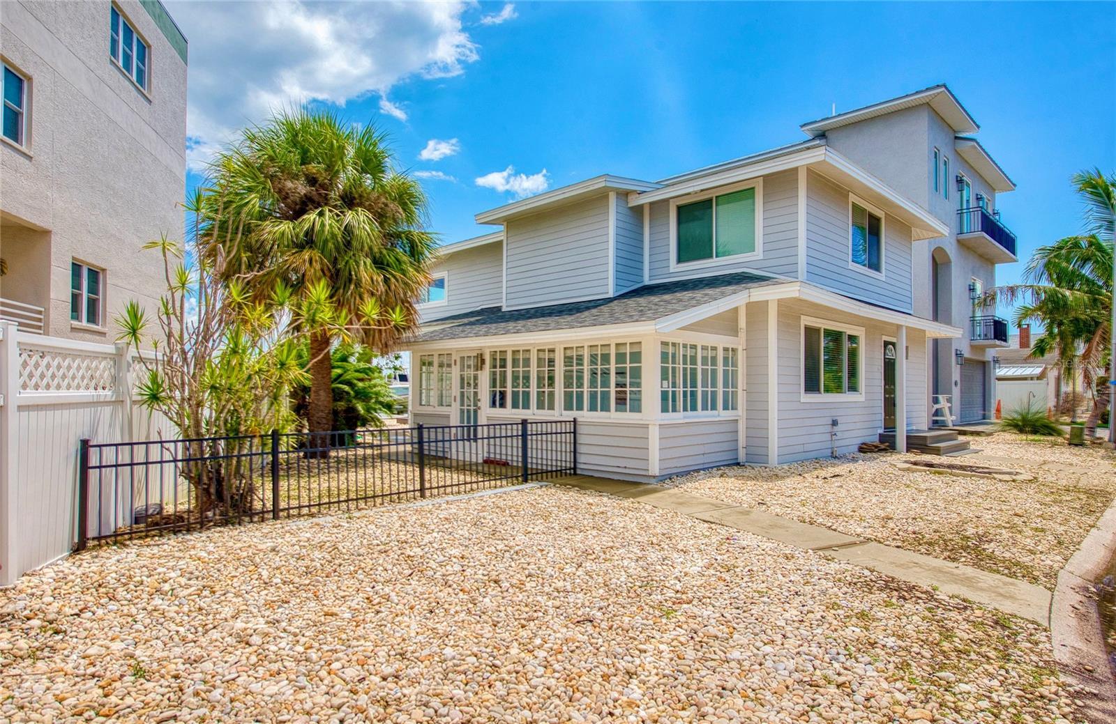 CALLING ALL BEACH LOVERS!!! Have you ever wanted to live so close to the beach that you can open the front door and walk under 5 minutes to place your toes in the sand?? Then, this home is for you! Located in the southern tip of Treasure Island, enjoy the backyard gorgeous intracoastal views along with a close proximity to Sunset Beach right on the Gulf of America, only steps away from the home! Get your piece of beach paradise in this two-story waterfront home with 3 bedrooms with 3 en-suite full bathrooms and an additional half bathroom on the main level. The downstairs level includes an open concept FULLY REMODELED KITCHEN with STAINLESS STEEL APPLIANCES, QUARTZ COUNTERTOPS, BREAKFAST BAR, and a WATERFRONT VIEW also shared with the living and dining room areas. Entertainment is easy and fun by opening the sliding glass doors in the living room which lead to the fenced outdoor living area with a wooden deck and PRIVATE DOCK for fishing. A guest bedroom with an en-suite bathroom is on the main level along with the half bathroom. Upstairs are two additional bedrooms with en-suite bathrooms. The primary bedroom has a perfect view of the intracoastal waters with it’s own private balcony, the perfect spot to soak in the sunrises, or enjoy a book in the seating nook by the windows. Across from the primary bedroom is the other upstairs bedroom which includes a walk-in closet for plenty of storage. Laundry day is made easy with an upstairs laundry room for convenience. Downstairs off of the kitchen is a bonus room for extra storage, exercise, or your own creative area. The AC UNIT AND MINI SPLITS WERE NEWLY INSTALLED in July 2025 and the roof is approximately 7 years old. Use this home as a primary residence, vacation spot, or investment with both short and long term rentals. All furnishings and decor can be included, so it’s turn-key for the new owner all with a convenient location near dining, entertainment, St. Pete Beach, Clearwater, John’s Pass, Blind Pass, and other Pinellas County beaches.