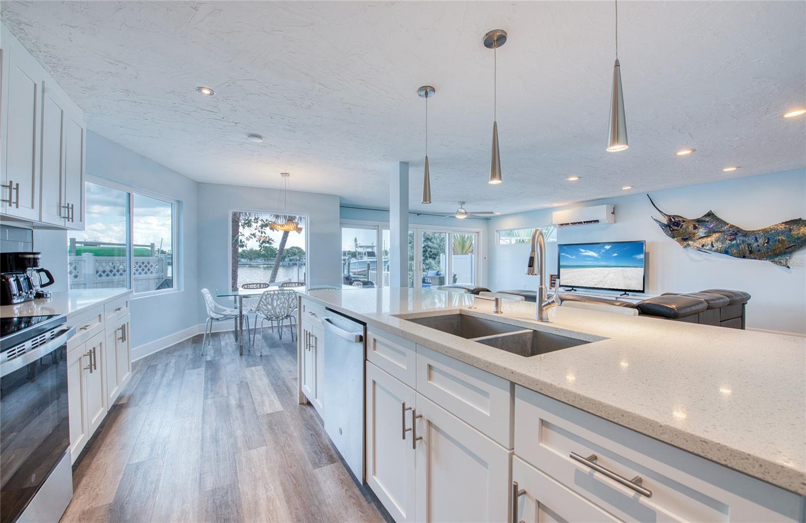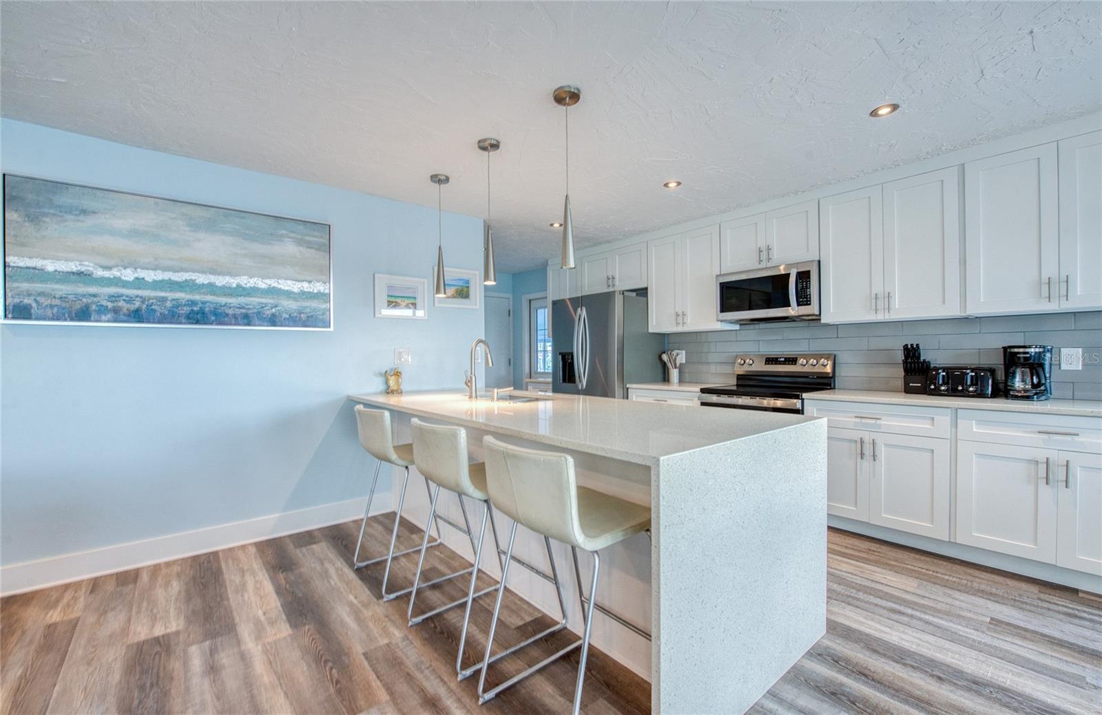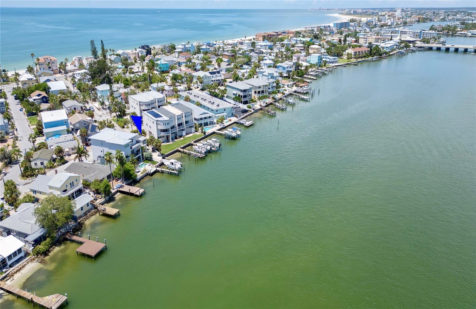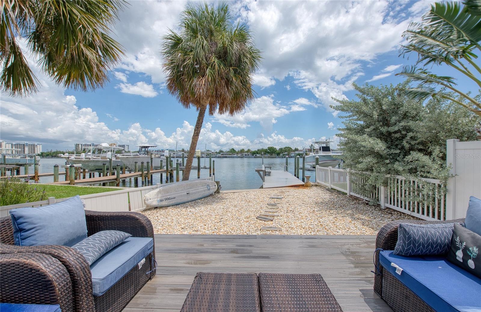 CALLING ALL BEACH LOVERS!!! Have you ever wanted to live so close to the beach that you can open the front door and walk under 5 minutes to place your toes in the sand?? Then, this home is for you! Located in the southern tip of Treasure Island, enjoy the backyard gorgeous intracoastal views along with a close proximity to Sunset Beach right on the Gulf of America, only steps away from the home! Get your piece of beach paradise in this two-story waterfront home with 3 bedrooms with 3 en-suite full bathrooms and an additional half bathroom on the main level. The downstairs level includes an open concept FULLY REMODELED KITCHEN with STAINLESS STEEL APPLIANCES, QUARTZ COUNTERTOPS, BREAKFAST BAR, and a WATERFRONT VIEW also shared with the living and dining room areas. Entertainment is easy and fun by opening the sliding glass doors in the living room which lead to the fenced outdoor living area with a wooden deck and PRIVATE DOCK for fishing. A guest bedroom with an en-suite bathroom is on the main level along with the half bathroom. Upstairs are two additional bedrooms with en-suite bathrooms. The primary bedroom has a perfect view of the intracoastal waters with it’s own private balcony, the perfect spot to soak in the sunrises, or enjoy a book in the seating nook by the windows. Across from the primary bedroom is the other upstairs bedroom which includes a walk-in closet for plenty of storage. Laundry day is made easy with an upstairs laundry room for convenience. Downstairs off of the kitchen is a bonus room for extra storage, exercise, or your own creative area. The AC UNIT AND MINI SPLITS WERE NEWLY INSTALLED in July 2025 and the roof is approximately 7 years old. Use this home as a primary residence, vacation spot, or investment with both short and long term rentals. All furnishings and decor can be included, so it’s turn-key for the new owner all with a convenient location near dining, entertainment, St. Pete Beach, Clearwater, John’s Pass, Blind Pass, and other Pinellas County beaches.