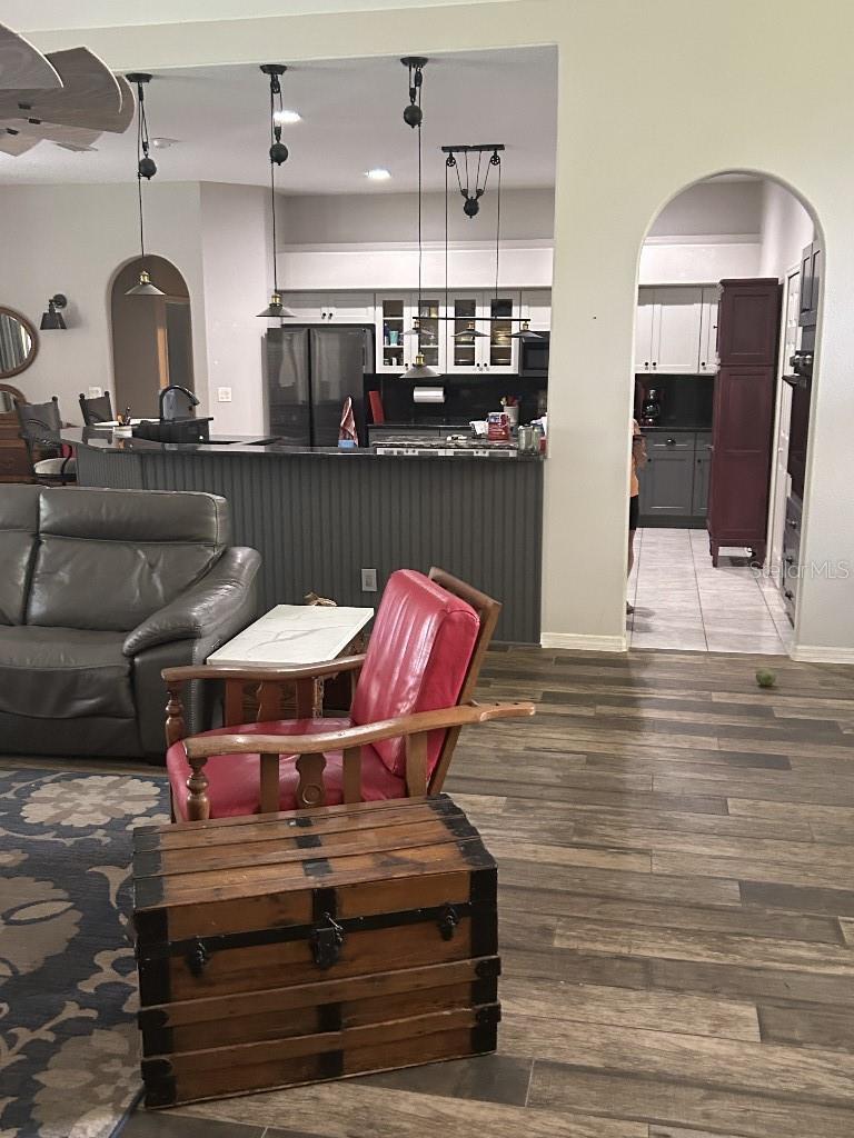 - Ceiling Fans(s), Eat-in Kitchen, High Ceilings, Open Floorplan, Solid Surface Counters, Solid Wood Cabinets, Split Bedroom, Thermostat, Vaulted Ceiling(s), Walk-In Closet(s), Window Treatments