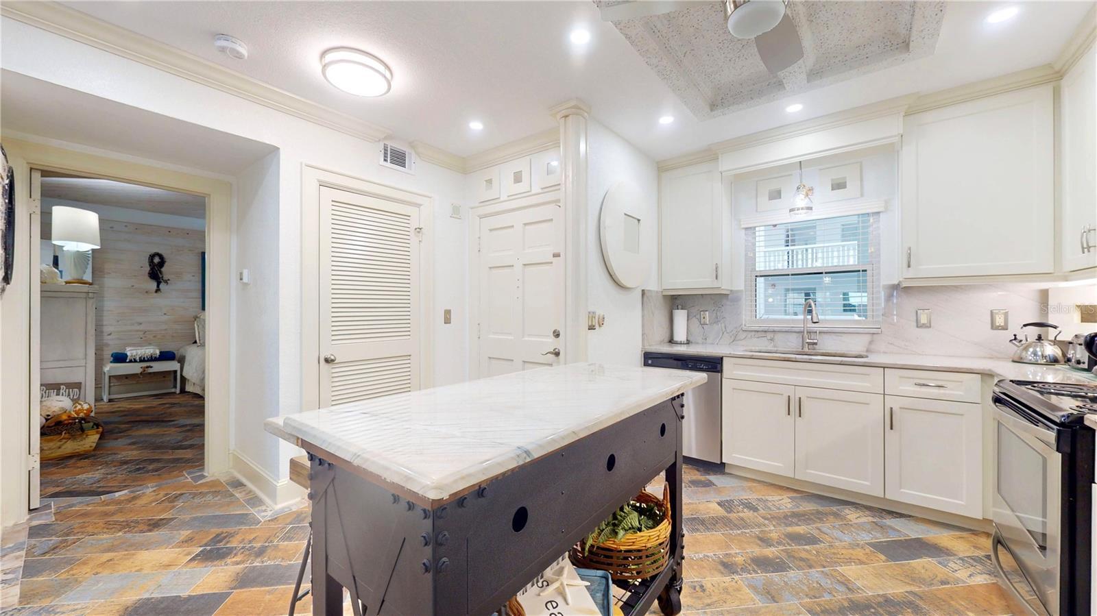 - Ceiling Fans(s), Coffered Ceiling(s), Crown Molding, Dry Bar, Eat-in Kitchen, Elevator, Kitchen/Family Room Combo, Living Room/Dining Room Combo, Open Floorplan, Primary Bedroom Main Floor, Stone Counters, Walk-In Closet(s), Window Treatments