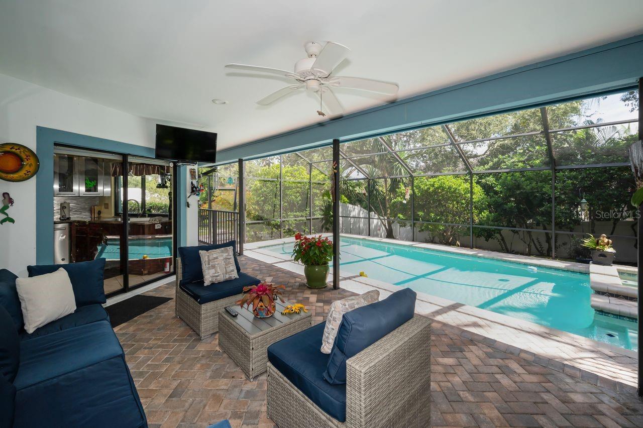 Great New Price — This home comes with a completed 4-point inspection, full seller disclosure, and a Pinellas County evaluation that is above the current asking price. A fantastic chance to own a home in beautiful Safety Harbor. Rates starting at 4.75% with 10% down, fixed for 3 years, with the adjustment to 5.75% for the remainder of the loan. Newly painted interior, new luxury vinyl in dining room, all TVs convey, and the exquisite Murano chandelier is negotiable, with much more. This beautifully maintained 3,021 square-foot 4-bedroom 3.5 bath residence is on an oversized corner lot, with elevated terrain, is located outside all evacuation zones, and NO flood insurance is required. As a bonus, the buyer will enjoy one complimentary year of AHS home warranty coverage, safeguarding essential appliances and providing peace of mind. From the moment you enter, you're greeted by 18-foot ceilings, a grand staircase, and a sunken living room, drenched in natural light from dramatic floor-to-ceiling windows. The open layout flows seamlessly into a cozy TV room with a fireplace, a charming breakfast nook, and a sleek wet bar framed by stainless steel cabinetry. The updated kitchen is perfect for everyday cooking or preparing a gourmet meal and features granite countertops, a farmhouse sink, and stainless-steel appliances. The dedicated dining room has newly laid luxury vinyl and is spacious enough to hold 12 guests. Step outside to the newly screened-in pool area, where your private outdoor kitchen awaits, complete with a stovetop, space for a refrigerator, sink, and abundant cabinet space—perfect for summer cookouts and those summertime gatherings. Upstairs, three spacious guest bedrooms share a beautiful bath, with two rooms offering direct access to the upper deck that overlooks the pool. The primary suite is a true retreat, featuring cathedral ceilings, its own fireplace, and a spa-like bathroom with dual sinks, a soaking tub, a walk-in shower, a private water closet, and a generous walk-in closet. This suite also opens to the upper deck, accessible via a spiral staircase to the pool. The thoughtfully designed laundry room includes a soaking tub, a washer and dryer space, and a large folding counter. Down the hall, a walk-in pantry and additional closet space provide exceptional storage. The outdoor kitchen, the heated pool and spa, and the lanai offer two wall-mounted TVs for the ultimate entertainment experience. A dedicated pool bathroom adds convenience and completes the outdoor oasis. Come experience it for yourself; This will not last long!!!