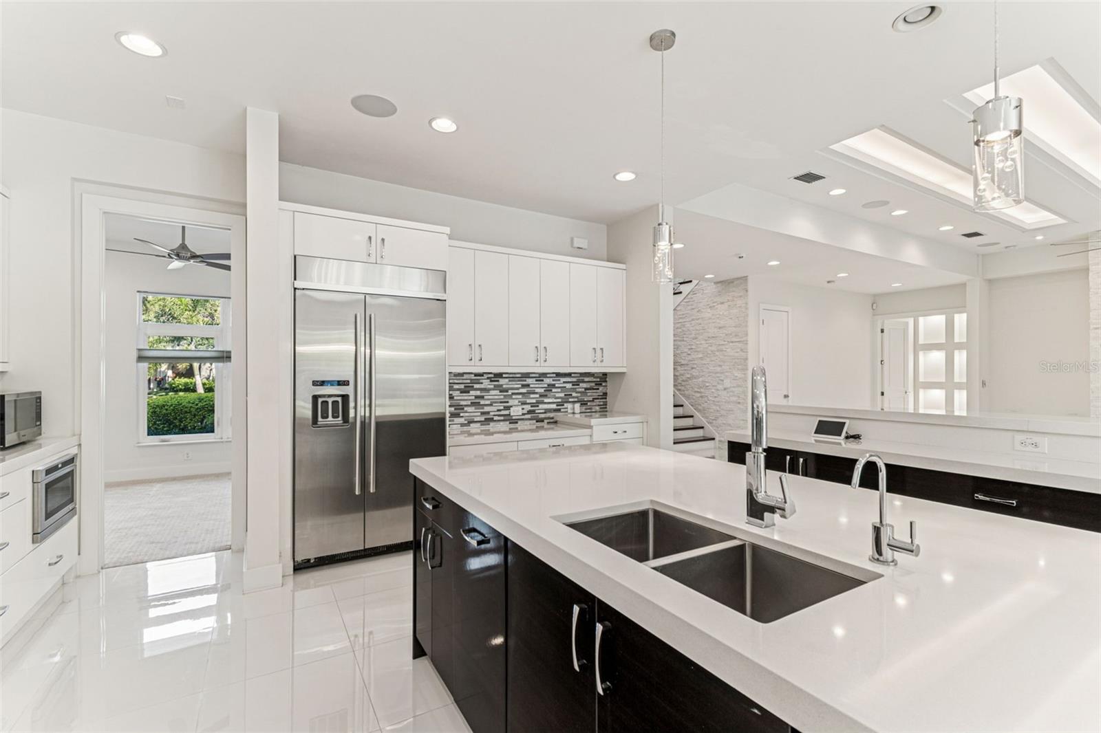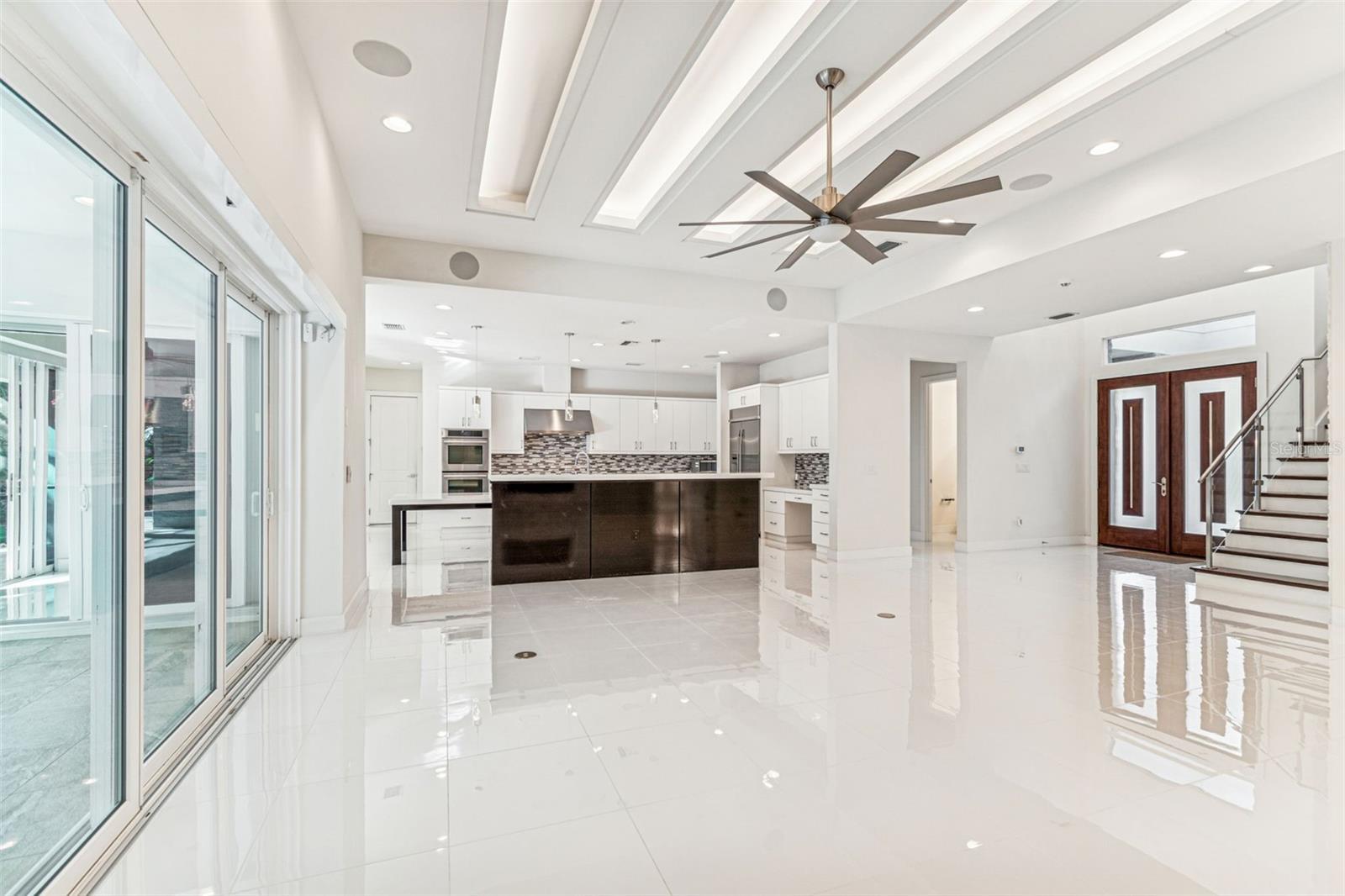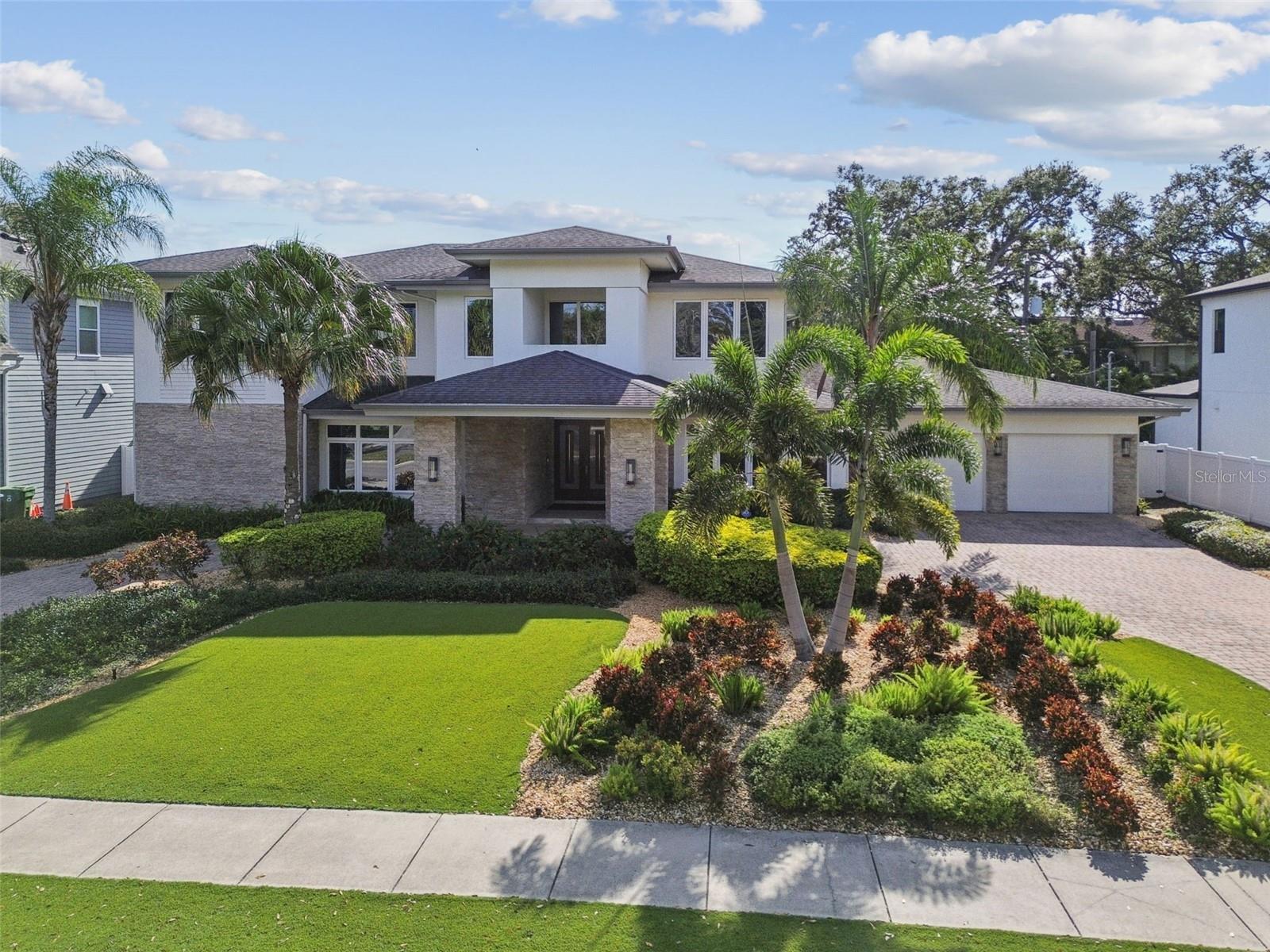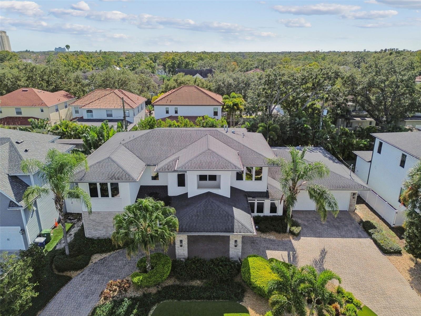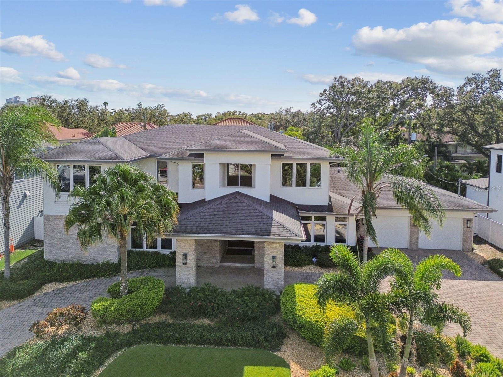 Under contract-accepting backup offers. 4-CAR GARAGE and Flood Zone X and ideally located just off iconic Bayshore Boulevard and Tampa Bay, this meticulously maintained Taralon Homes custom residence offers over 4,700 square feet of thoughtfully designed living—an exceptional alternative to new construction in one of South Tampa’s most sought-after neighborhoods. Rare features include a 4-car garage, porte-cochère, and a first-floor primary suite, delivering both luxury and long-term practicality. A stately circular brick driveway and grand porte-cochère create a striking arrival, while the elevated homesite with manicured artificial turf and lush tropical landscaping provides timeless curb appeal with low-maintenance living. Inside, soaring ceilings, refined finishes, and elegant lighting create an atmosphere of understated sophistication. The chef’s kitchen is the heart of the home, showcasing sleek European-style cabinetry, quartz countertops, premium JennAir gas appliances, and three oversized islands ideal for cooking, serving, and gathering. Pocketed sliding doors seamlessly connect the expansive great room to a screened lanai designed for year-round enjoyment, featuring a fireplace, outdoor kitchen, and full privacy fencing. The heated plunge pool + spa (spool) offers a resort-caliber experience with a fraction of the upkeep, perfect for cooling off, hydrotherapy, and entertaining. A smart alternative for those who want the amenities and enjoyment of a pool experience with simplified maintenance. The first-floor primary suite includes a spa-style bath and custom closets, and is complemented by a private study and a flexible bonus room ideal for a gym, nursery, or second office. Upstairs, four additional bedrooms and a spacious entertainment loft provide generous accommodations for family and guests. Smart-home features include a whole-house Control4 system, security cameras, and a natural-gas generator for added peace of mind. Meticulously maintained and lightly lived in, this residence combines Flood Zone X confidence, immediate proximity to Bayshore Boulevard, and modern custom design—an increasingly rare opportunity in South Tampa.