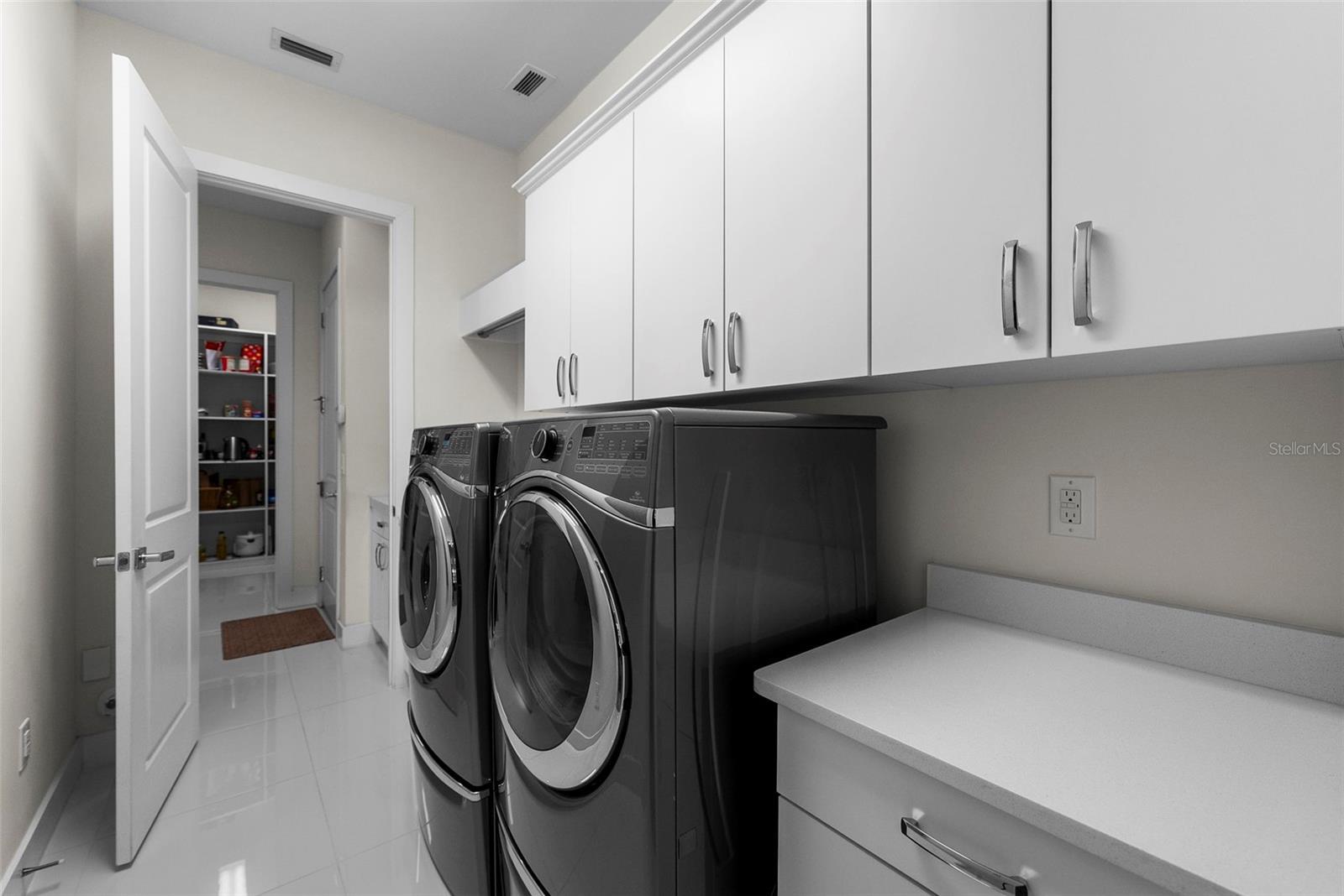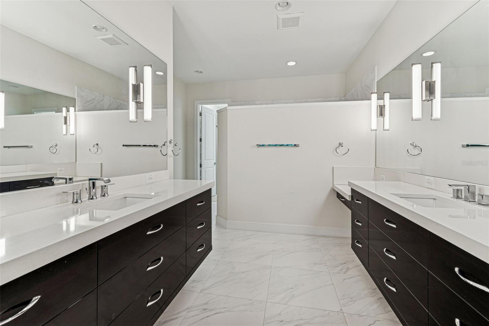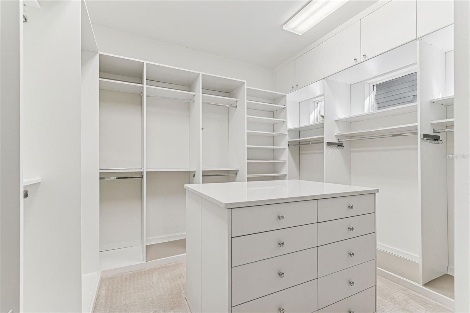- Built-in Features, Ceiling Fans(s), Central Vaccum, Dry Bar, Eat-in Kitchen, High Ceilings, In Wall Pest System, Open Floorplan, Pest Guard System, Primary Bedroom Main Floor, Smart Home, Solid Surface Counters, Solid Wood Cabinets, Stone Counters, Thermostat, Tray Ceiling(s), Walk-In Closet(s)