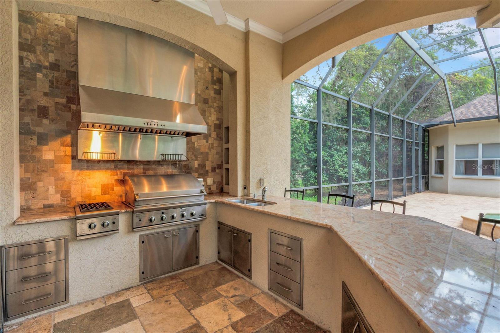 Florida resort style living at its best with top rated schools. Community amenities include two pickle ball courts, tennis courts, basketball courts, two baseball fields, playgrounds, a private clubhouse to host events, and over five miles of walking, hiking, and biking trails What's NEW: New AC 2026 & 2015, new water heater 2026, new Roof 2021, new pool filter 2025, new sprinkler system 2025, and all new stainless steel appliances installed 2025, new carpet and freshly painted interior. Have you ever wondered what it would be like to enjoy the entirety of your home? Waiting for you is a home tucked away in the Fishhawk Trails with a warm inviting Alligator (Ralph) on the marble stage entryway. A breathtaking view of the gorgeous pool and gazebo, and a playful backyard longing to be enjoyed. This gazebo is one a kind in all of Fishhawk with an outdoor professional grille, its own fridge, food warmers, granite countertops, an entertainment center, and a connected half bath to host any style of party. This Jack Bartlett built home has top notch craftsmanship throughout the home. Eye-popping crown molding catches your eye as you absorb it all in from the marble platform entryway. This home has marble flooring in all the common areas (a small patch of carpet in the main family room) and hard wood floors in all the bedrooms. The home is north facing, allowing for natural light to enter the home, while keeping the hot Florida sun out of your home. Plenty of large bay windows and a lavish open floor plan, with stunning views of the pool and outdoor living space. The kitchen features large granite countertops, abundant cabinetry, double built-in wall ovens, vented hood, glass cooktop, and a wine fridge. Although, you’ll probably do most of the cooking on the gazebo grill, unique to the Trails. Lush landscaping all around the home. Also, a fenced in area for our furry friends. Over ½ acre lot to maximize your indoor/outdoor lifestyle.