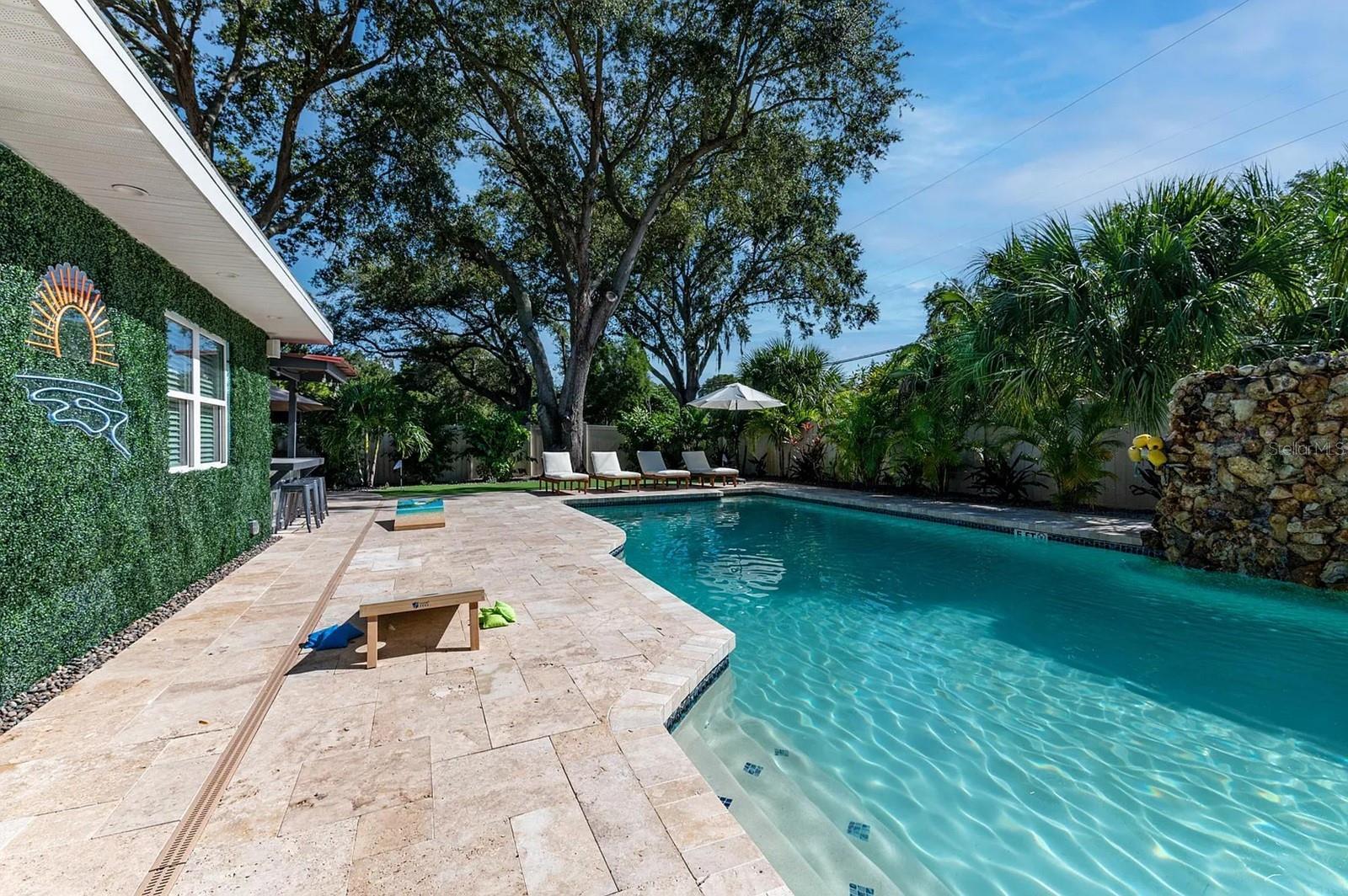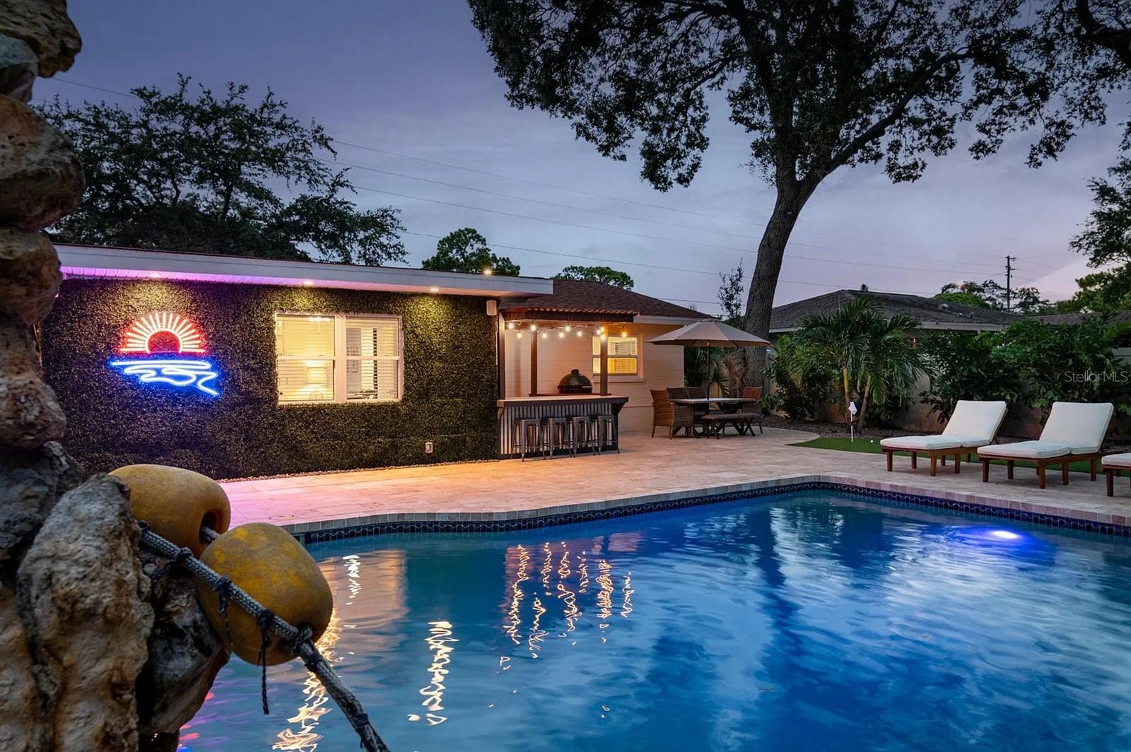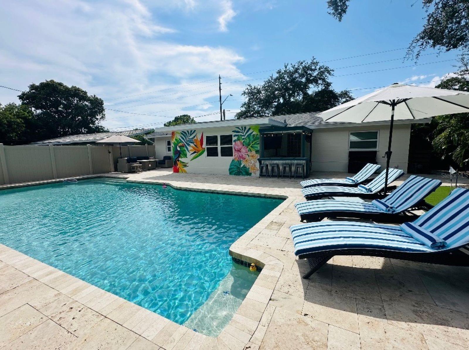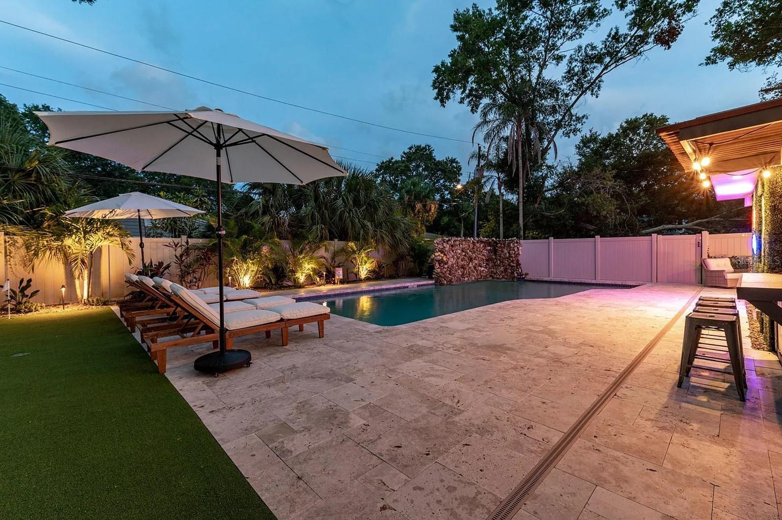 ***AMAZING RETREAT-STYLED HOME*** Nicely located in Causeway Isles just off of the Treasure Island Causeway stands this stunning private paradise home featuring three bedrooms, two bathrooms, a nicely sized 1301 square feet of living space, numerous updates, an one-car garage, and a gorgeous back patio with a heated pool, waterfall, bar/kitchen area, and a putting green. Offered fully furnished, this amazing property offers a large living room/dining room space artfully decorated in the widely popular coastal style. The modern kitchen has bright white appliances and cabinetry, plus granite countertops and lots of storage. There is a queen-sized bed in the master bedroom for you to stretch out and the bathrooms showcase beautiful, yet functional tile work plus modern fixtures. The other beautiful bedrooms offer comfortable beds and luxury linens. Experience Florida at this finest just out back to your extraordinary private, retreat style backyard area. This phenomenal space has several places to relax…on the comfortable furniture watching your favorite game, entertaining at the bar or grilling on the side patio, practicing your swing on the putting green, or just floating around in the pool. The ultimate in relaxing or entertaining family or friends. Boaters love this location as it has easy access to John’s Pass, Blind Pass, and the Pass-a-Grille Channel. You will have easy and quick access to the beautiful Treasure Island Beach and a short drive to the nightlife and amazing Downtown St Pete featuring the new Pier. If you choose to bike in the area, you are close to the Pinellas Trail, or the surrounding neighborhood and beaches are great to take a bike riding adventure! Pets will need approval. ONE MONTH MINIMUM LEASE PERIOD. $3495 is the rent price for months of April – September and $5200 is the price for the months of October – March. All utilities are included except the 18% local taxes. Contact us right now to find out more about this exclusive rental opportunity!