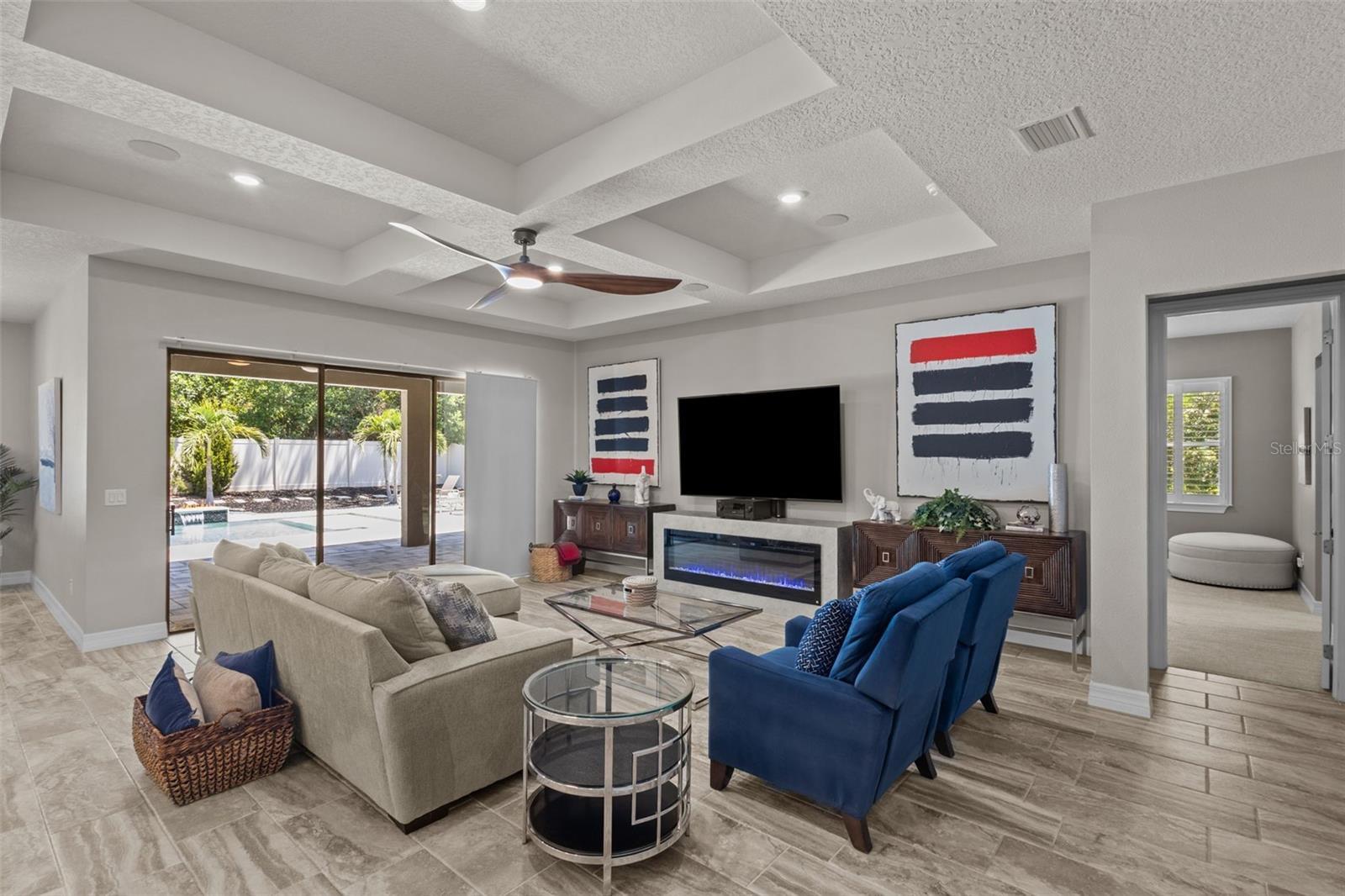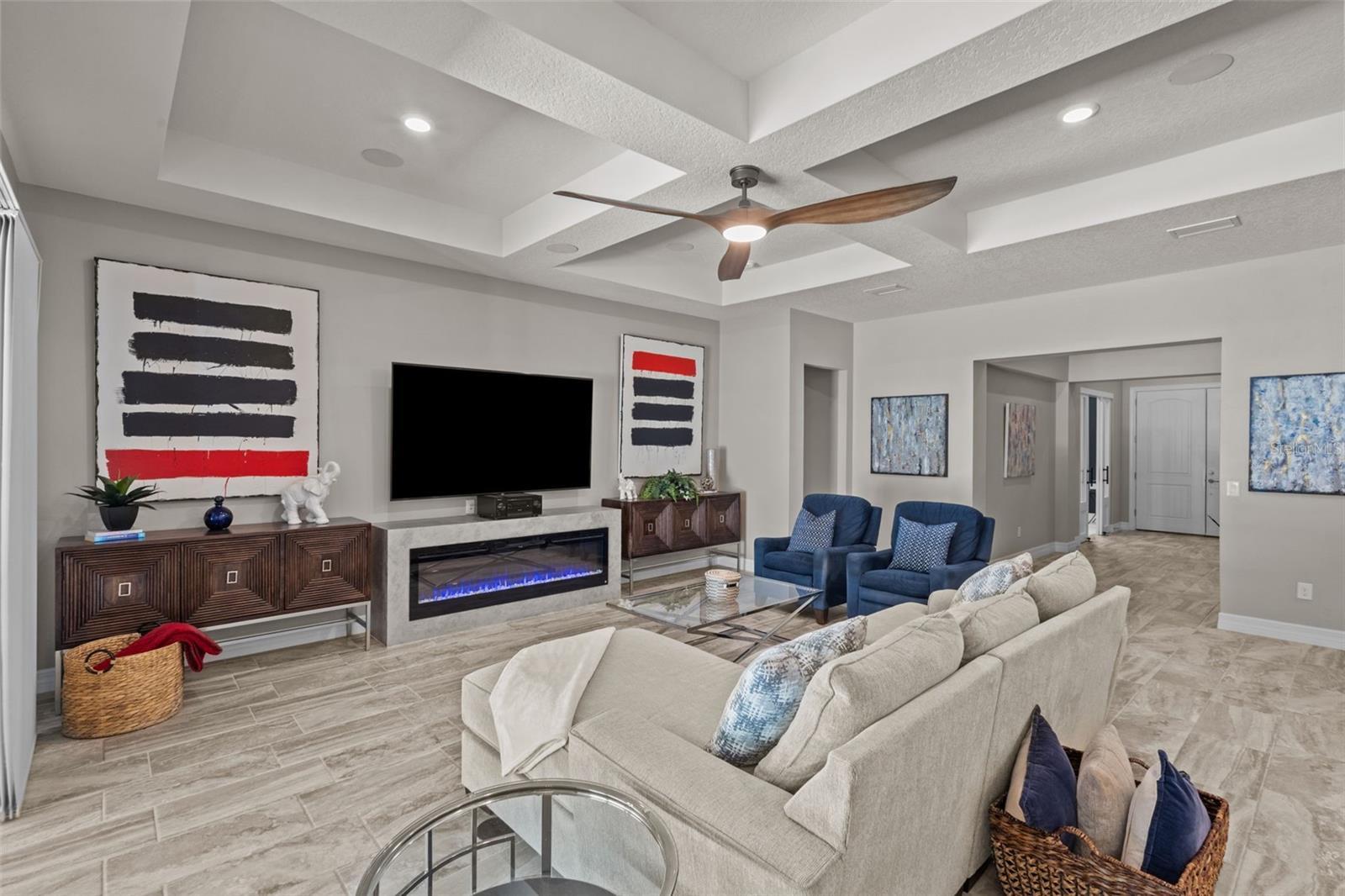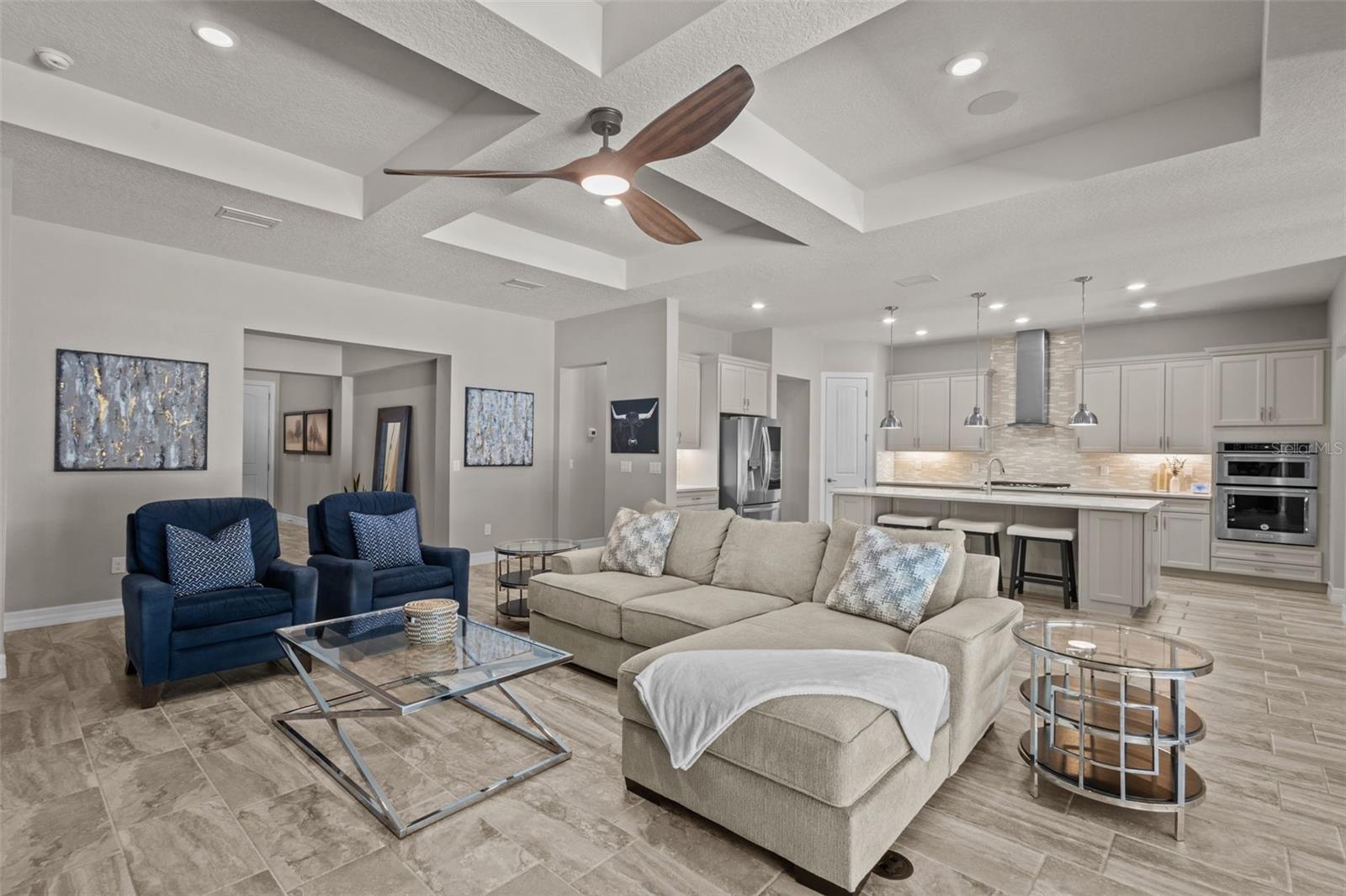 - Ceiling Fans(s), High Ceilings, Kitchen/Family Room Combo, Open Floorplan, Solid Surface Counters, Solid Wood Cabinets, Split Bedroom, Tray Ceiling(s), Walk-In Closet(s), Window Treatments